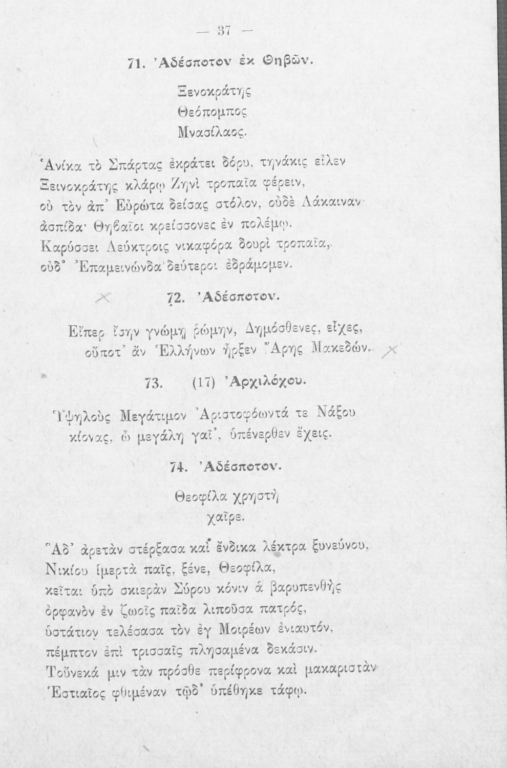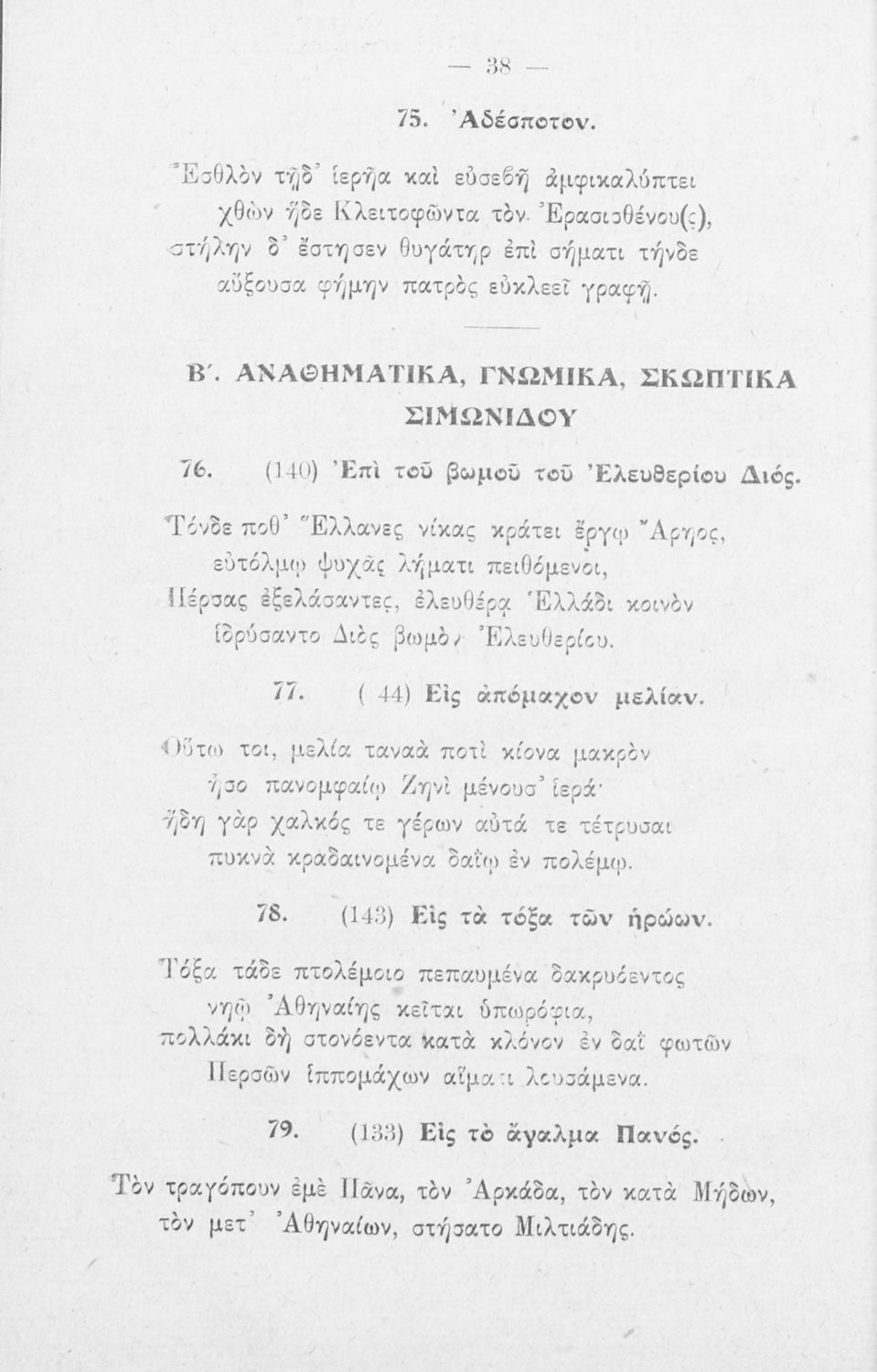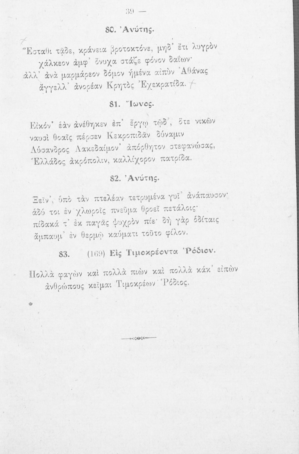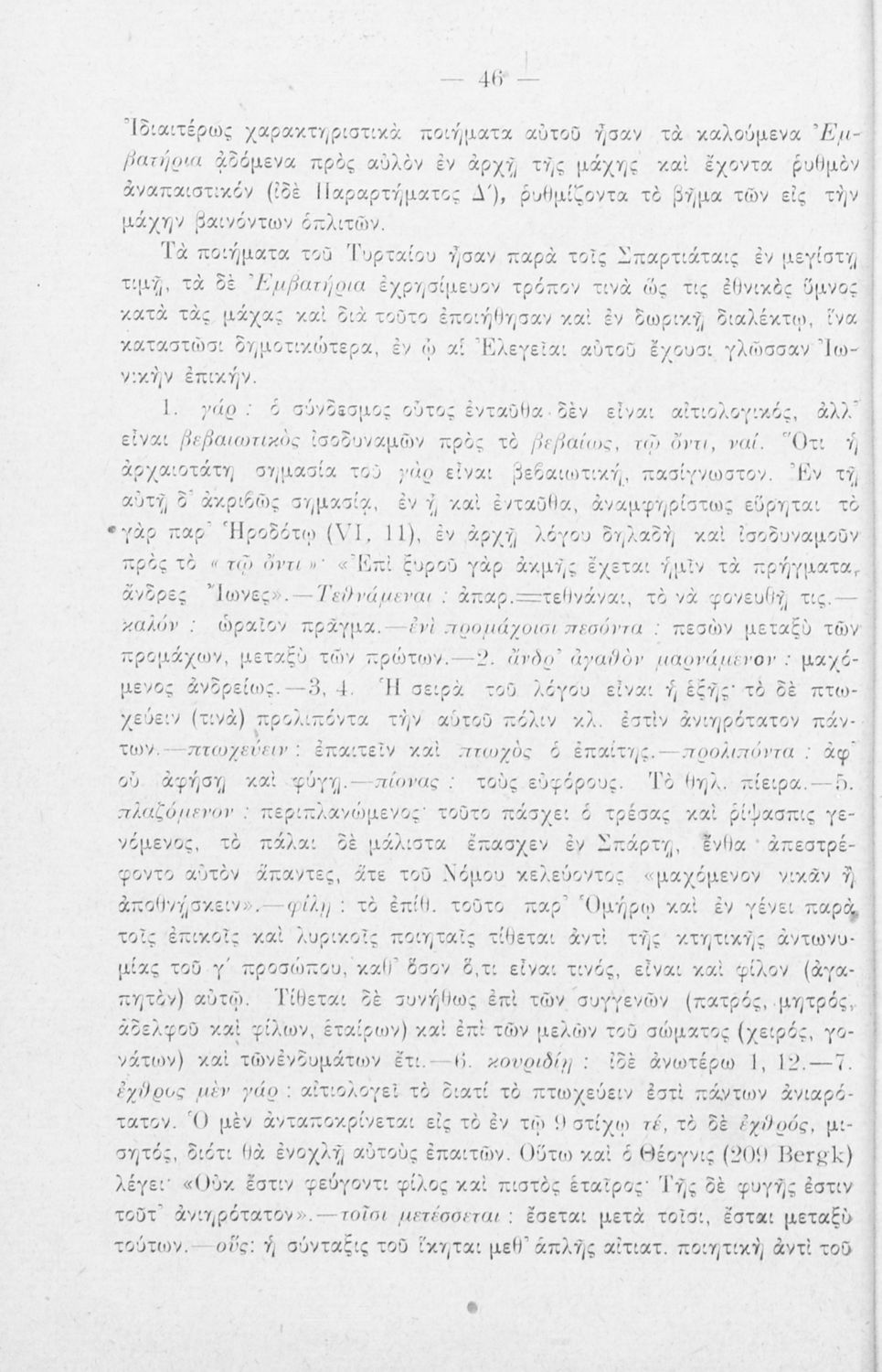 Σχολικό εγχειρίδιο Αρχαίων Ελληνικών Γ΄ Γυμνασίου που περιλαμβάνει αποσπάσματα έργων αρχαίων Ελλήνων λυρικών, πολιτικές και γνωμικές ελεγείες, ιάμβους και επιγράμματα. Περιέχει και υπόμνημα με ερμηνευτικά, πραγματολογικά, γλωσσικά και γραμματικά σχόλια.