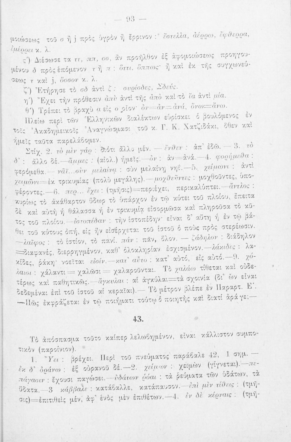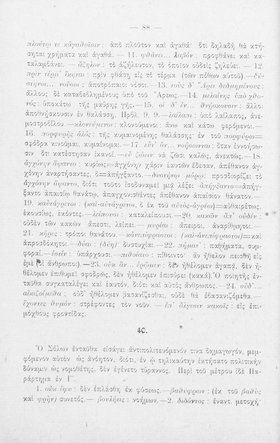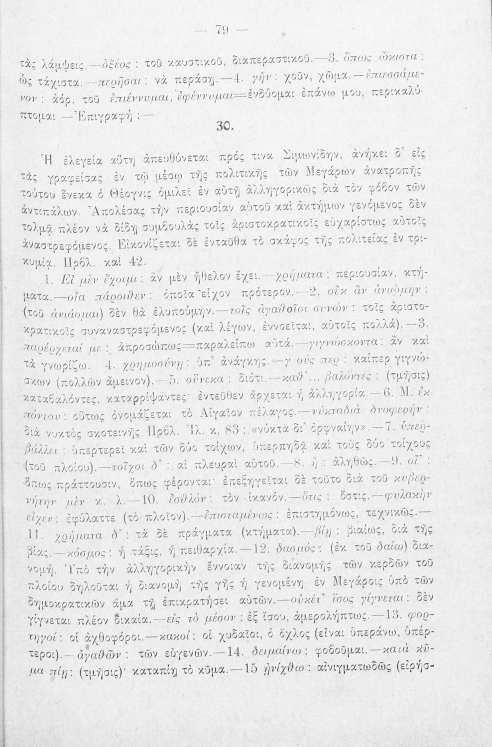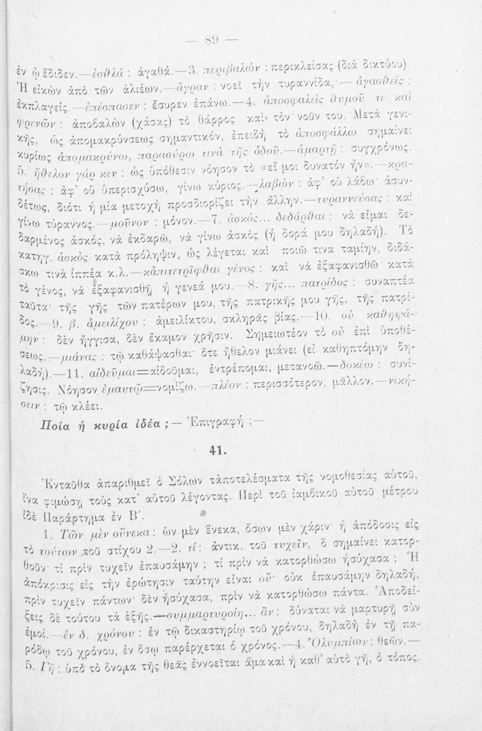 Βαθμίδα εκπαίδευσης: Δευτεροβάθμια Τάξη: Γ' Γυμνασίου Μάθημα: Αρχαία Ελληνικά Γλώσσα: Καθαρεύουσα Παρουσίαση περιεχομένου: Σχολικό εγχειρίδιο Αρχαίων Ελληνικών Γ΄ Γυμνασίου που περιλαμβάνει αποσπάσματα έργων αρχαίων Ελλήνων λυρικών, πολιτικές και γνωμικές ελεγείες, ιάμβους και επιγράμματα. Περιέχει και υπόμνημα με ερμηνευτικά, πραγματολογικά, γλωσσικά και γραμματικά σχόλια. |