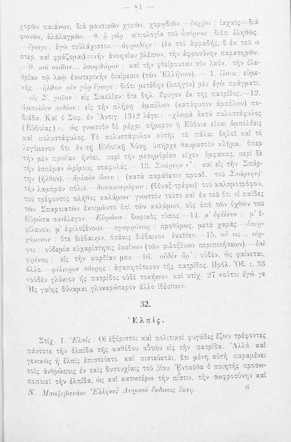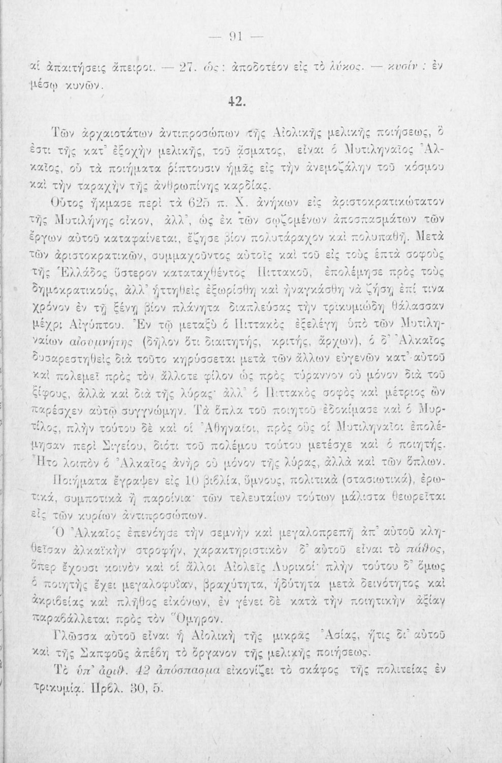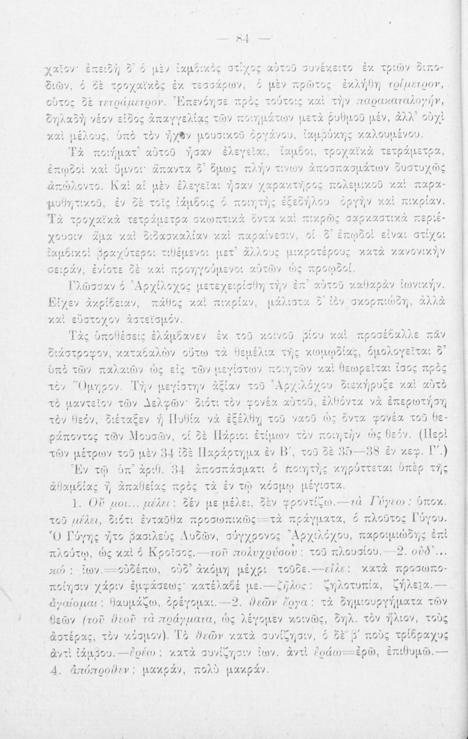 Σχολικό εγχειρίδιο Αρχαίων Ελληνικών Γ΄ Γυμνασίου που περιλαμβάνει αποσπάσματα έργων αρχαίων Ελλήνων λυρικών, πολιτικές και γνωμικές ελεγείες, ιάμβους και επιγράμματα. Περιέχει και υπόμνημα με ερμηνευτικά, πραγματολογικά, γλωσσικά και γραμματικά σχόλια.