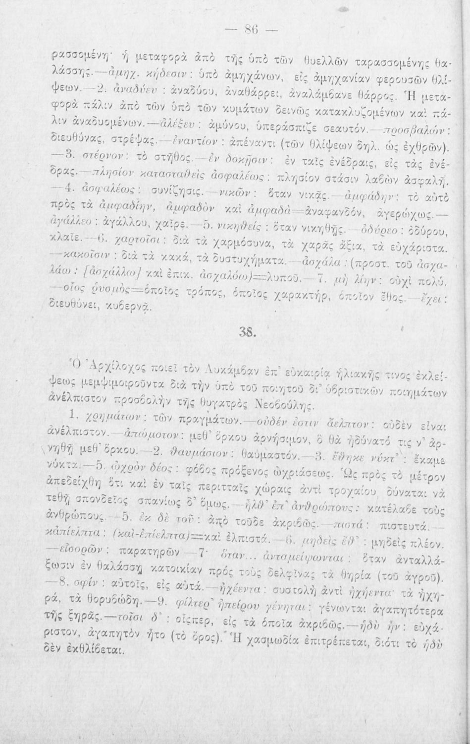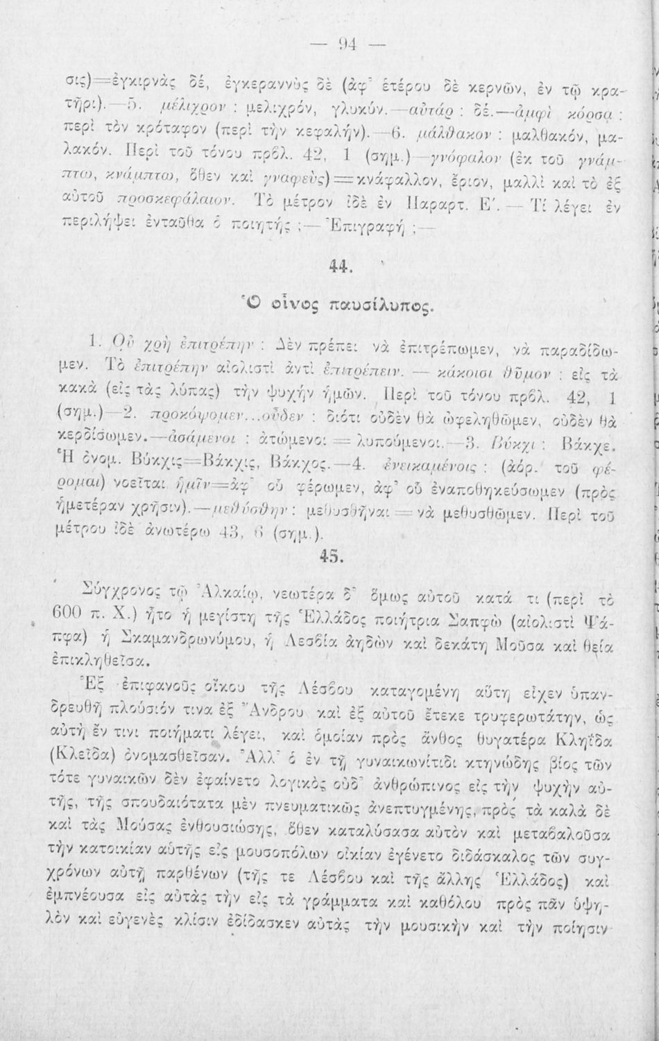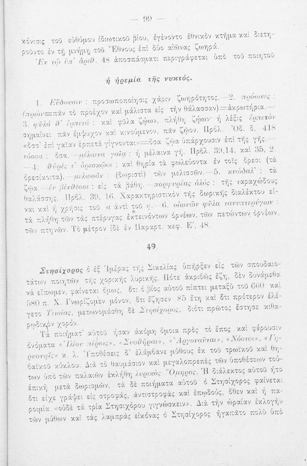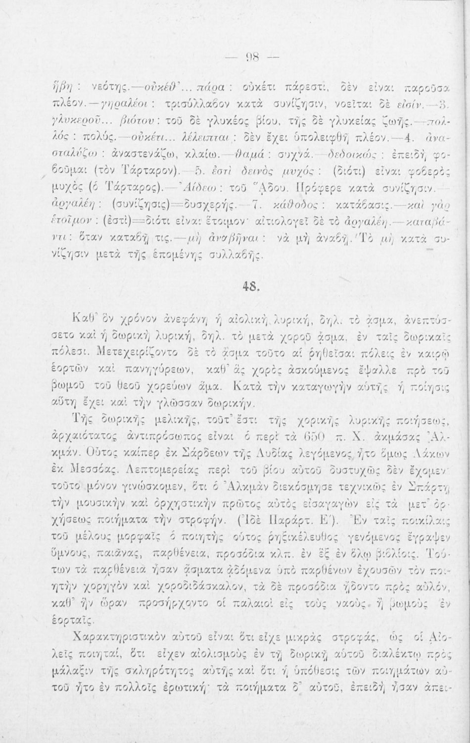 Σχολικό εγχειρίδιο Αρχαίων Ελληνικών Γ΄ Γυμνασίου που περιλαμβάνει αποσπάσματα έργων αρχαίων Ελλήνων λυρικών, πολιτικές και γνωμικές ελεγείες, ιάμβους και επιγράμματα. Περιέχει και υπόμνημα με ερμηνευτικά, πραγματολογικά, γλωσσικά και γραμματικά σχόλια.