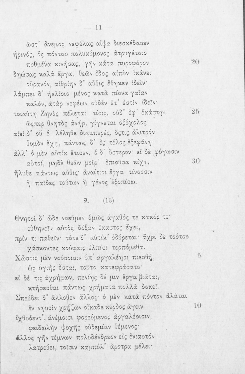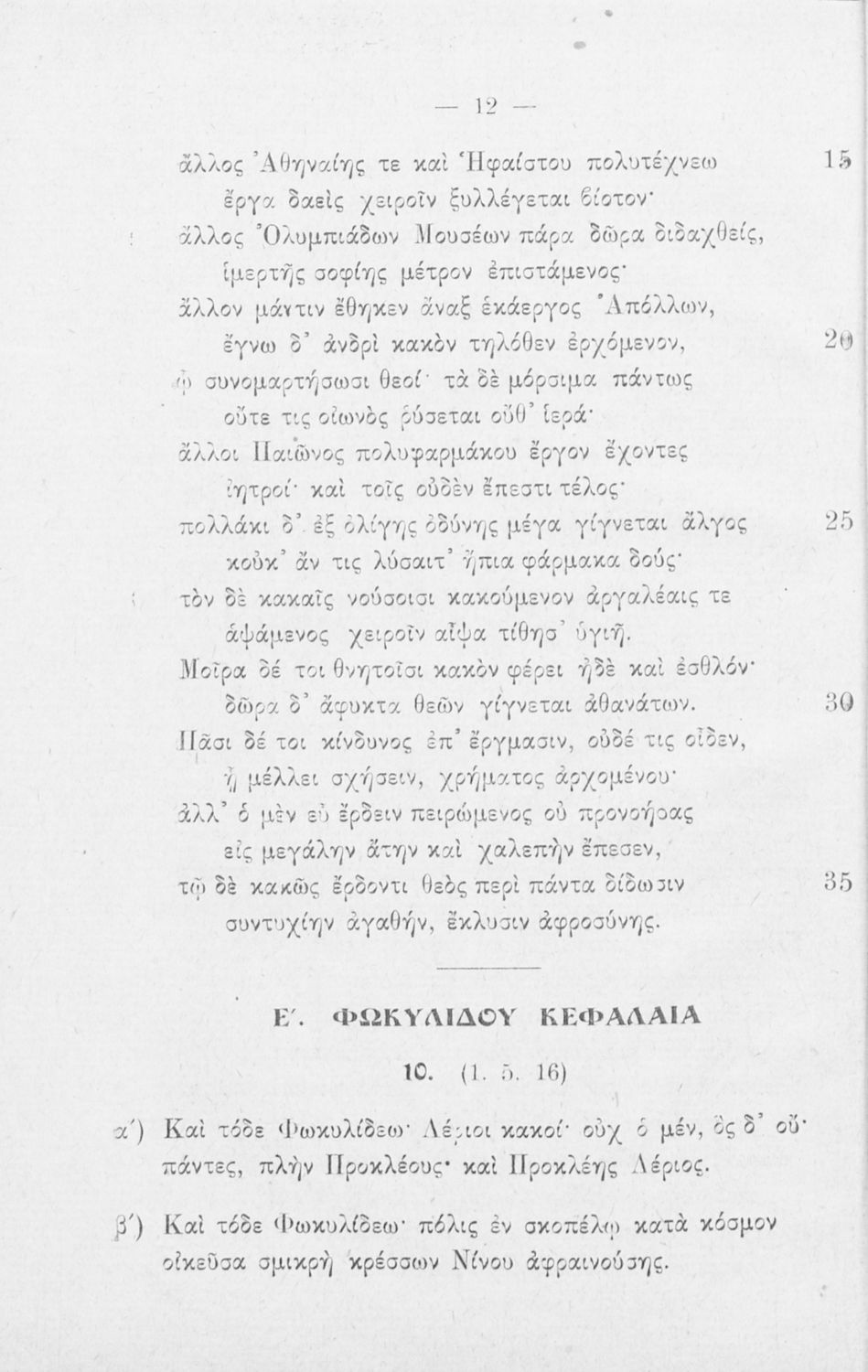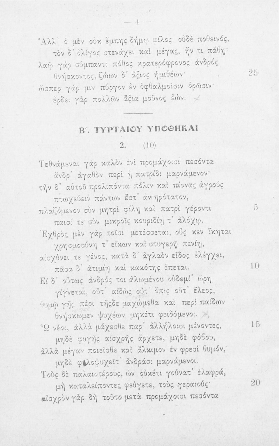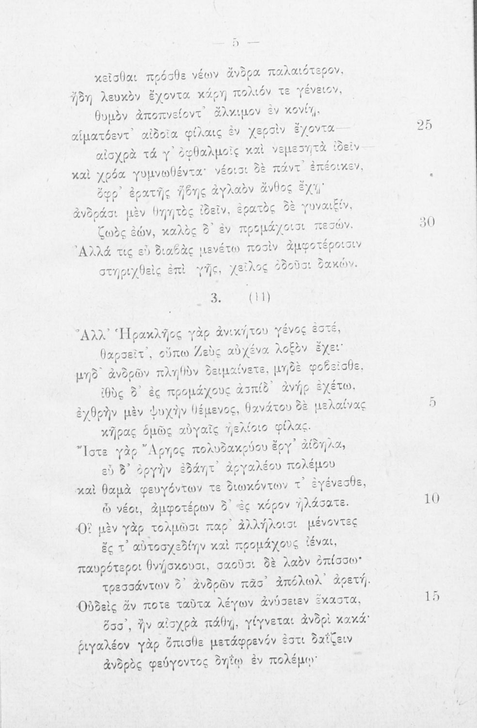 Σχολικό εγχειρίδιο Αρχαίων Ελληνικών Γ΄ Γυμνασίου που περιλαμβάνει αποσπάσματα έργων αρχαίων Ελλήνων λυρικών, πολιτικές και γνωμικές ελεγείες, ιάμβους και επιγράμματα. Περιέχει και υπόμνημα με ερμηνευτικά, πραγματολογικά, γλωσσικά και γραμματικά σχόλια.