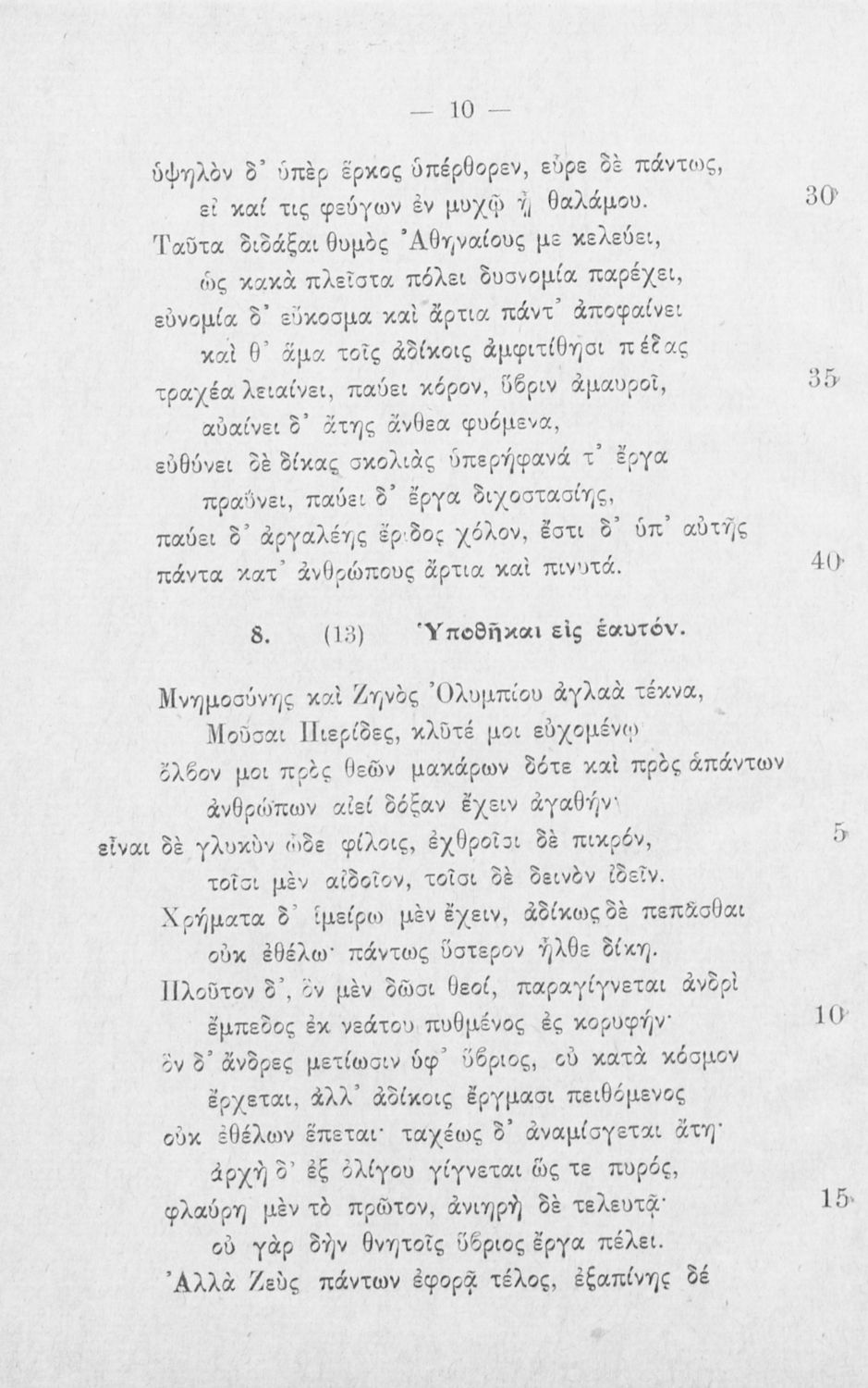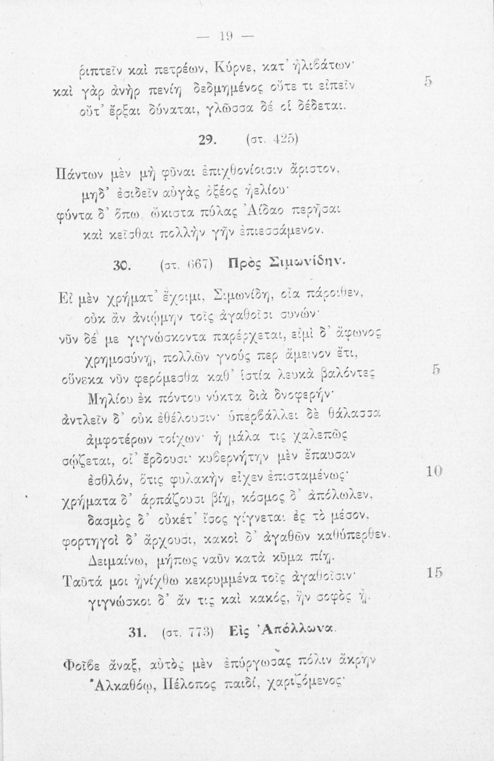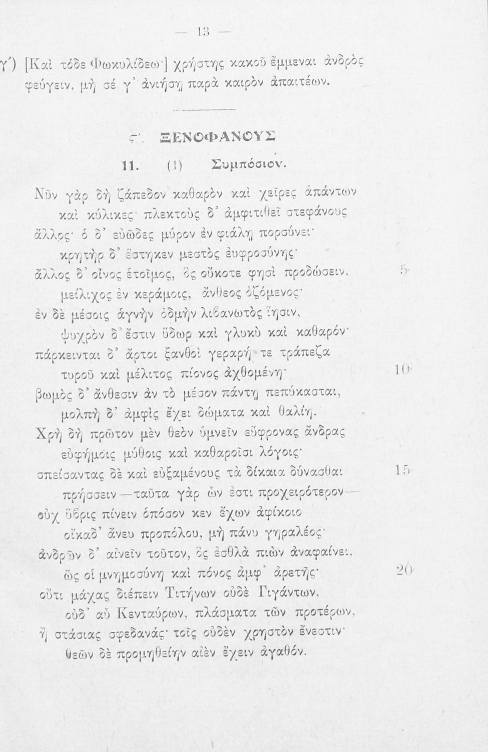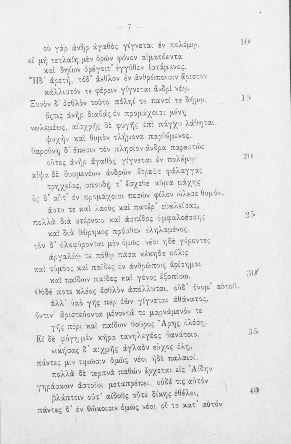 Σχολικό εγχειρίδιο Αρχαίων Ελληνικών Γ΄ Γυμνασίου που περιλαμβάνει αποσπάσματα έργων αρχαίων Ελλήνων λυρικών, πολιτικές και γνωμικές ελεγείες, ιάμβους και επιγράμματα. Περιέχει και υπόμνημα με ερμηνευτικά, πραγματολογικά, γλωσσικά και γραμματικά σχόλια.