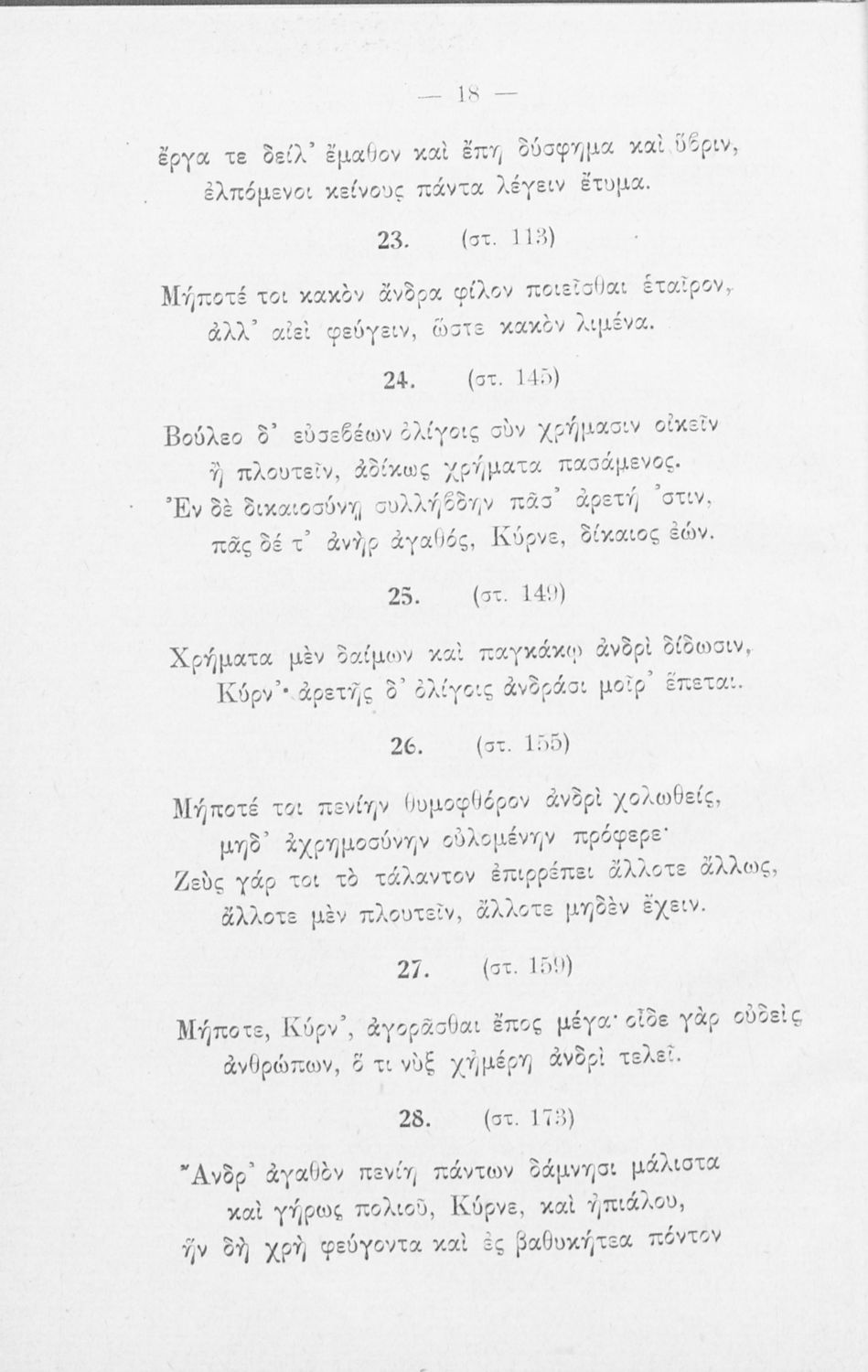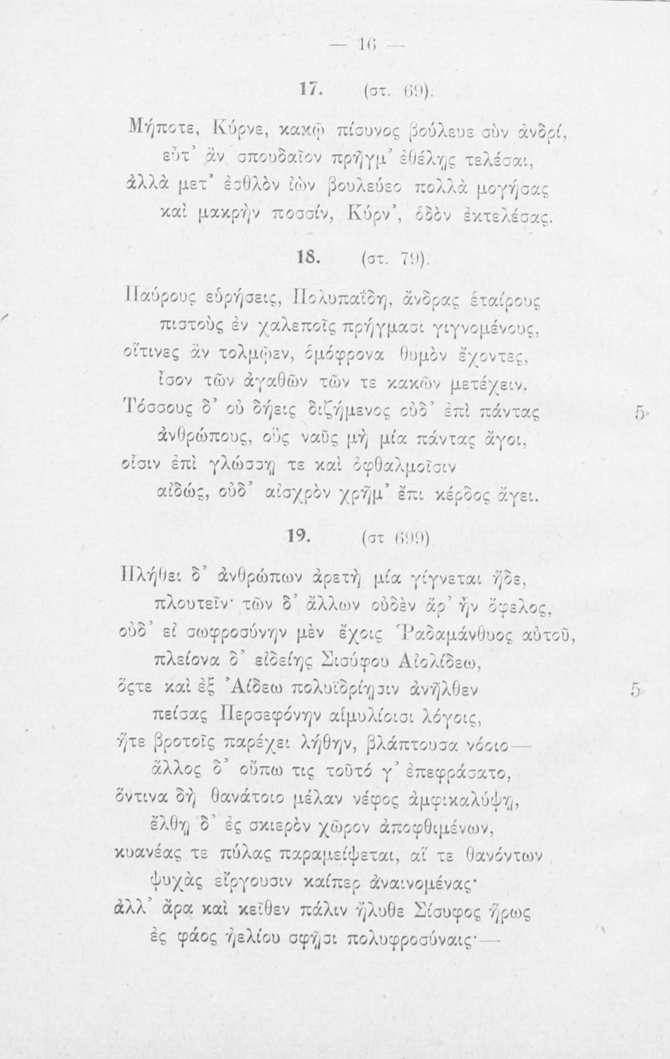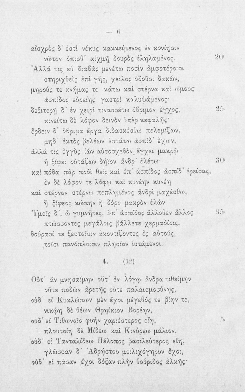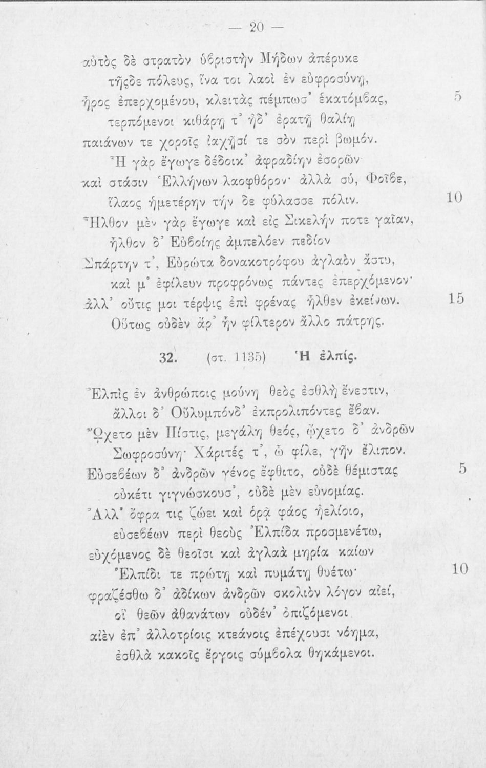 Σχολικό εγχειρίδιο Αρχαίων Ελληνικών Γ΄ Γυμνασίου που περιλαμβάνει αποσπάσματα έργων αρχαίων Ελλήνων λυρικών, πολιτικές και γνωμικές ελεγείες, ιάμβους και επιγράμματα. Περιέχει και υπόμνημα με ερμηνευτικά, πραγματολογικά, γλωσσικά και γραμματικά σχόλια.
