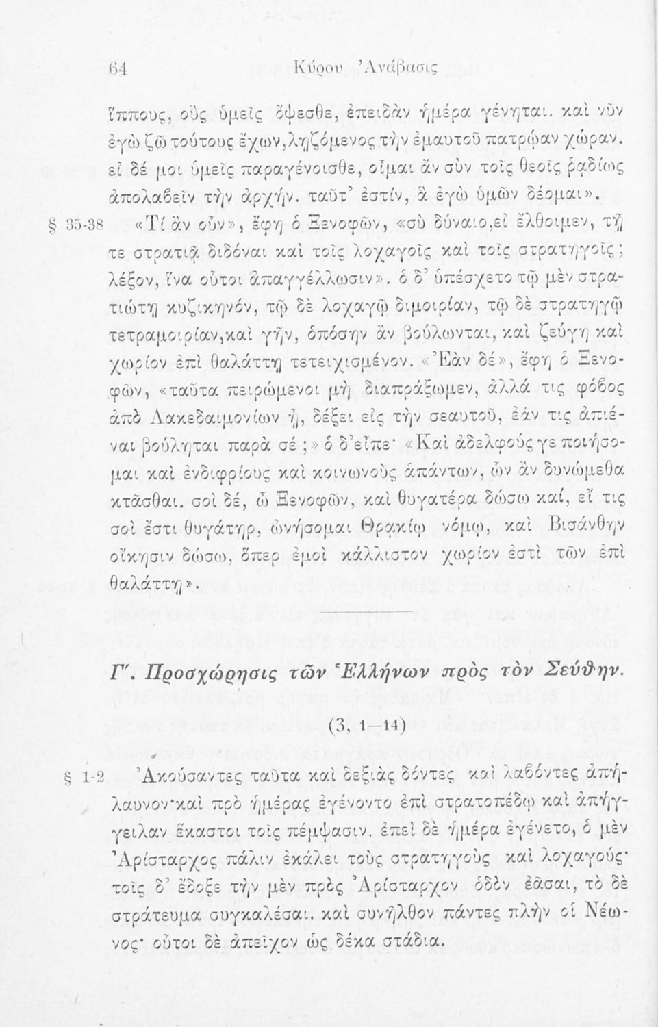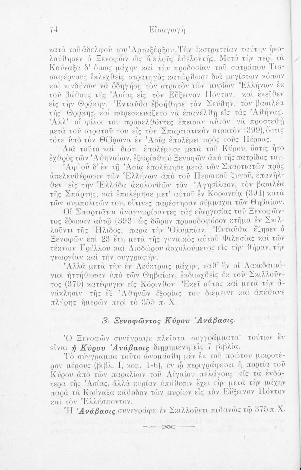 520 ## _aΣχολικό εγχειρίδιο Αρχαίων Ελληνικών για τις Γ΄ Ελληνικών Σχολείων και Α΄ Αστικών Σχολείων Θηλέων που περιλαμβάνει το έργο του Ξενοφώντα Κύρου Ανάβασις, εισαγωγικά σχόλια για τη ζωή και το έργο του, ερμηνευτικές και γραμματικές παρατηρήσεις.