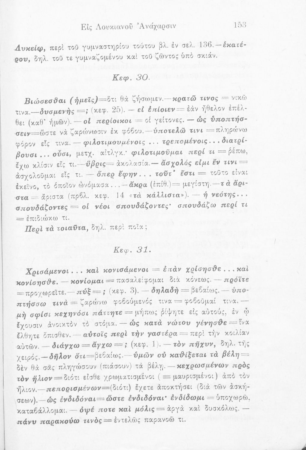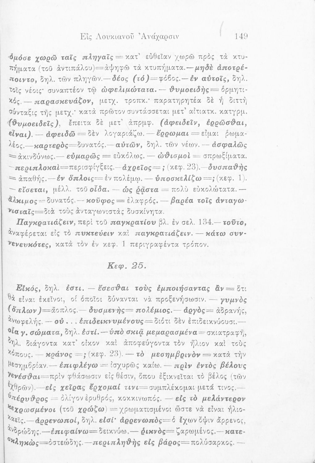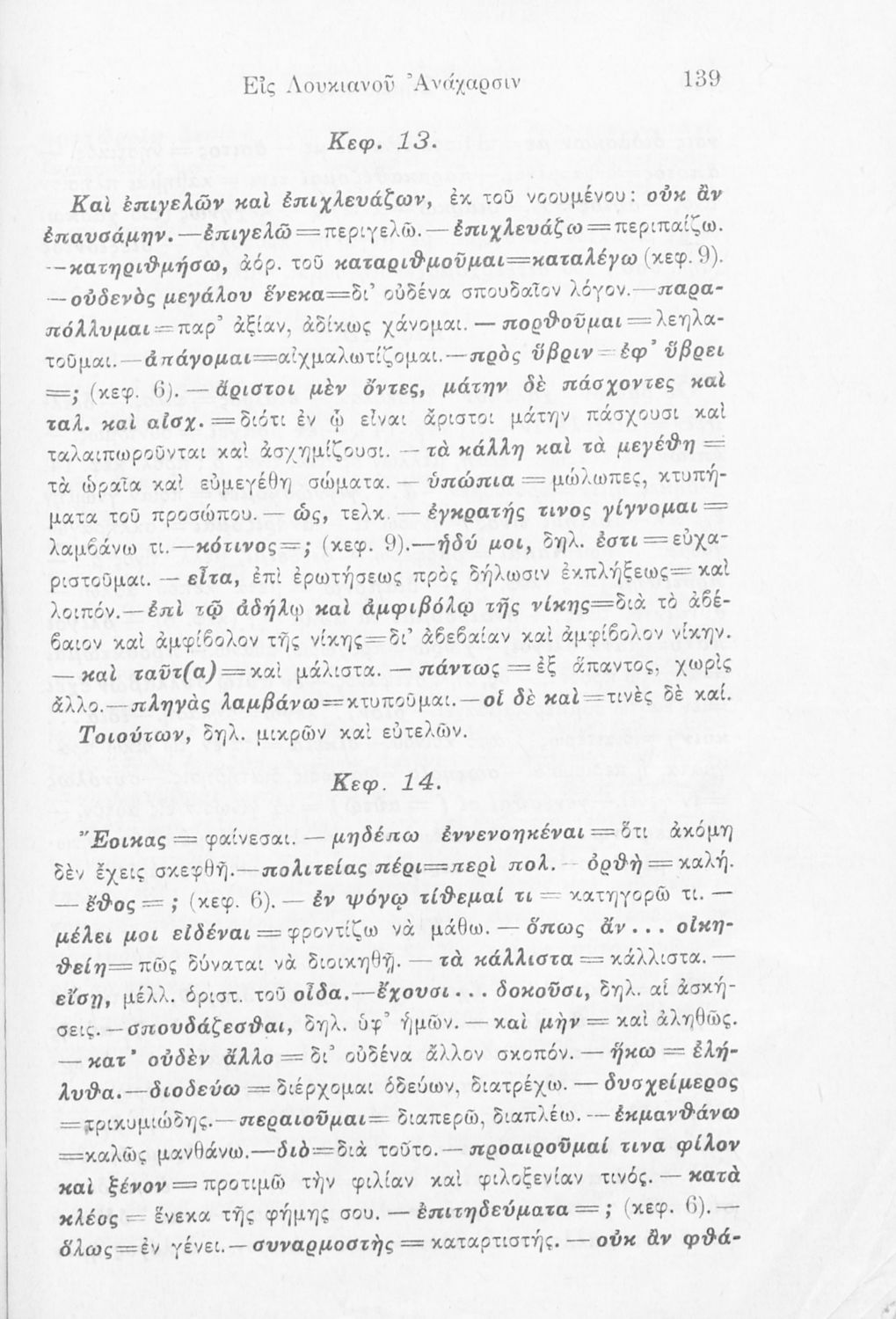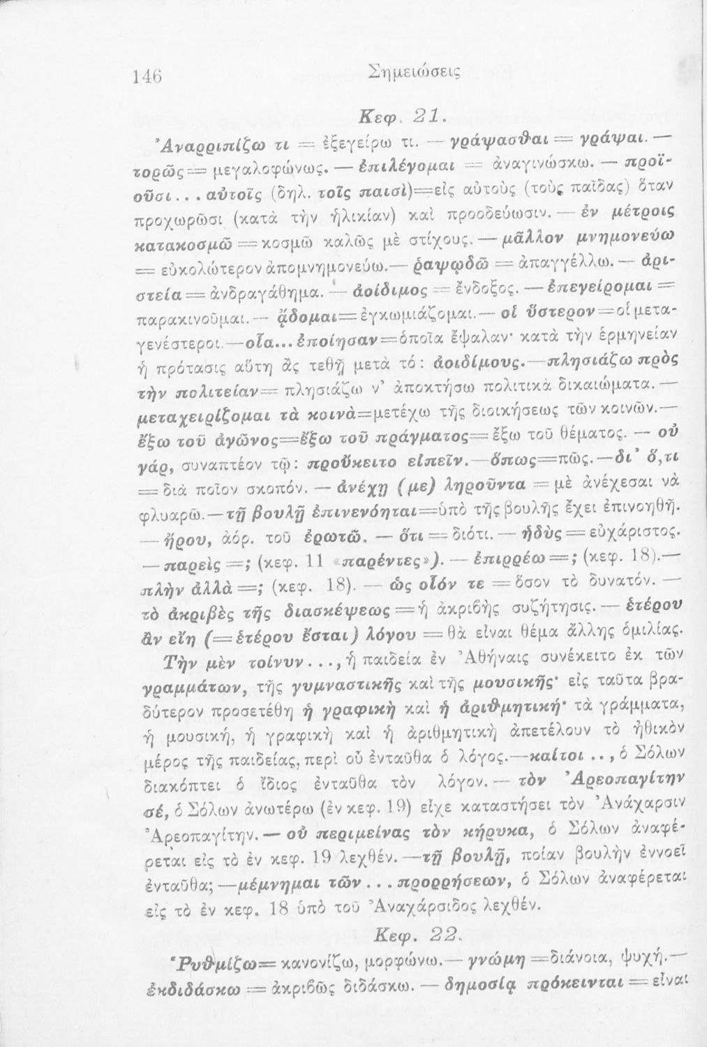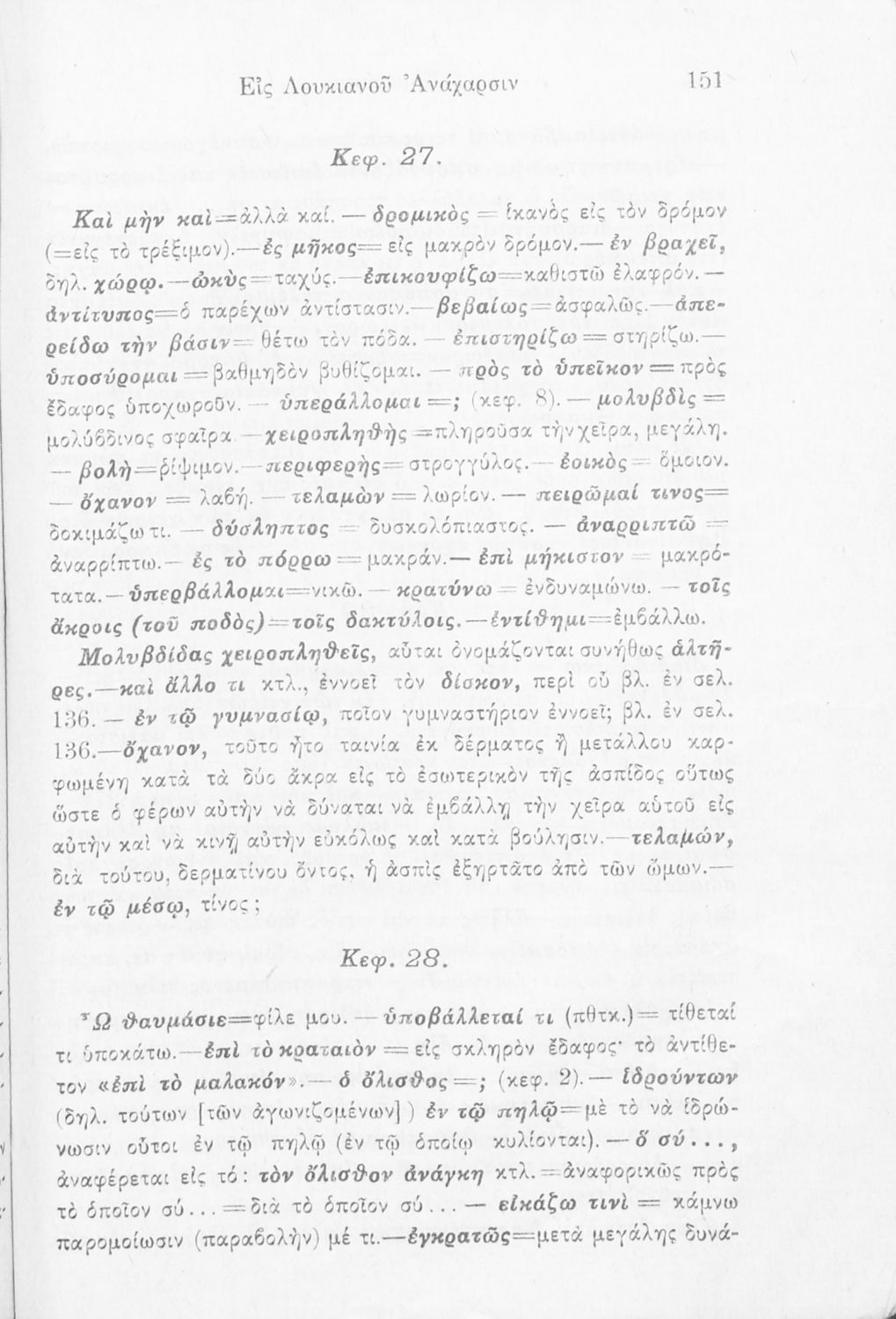 Σχολικό εγχειρίδιο Αρχαίων Ελληνικών Γ΄ Ελληνικού Σχολείου που περιλαμβάνει αποσπάσματα από το έργο του Ξενοφώντα Ελληνικά και τα έργα του Λουκιανού Ενύπνιον και Ανάχαρσις, βιογραφικά σημειώματα των συγγραφέων, ερμηνευτικές και πραγματολογικές σημειώσεις και πίνακα των κυριοτέρων ονομάτων.