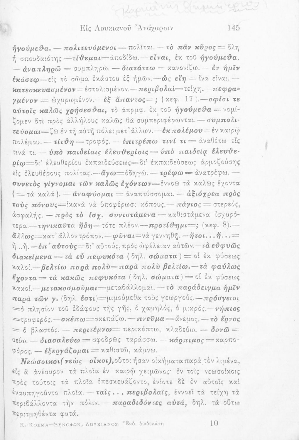 Ξενοφών, Λουκιανός, Κυριάκος Κοσμάς (σχόλια)