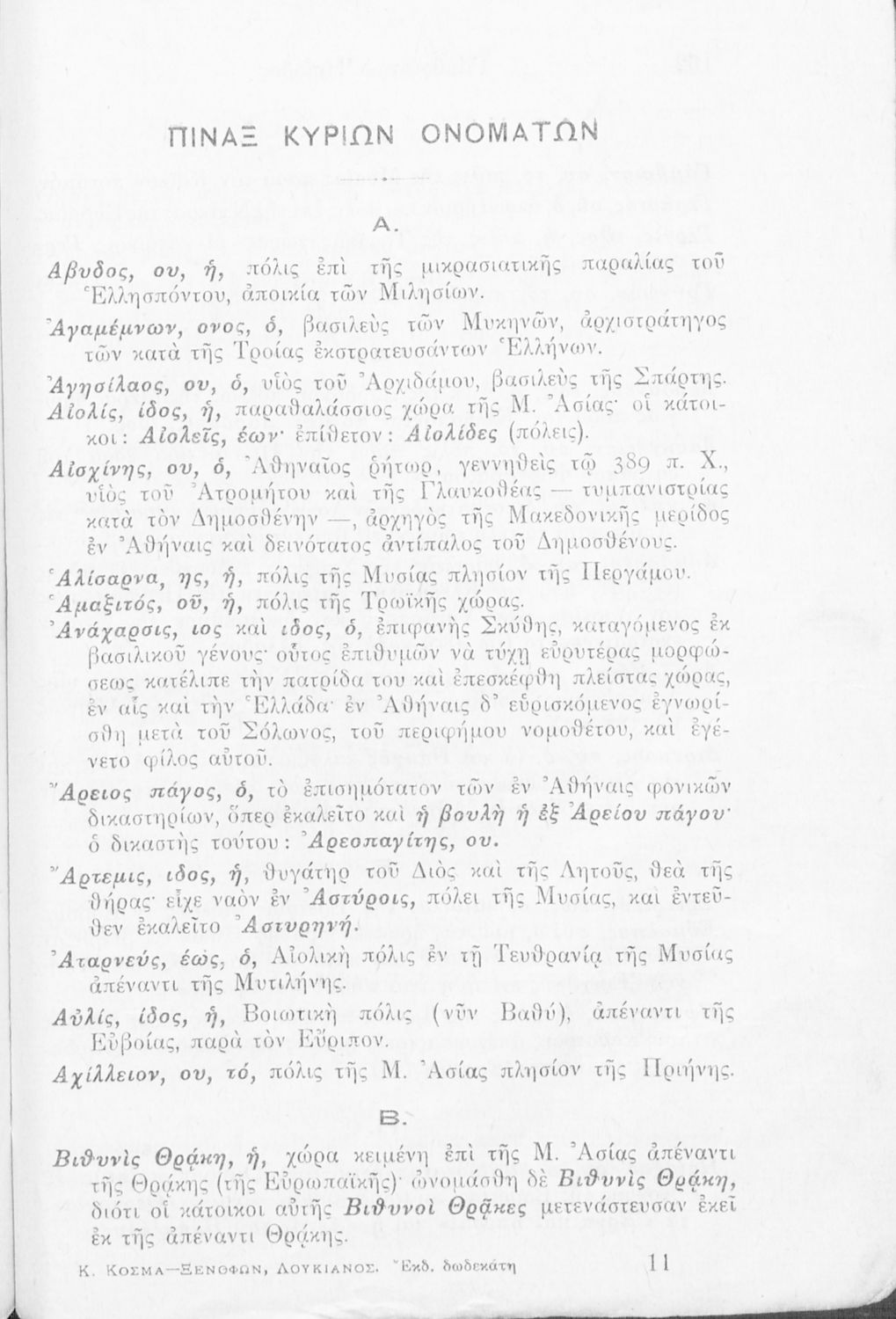 Σχολικό εγχειρίδιο Αρχαίων Ελληνικών για τις Γ΄ Ελληνικού Σχολείου και Α΄ Αστικού Σχολείου Θηλέων που περιλαμβάνει το έργο του Ξενοφώντα Κύρου Ανάβασις, ερμηνευτικά και πραγματολογικά σχόλια και λεξιλογικές ...