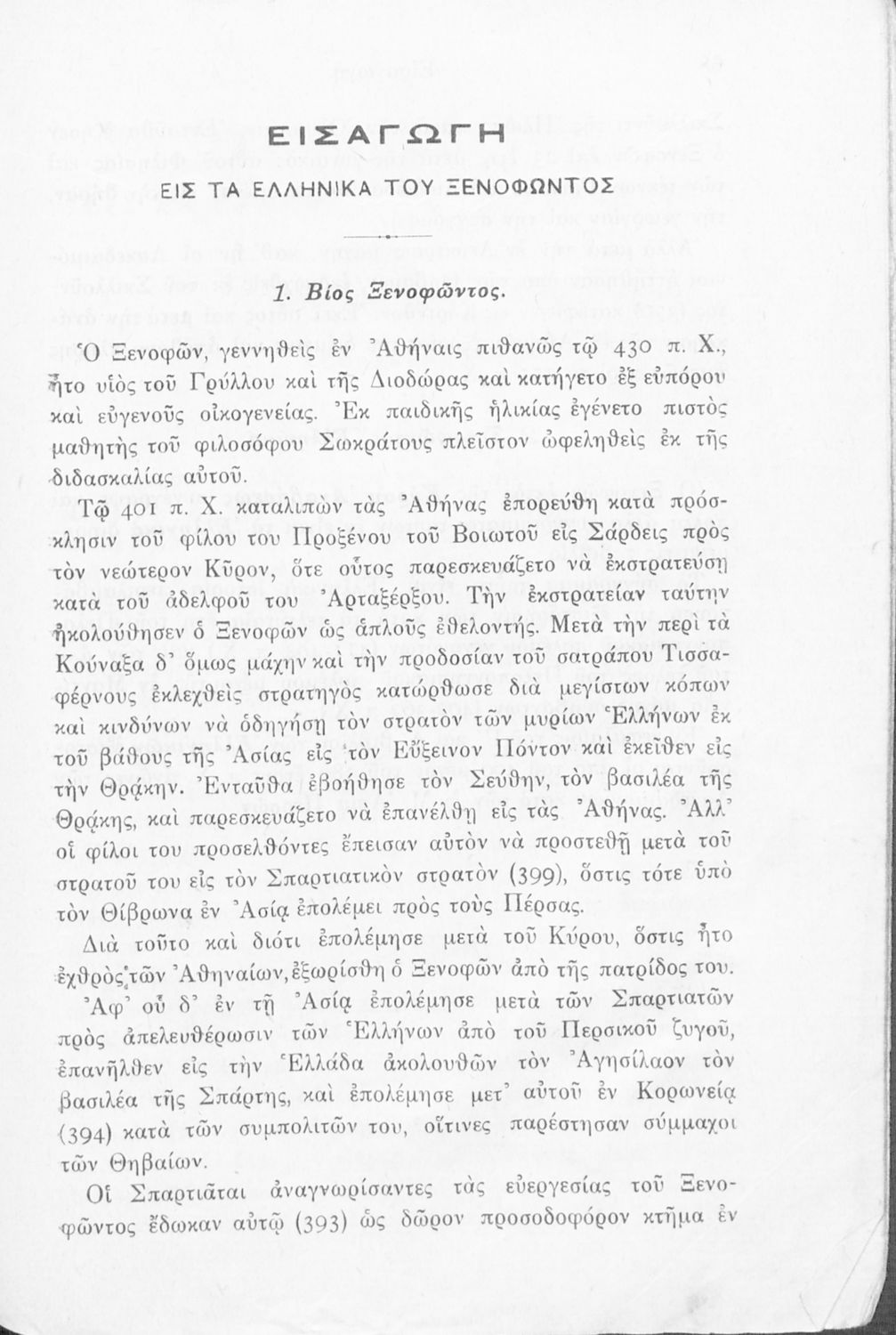 Σχολικό εγχειρίδιο Αρχαίων Ελληνικών για τις Γ΄ Ελληνικών Σχολείων και Α΄ Αστικών Σχολείων Θηλέων που περιλαμβάνει το έργο του Ξενοφώντα Κύρου Ανάβασις, εισαγωγικά σχόλια για τη ζωή και το έργο του, ...