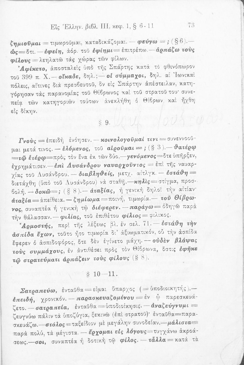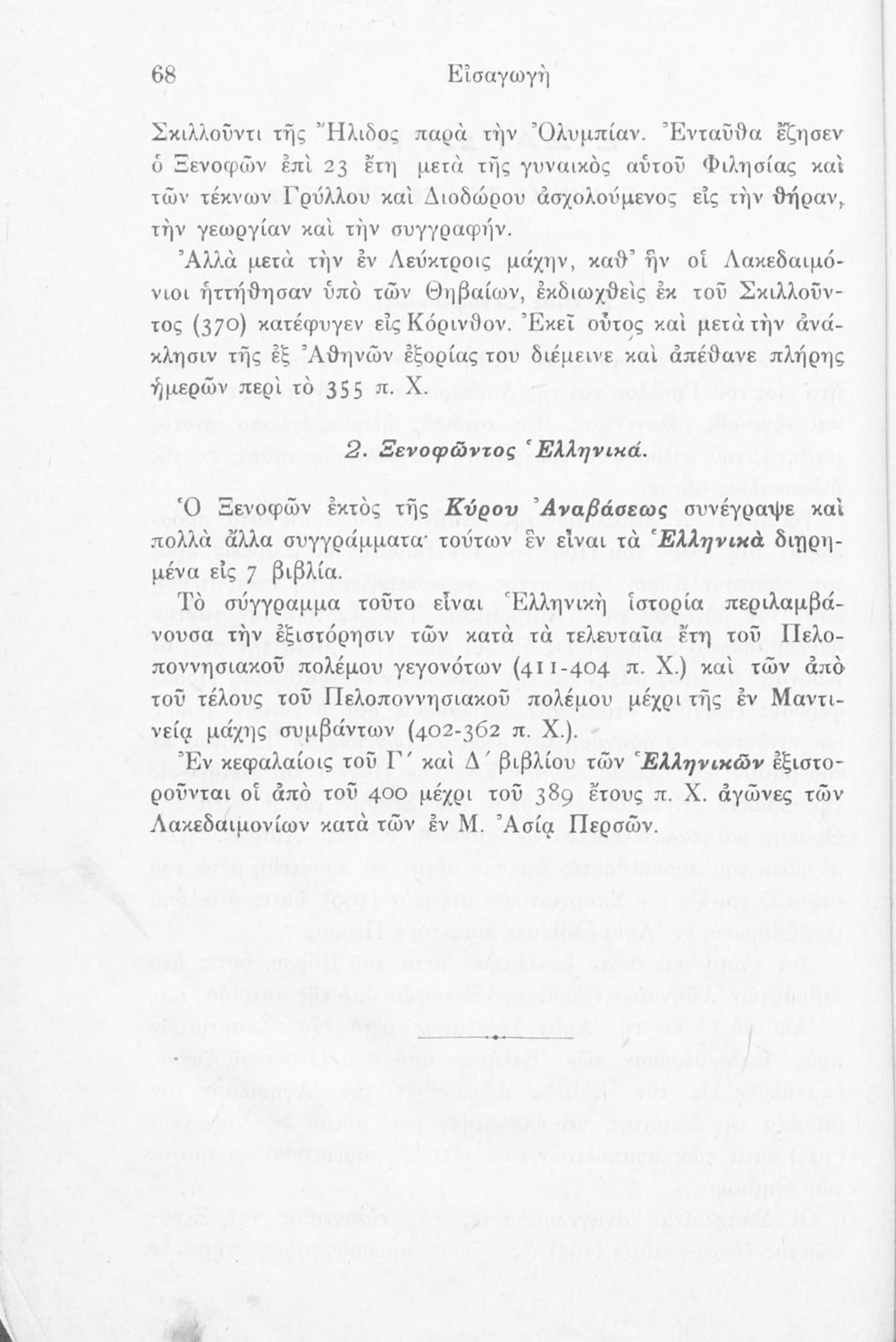 Σχολικό εγχειρίδιο Αρχαίων Ελληνικών Γ΄ Ελληνικού Σχολείου που περιλαμβάνει αποσπάσματα από το έργο του Ξενοφώντα Ελληνικά και τα έργα του Λουκιανού Ενύπνιον και Ανάχαρσις, βιογραφικά σημειώματα των συγγραφέων, ερμηνευτικές και πραγματολογικές σημειώσεις και πίνακα των κυριοτέρων ονομάτων.