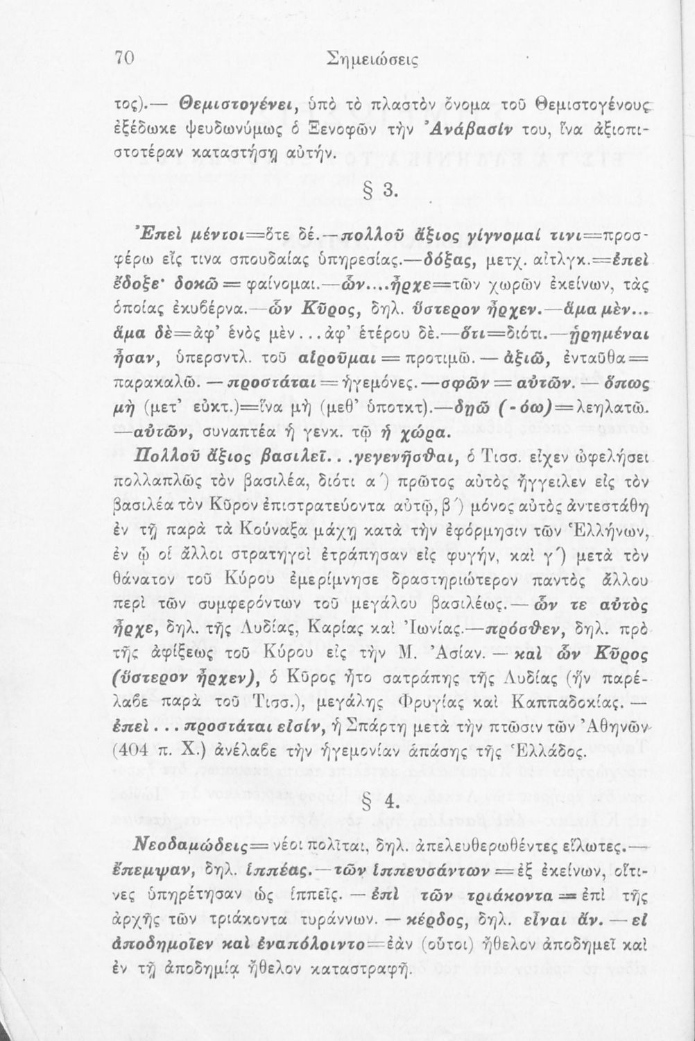 Σχολικό εγχειρίδιο της Γ' Ελληνικού Σχολείου και Αστικών Σχολείων για το μάθημα των Αρχαίων Ελληνικών. Το σύγγραμμα περιλαμβάνει κείμενα κατ΄ επιλογή από τα τέσσερα τελευταία βιβλία του έργου Κύρου Ανάβασις. ...