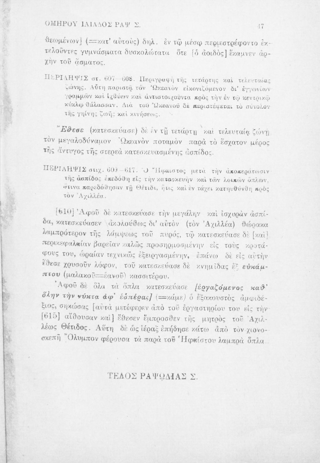 Μαθητικό βοήθημα Αρχαίων Ελληνικών της Δ΄ Γυμνασίου το οποίο περιέχει τις ραψωδίες Ρ΄ και Σ΄ της ΄ Ιλιάδας' σε μετάφραση για ευκολότερη ανάγνωση και κατανόηση από τους μαθητές.
