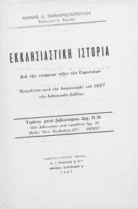 LDR 01149 2200205 4500 035 ## _a02-01713 040 ## _aΕλληνικό Λογοτεχνικό και Ιστορικό Αρχείο 041 ## _ael 100 ## _aΑθανάσιος Δ. Παπαχριστόπουλος 110 ## _a1927 ΠΑΠ 245 0# _aΕκκλησιαστική ιστορία διά την τετάρτην τάξιν των Γυμνασίων 260 ## _aΑθήνα _bΑ.Ι. Ράλλης και ΣΙΑ _c1927 300 ## _a120 520 ## _aΣχολικό εγχειρίδιο Θρησκευτικών Δ΄ Γυμνασίου που αποτελεί μια ιστορική επισκόπηση της Ορθόδοξης Εκκλησίας από την εμφάνισή της μέχρι την ίδρυση της Εκκλησίας της Ελλάδας. 521 ## _aΔ' Γυμνασίου 522 ## _aΕλλάδα 546 ## _aΚαθαρεύουσα 563 ## _aΜαλακό Εξώφυλλο 583 ## _a20999/10-6-1927 _c1927 650 #4 _aΑνατολική Εκκλησία _aΕκκλησιαστική φιλολογία _aΘρησκευτική μεταρρύθμιση