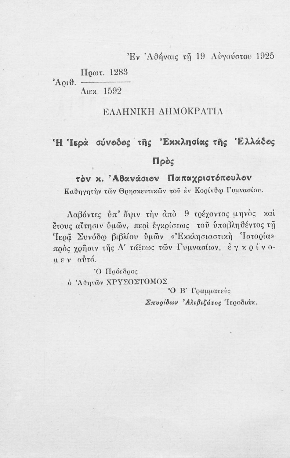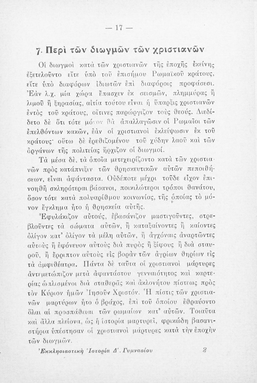 Βαθμίδα εκπαίδευσης: Δευτεροβάθμια Τάξη: Δ' Γυμνασίου Μάθημα: Θρησκευτικά Γλώσσα: Καθαρεύουσα Παρουσίαση περιεχομένου: Σχολικό εγχειρίδιο Θρησκευτικών Δ΄ Γυμνασίου που αποτελεί μια ιστορική επισκόπηση της Ορθόδοξης Εκκλησίας από την εμφάνισή της μέχρι την ίδρυση της Εκκλησίας της Ελλάδας. |
