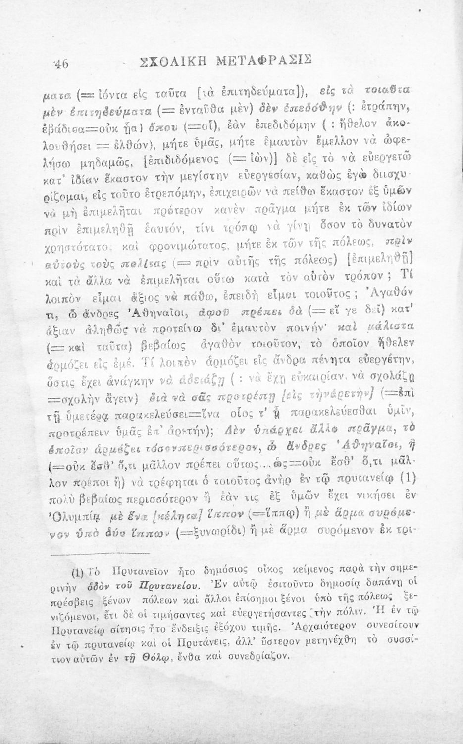Μαθητικό βοήθημα Αρχαίων Ελληνικών της τρίτης τάξης των τετρατάξιων Γυμνασίων. Το βιβλίο περιέχει τα έργα του Δημοσθένη, Περί της ειρήνης και Α΄ Φιλιππικός από μετάφραση.