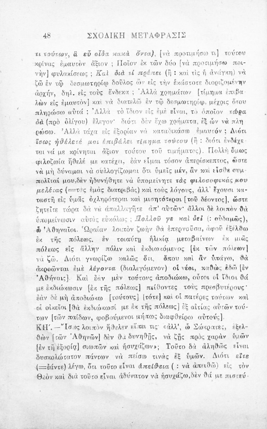 Σχολική μετάφρασις απολογίας Σωκράτους Πλάτωνος, προς χρήσιν των μαθητών της τρίτης τάξεως των τετραταξίων Γυμνασίων και της αντιστοίχου τάξεως των λοιπών σχολείων και της Μέσης Εκπαιδεύσεως