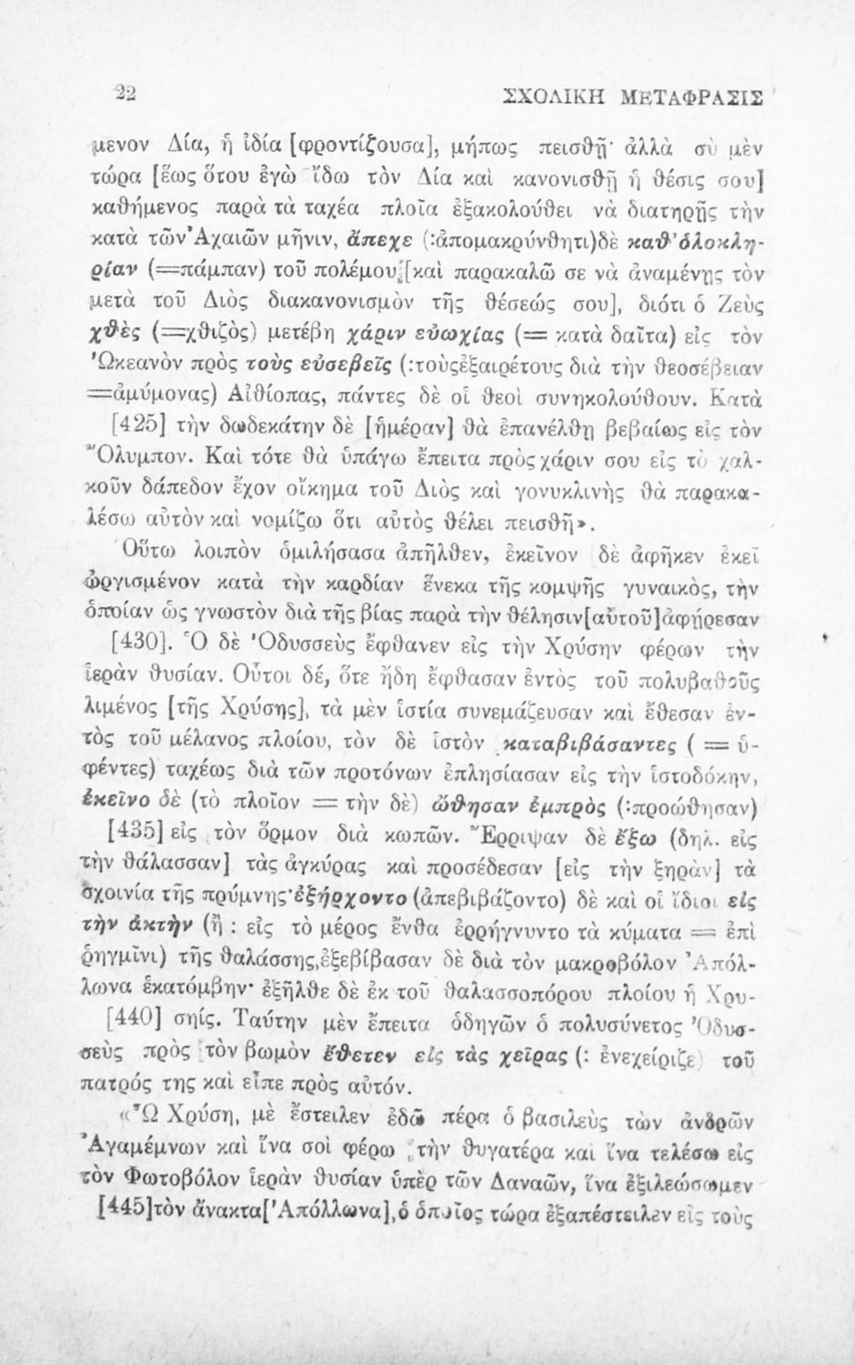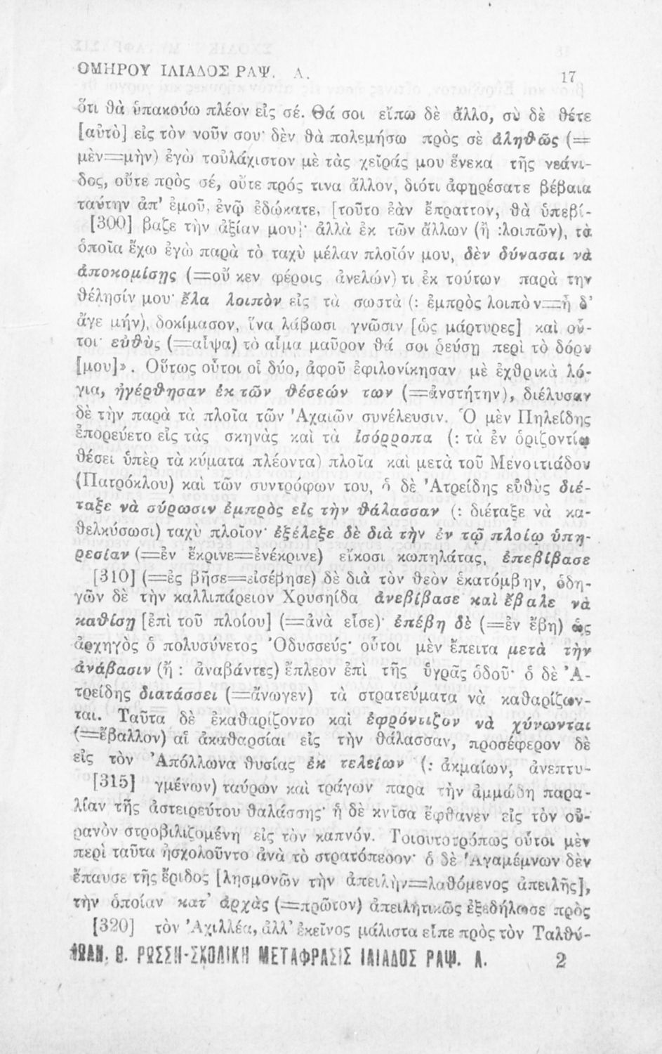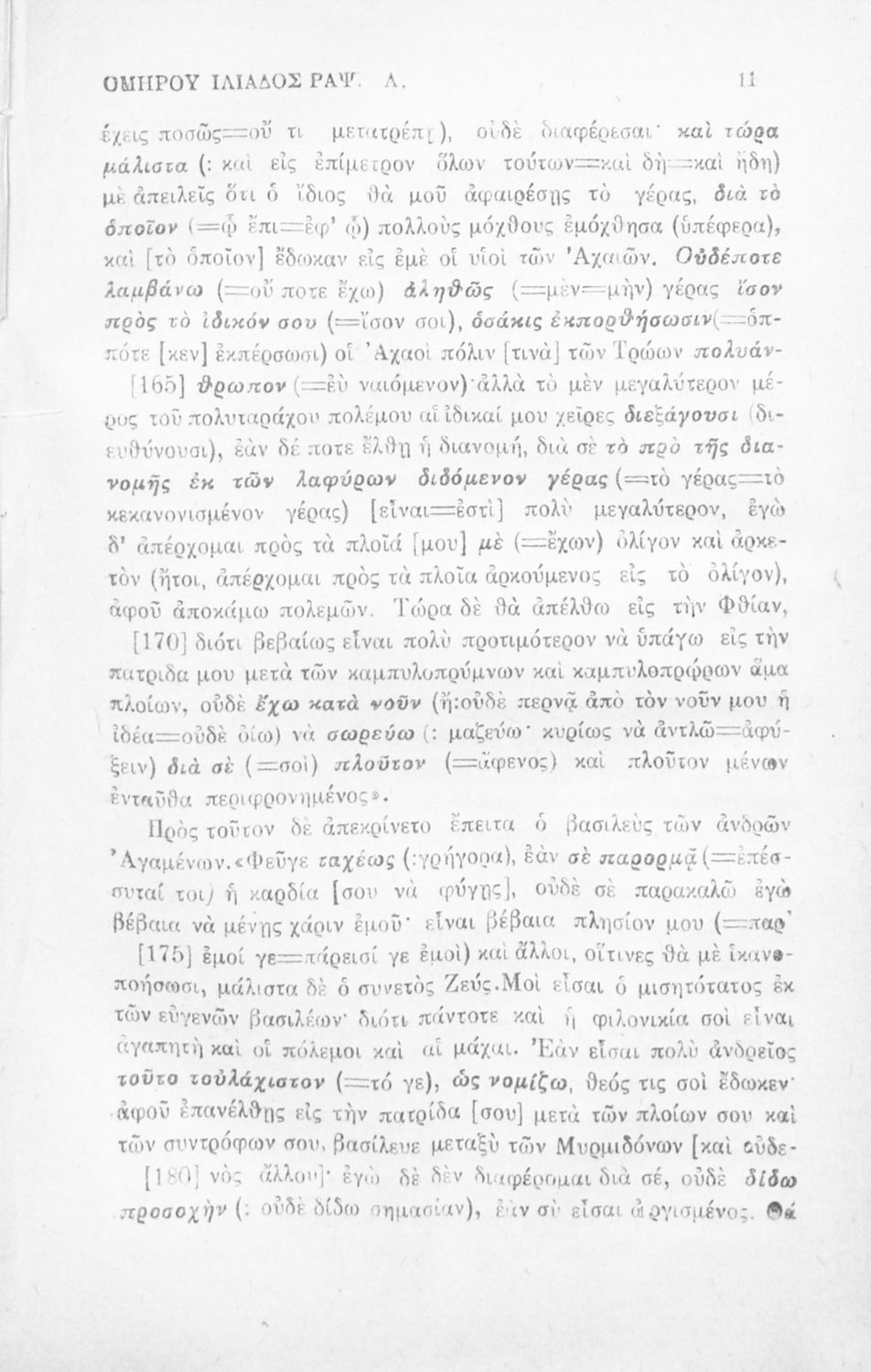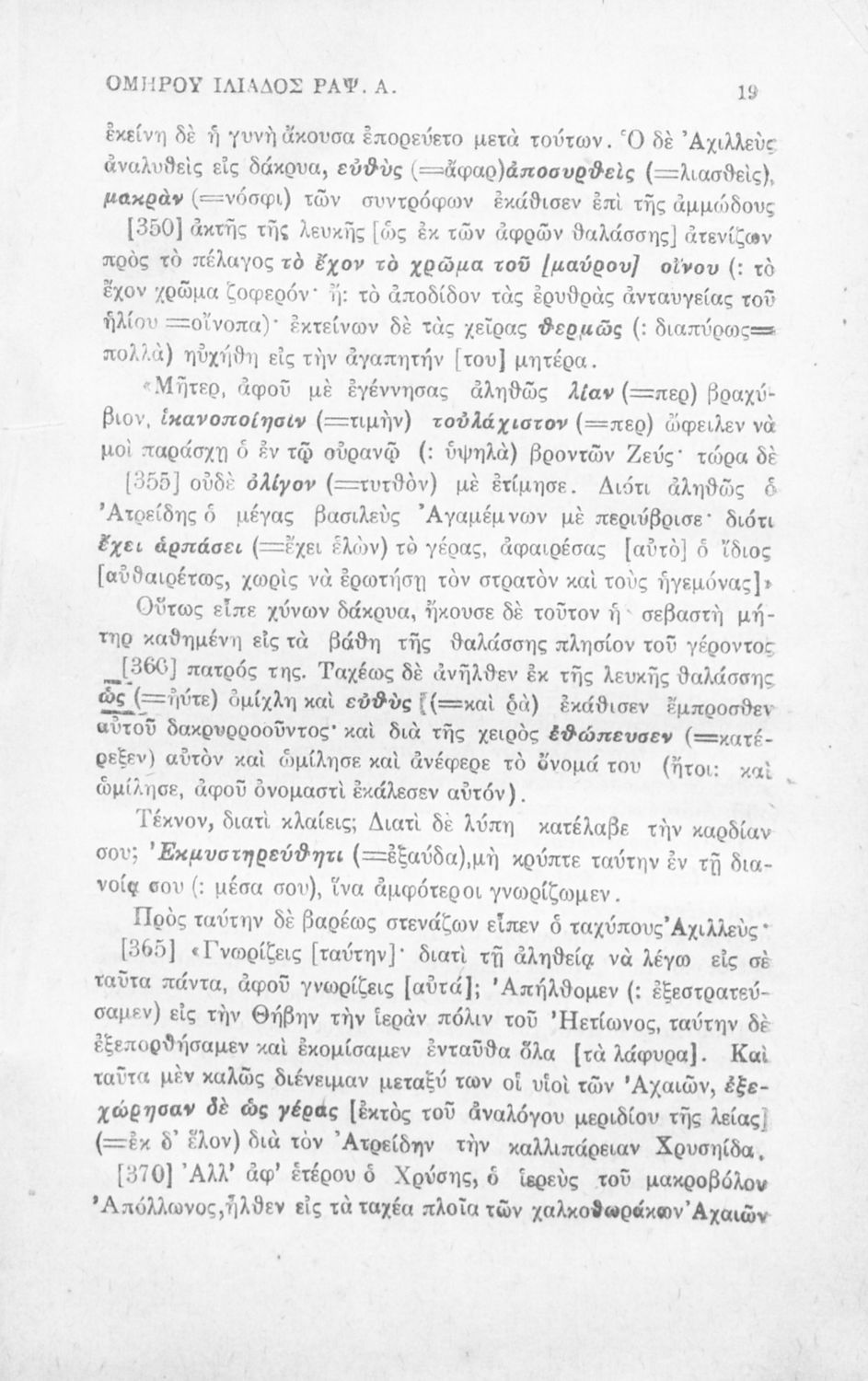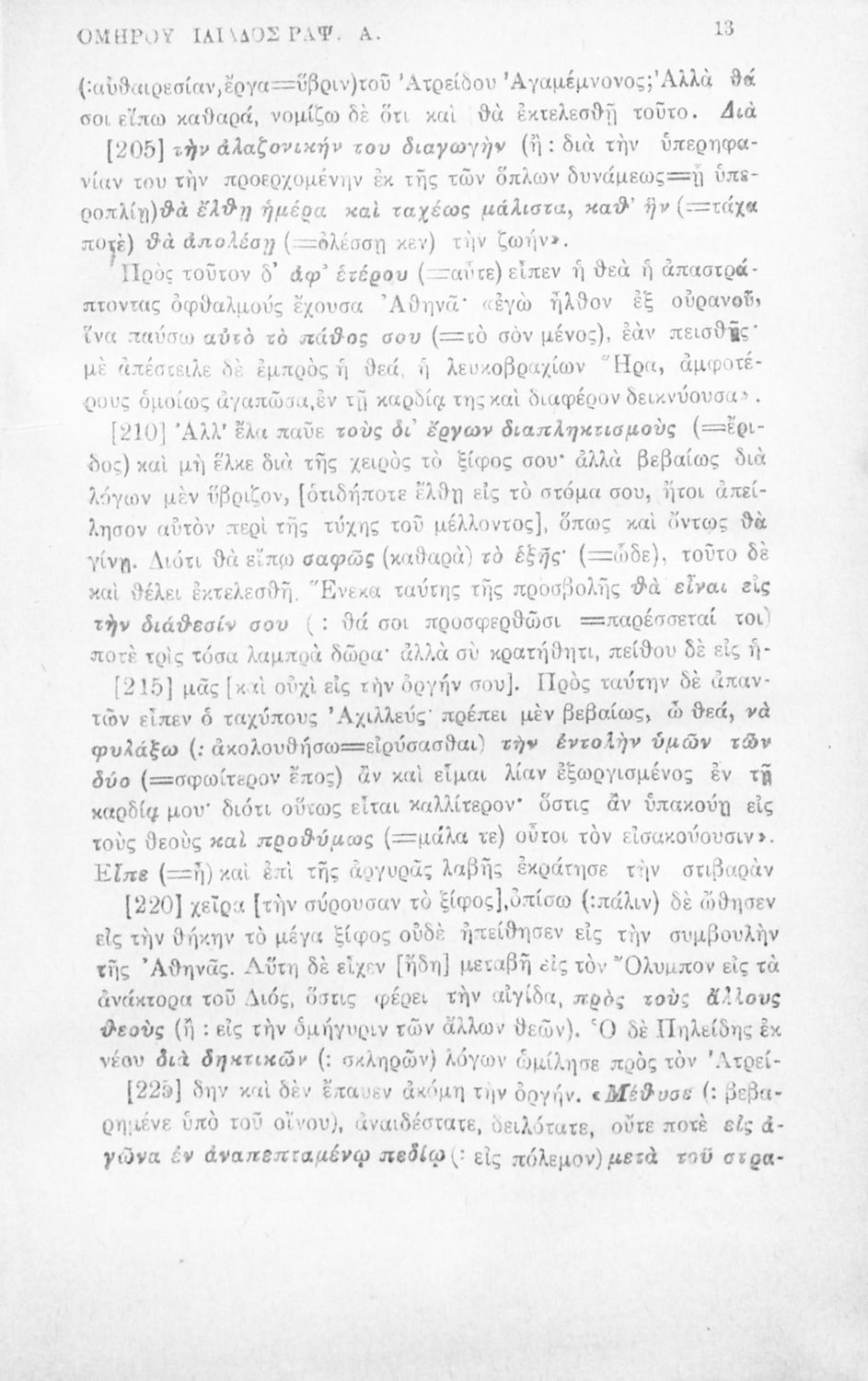 Μαθητικό βοήθημα Αρχαίων Ελληνικών της Γ΄ τάξης των τετρατάξιων Γυμνασίων το οποίο περιέχει σε μετάφραση τη ραψωδία Α΄ από την 'Ιλιάδα' του Ομήρου.