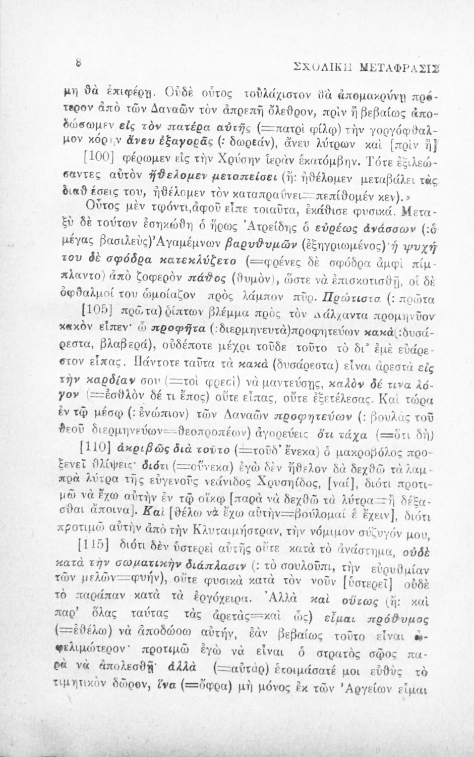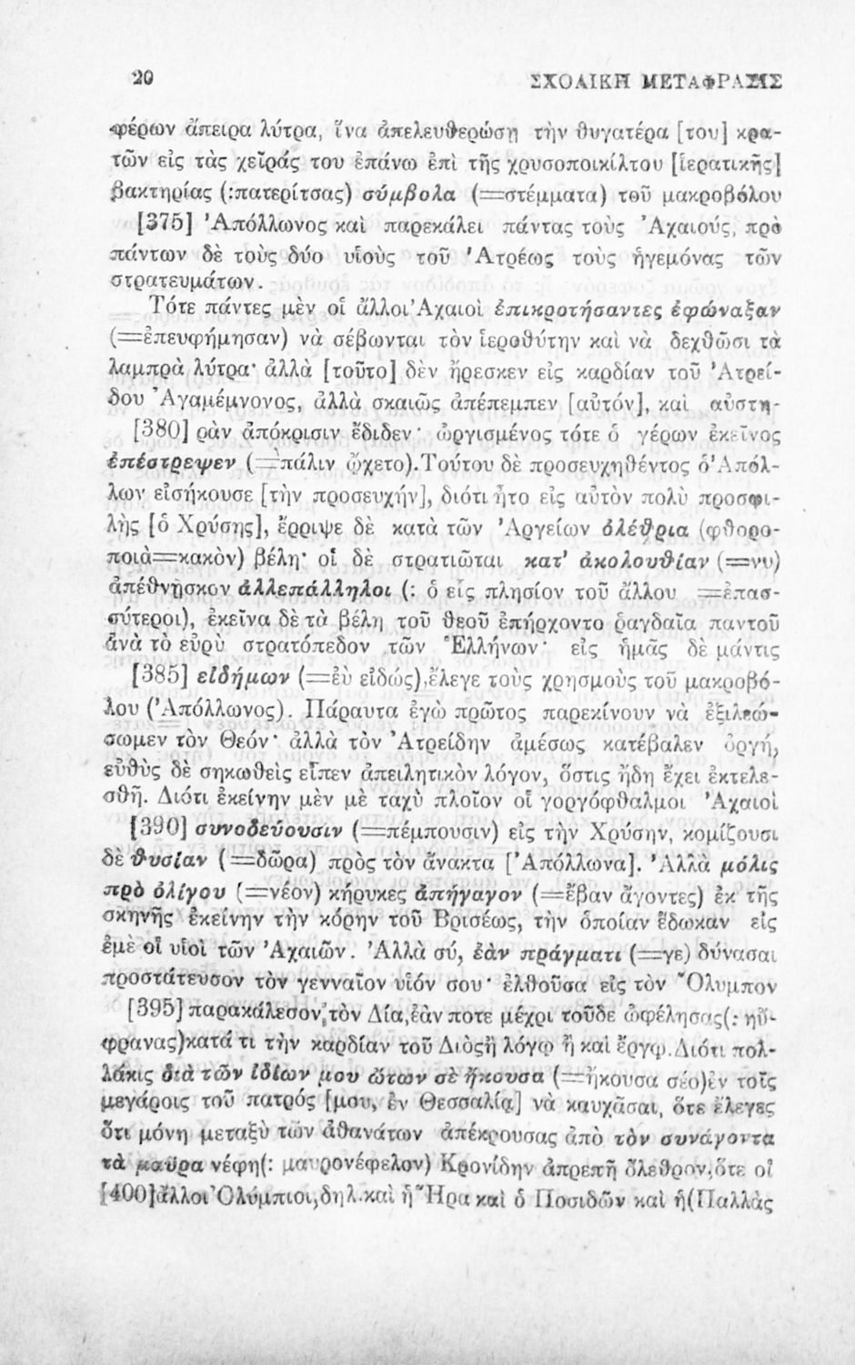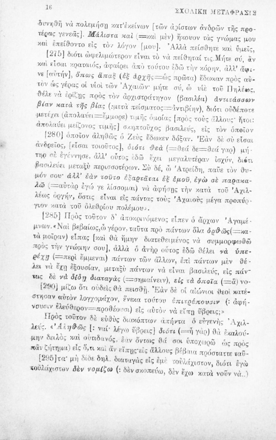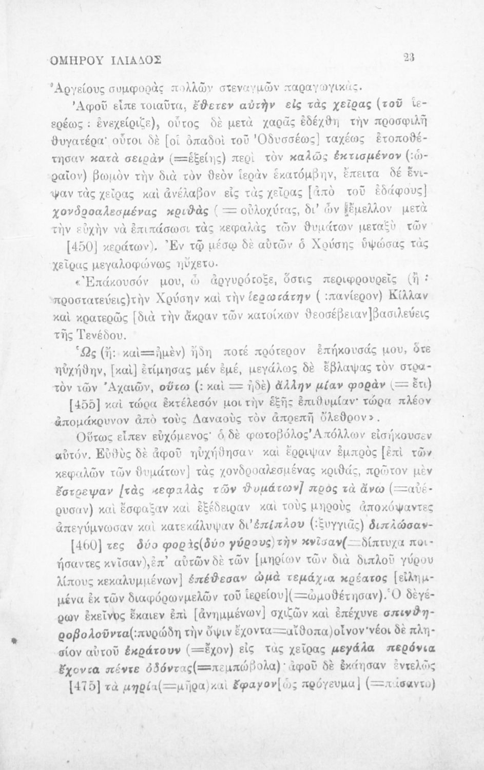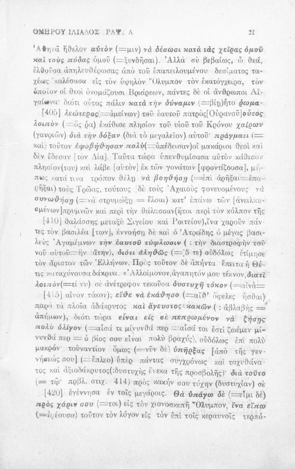 Μαθητικό βοήθημα Αρχαίων Ελληνικών της Γ΄ τάξης των τετρατάξιων Γυμνασίων το οποίο περιέχει σε μετάφραση τη ραψωδία Α΄ από την 'Ιλιάδα' του Ομήρου.