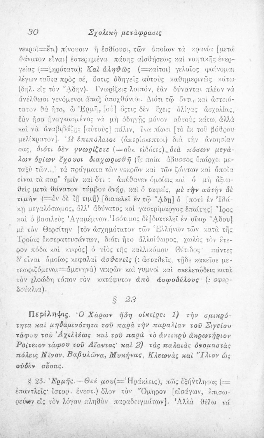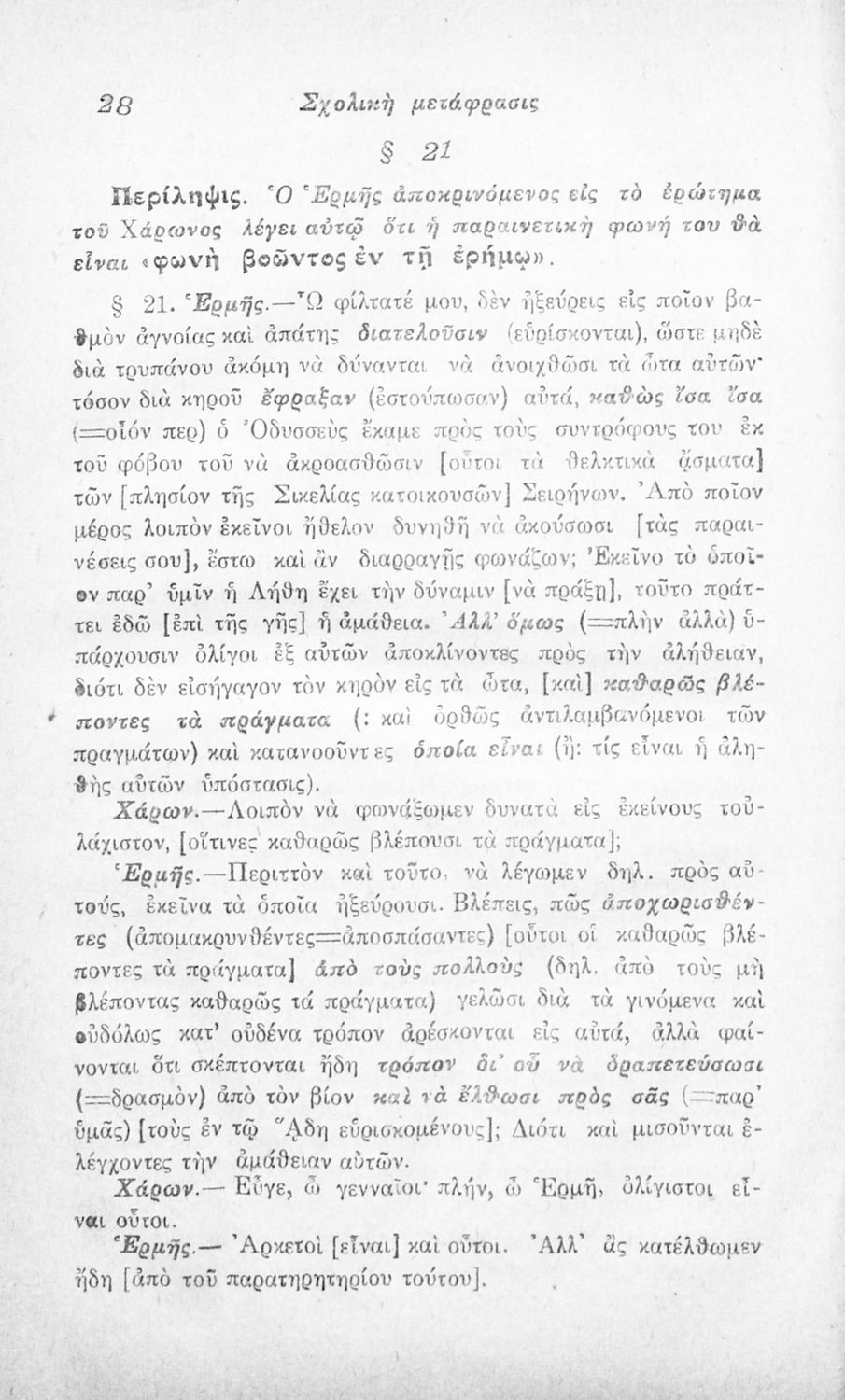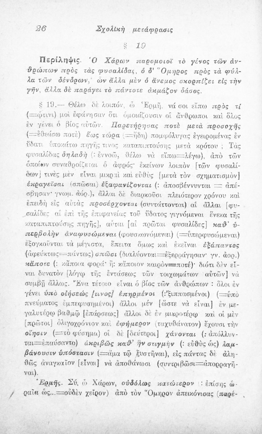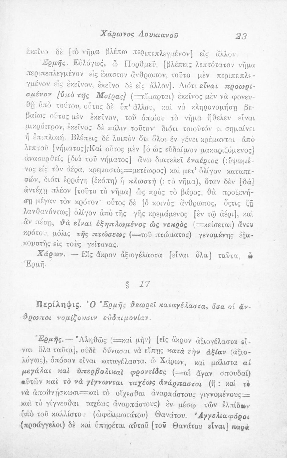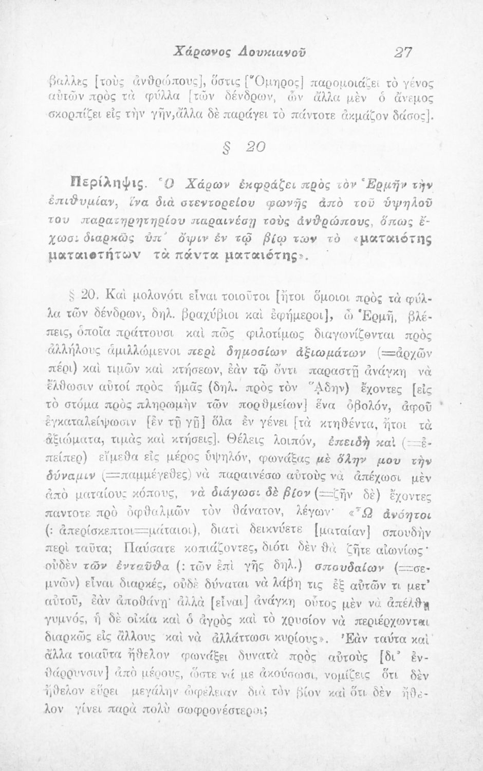 Μαθητικό βοήθημα Αρχαίων Ελληνικών της Γ΄ τάξης των τετρατάξιων Γυμνασίων το οποίο περιέχει το έργο του Λουκιανού 'Χάρωνος ή Επισκοπούντων' σε μετάφραση.