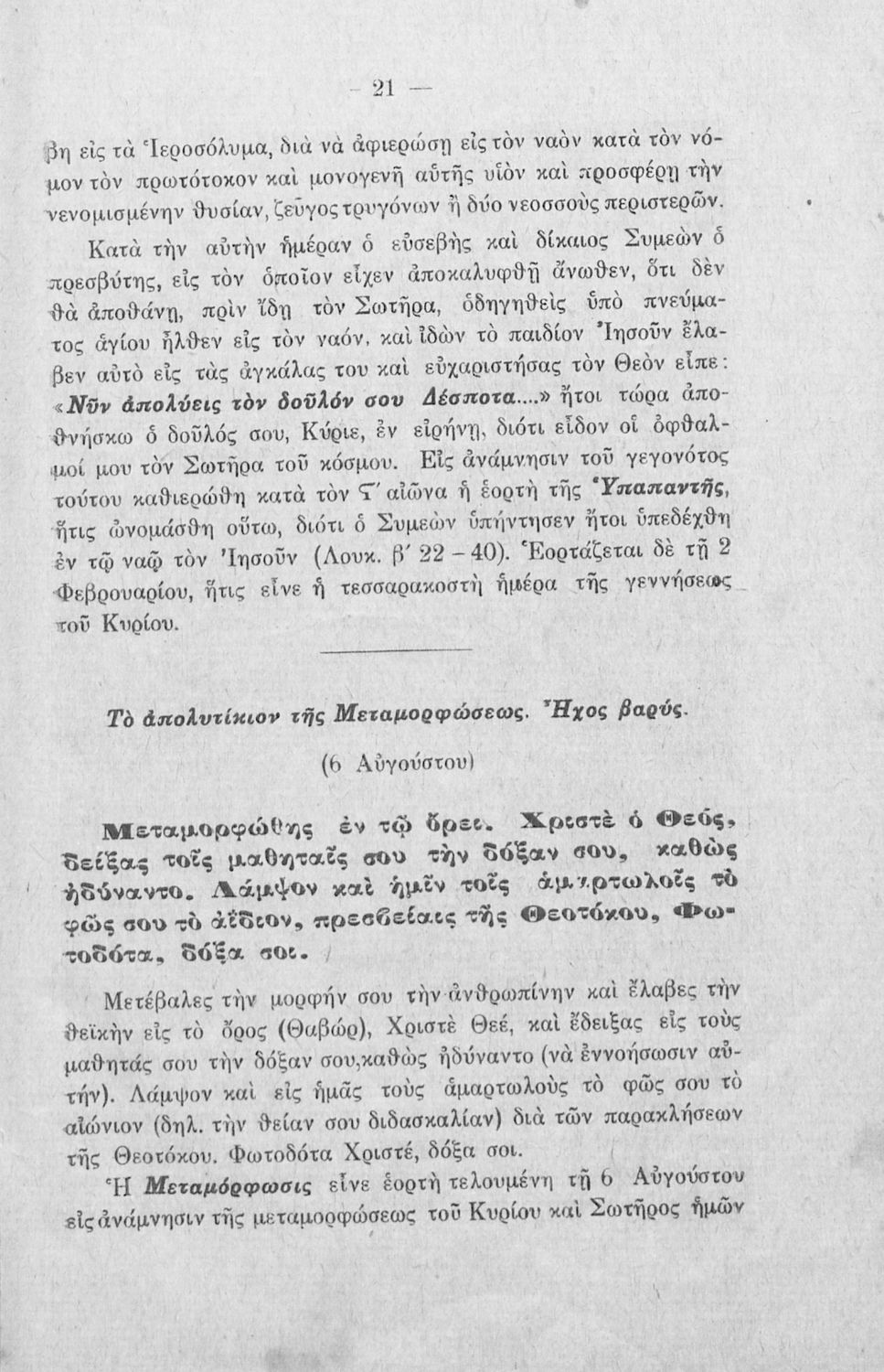 Σχολικό εγχειρίδιο Θρησκευτικών για τις τρεις τάξεις των Ελληνικών Σχολείων. Πρόκειται για βιβλίο που περιέχει συλλογή και εξήγηση από απολυτίκια των δεσποτικών και θεομητορικών εορτών.