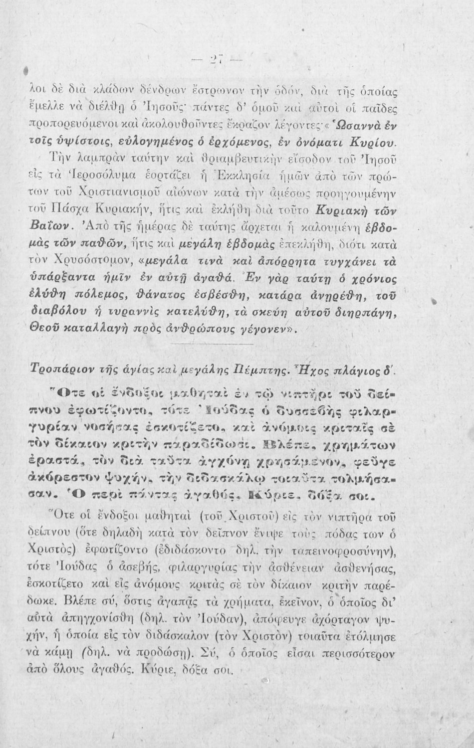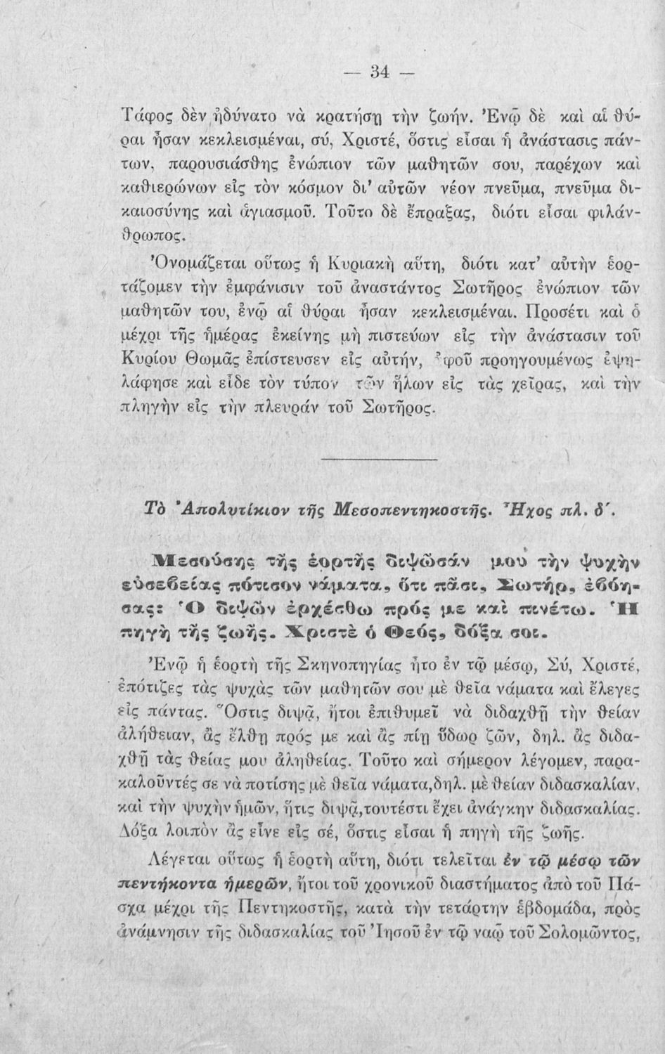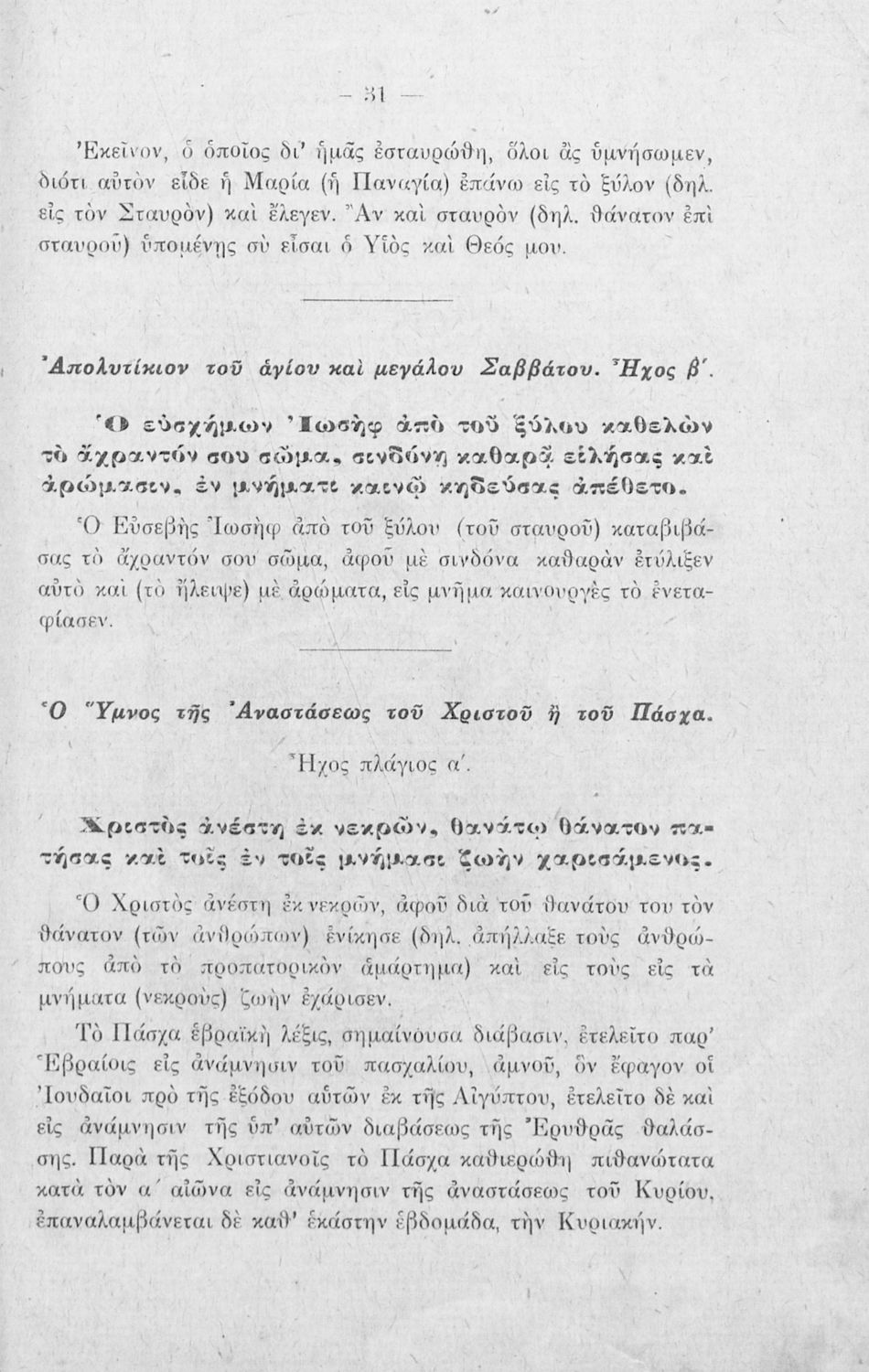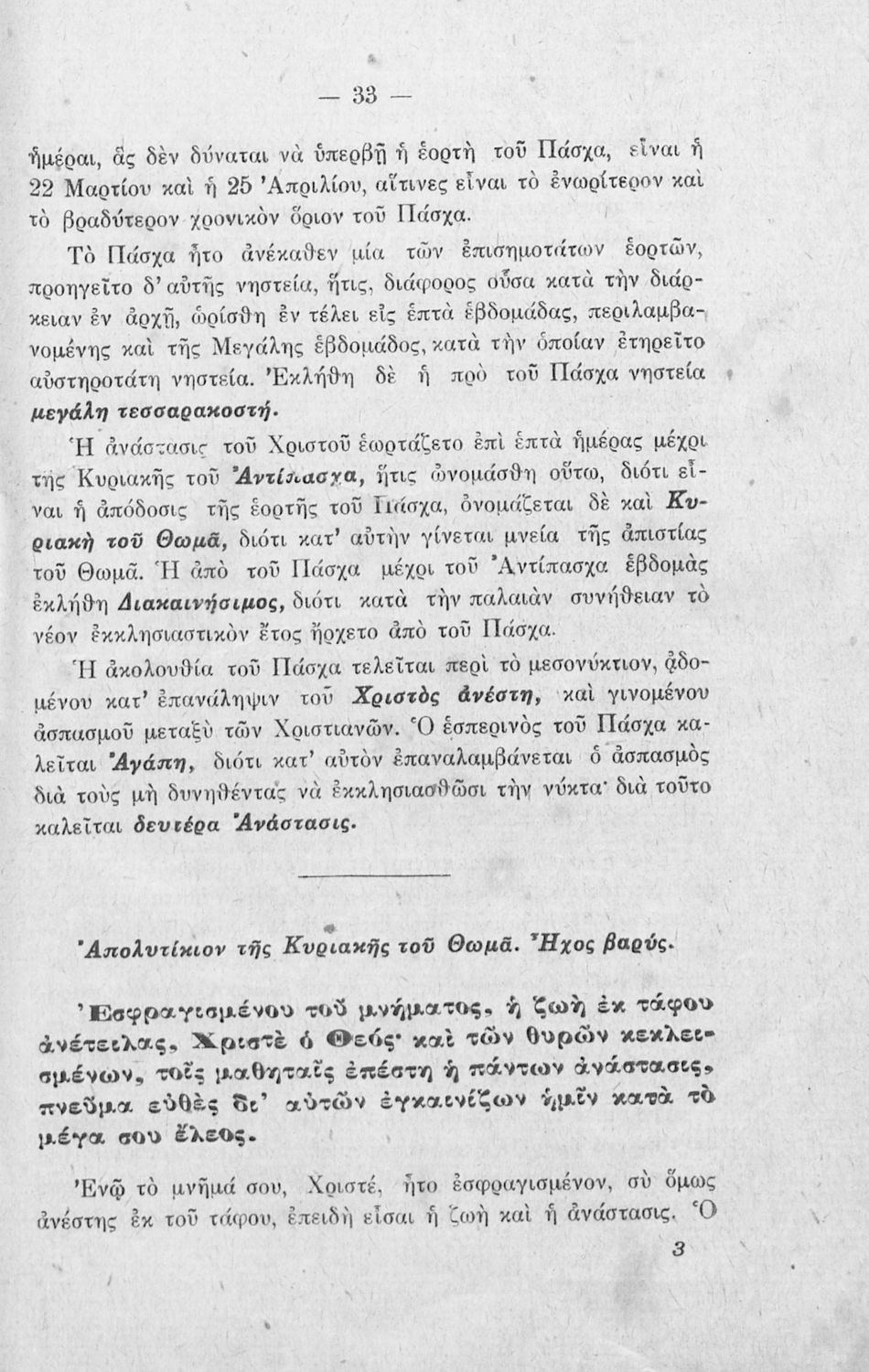 Σχολικό εγχειρίδιο Θρησκευτικών Α΄, Β΄, Γ' Ελληνικού Σχολείου που περιλαμβάνει εισαγωγή στα λειτουργικά άσματα, εξαποστειλάρια, απολυτίκια και ερμηνευτικές σημειώσεις.