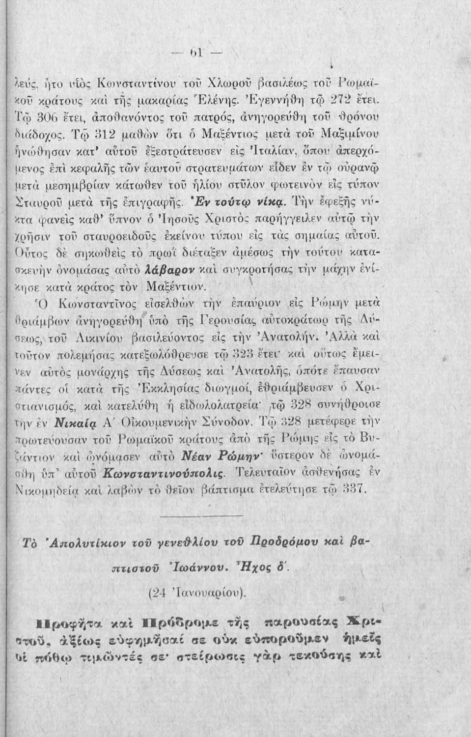 Σχολικό εγχειρίδιο Θρησκευτικών για τις τρεις τάξεις των Ελληνικών Σχολείων. Πρόκειται για βιβλίο που περιέχει συλλογή και εξήγηση από απολυτίκια των δεσποτικών και θεομητορικών εορτών.