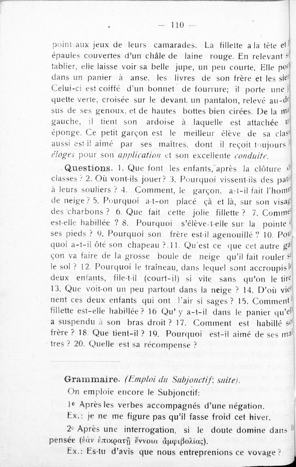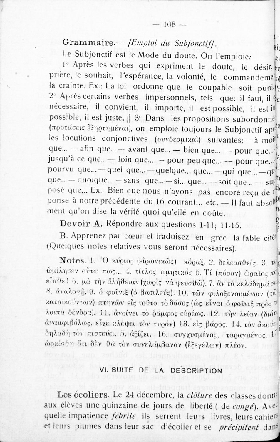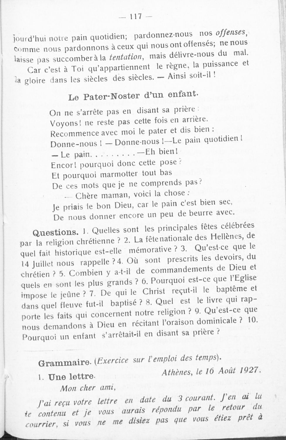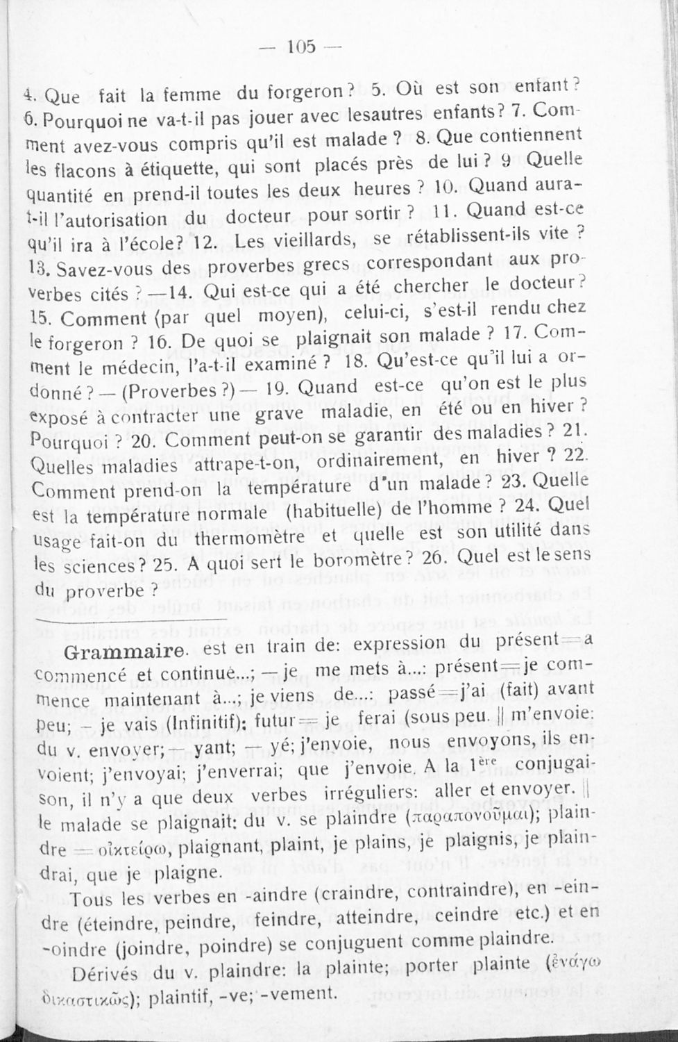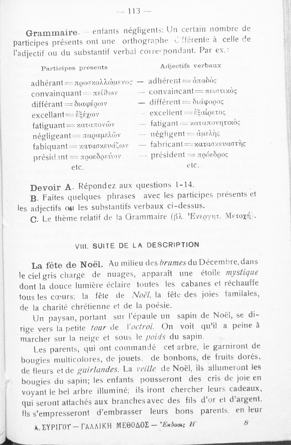 Σχολικό εγχειρίδιο για τις τάξεις των Γυμνασίων, Αστικών σχολείων, Παρθεναγωγείων, Διδασκαλεία και Εμπορικές σχολές. Το βιβλίο περιλαμβάνει ασκήσεις γραμματικής, συντακτικού και λεξιλογίου για πρακτική εξάσκηση των μαθητών. Επιπλέον το βιβλίο περιλαμβάνει σειρά κειμένων τα οποία συνοδεύονται ερωτήσεις για γλωσσική ανάλυση.