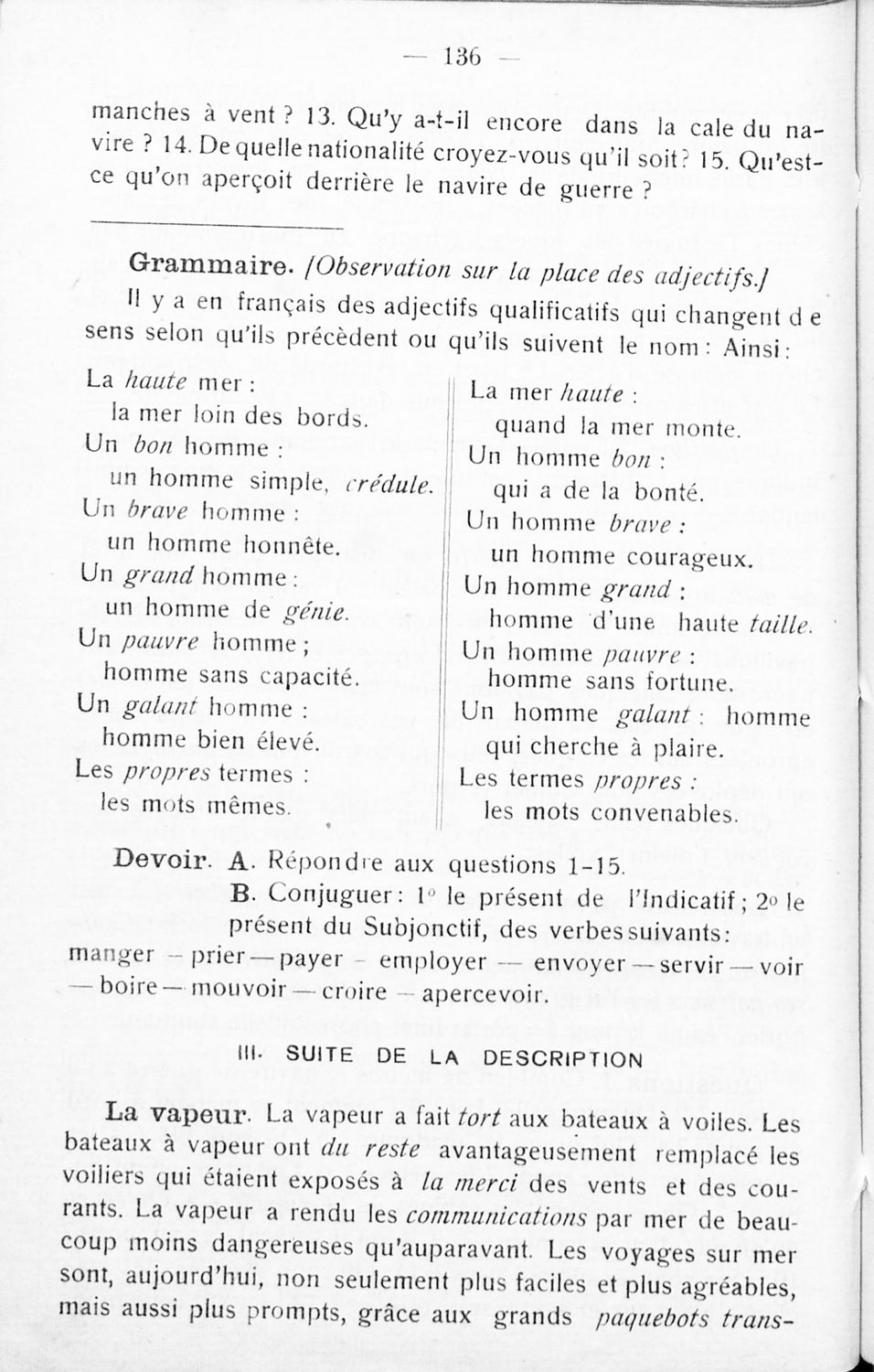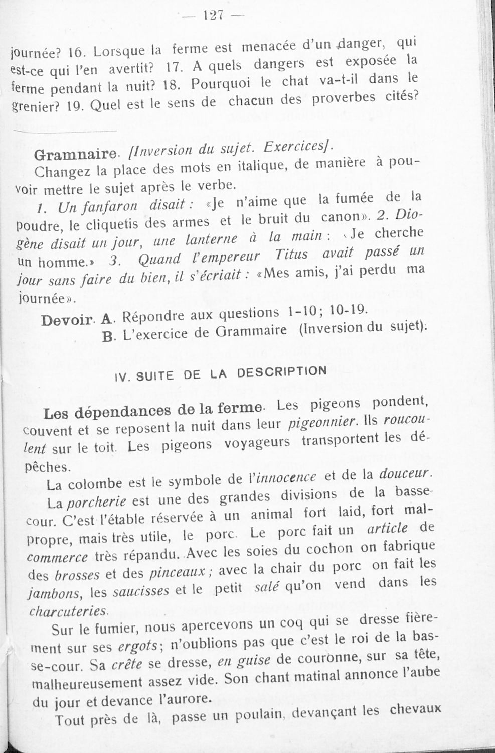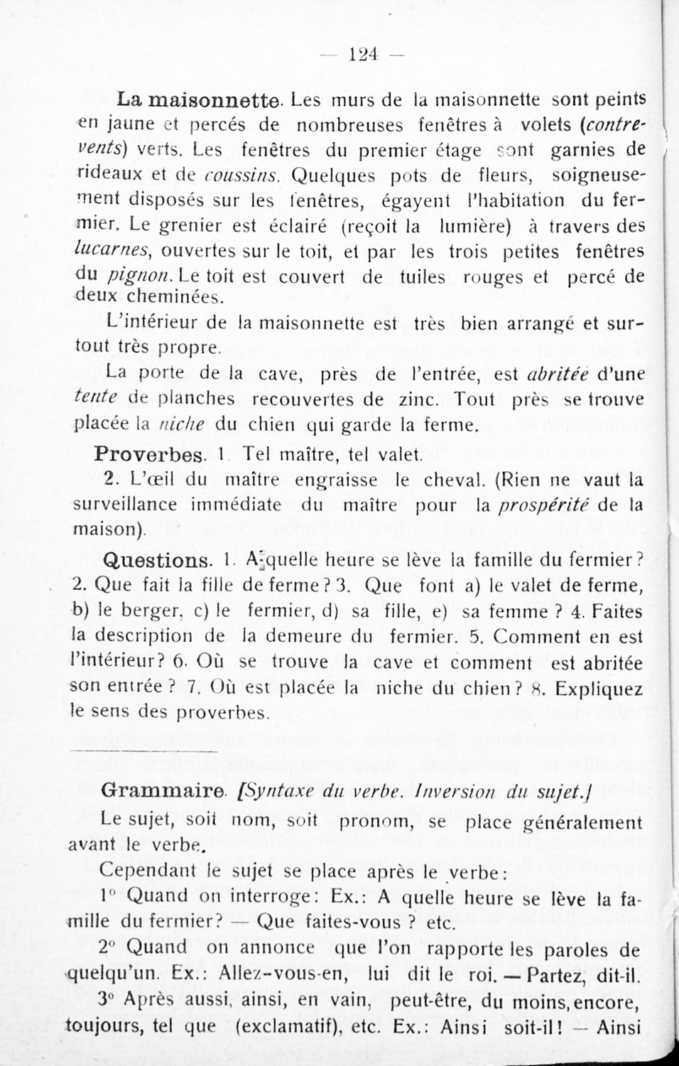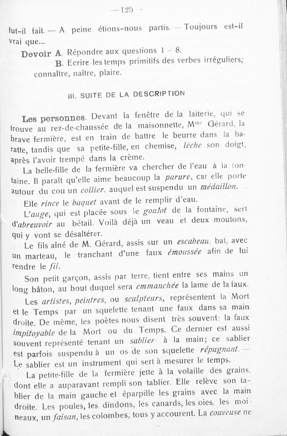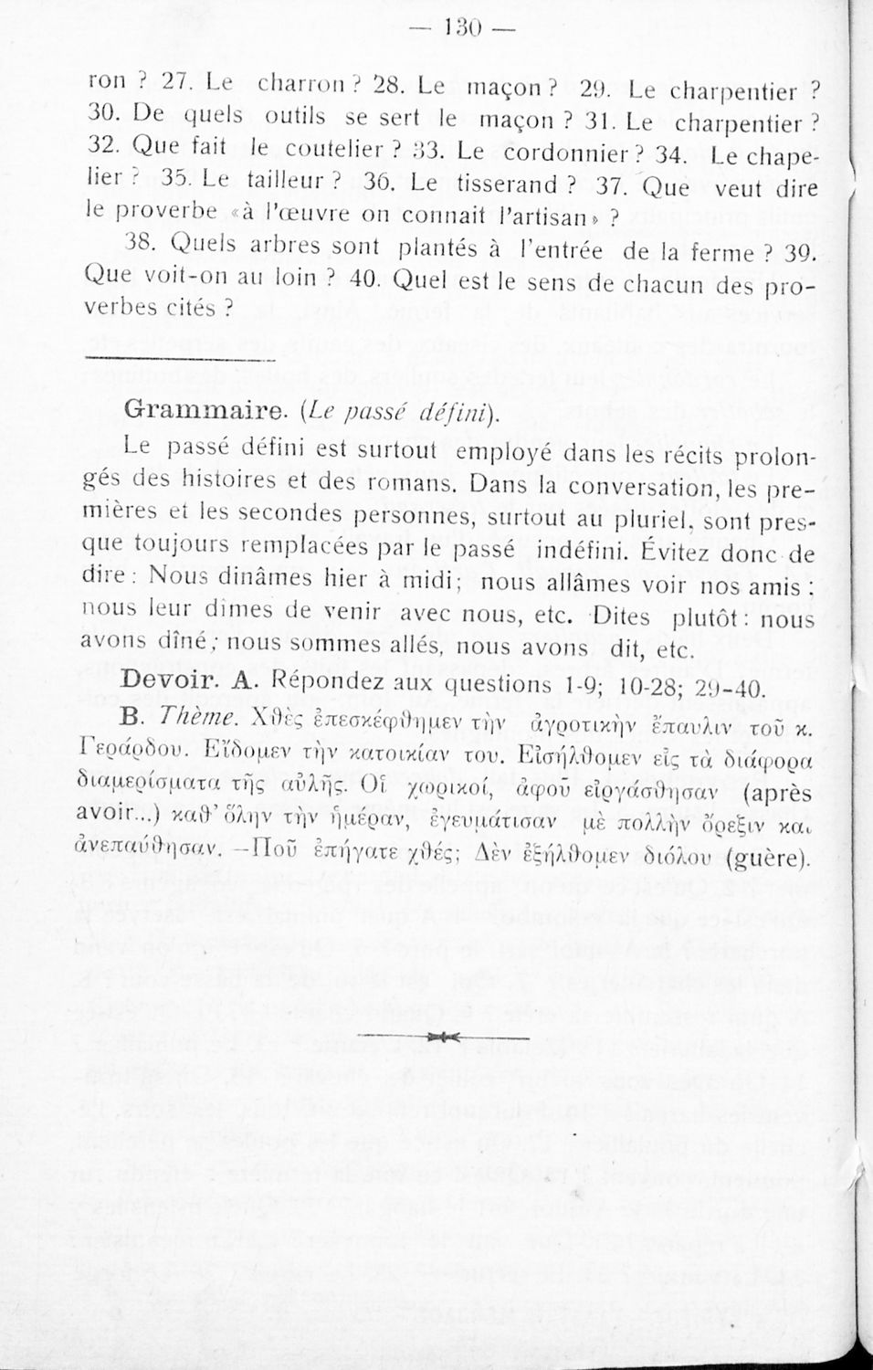 Σχολικό εγχειρίδιο Γαλλικών που περιλαμβάνει κείμενα, λεξιλόγιο και ασκήσεις. Ο συγγραφέας ήταν καθηγητής της Δημόσιας Εμπορικής Σχολής Αθηνών και του Αρσακείου.
