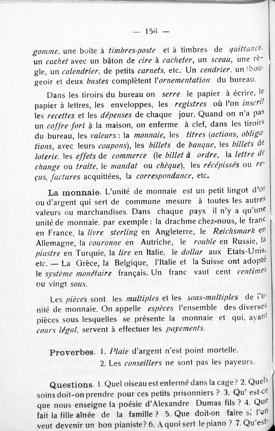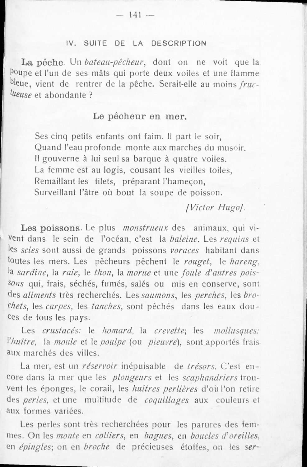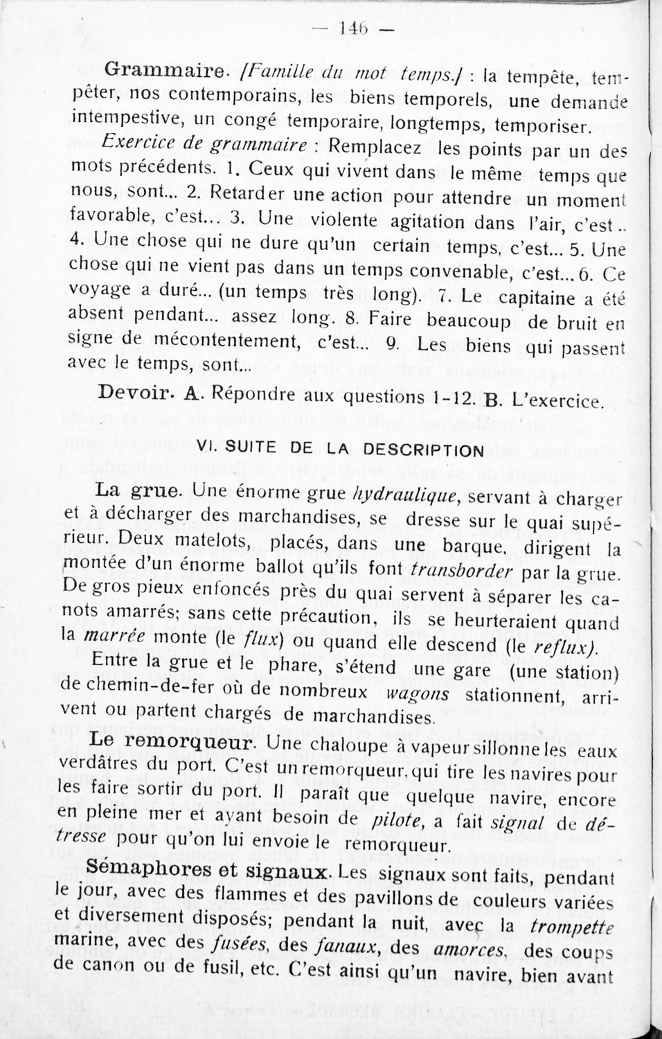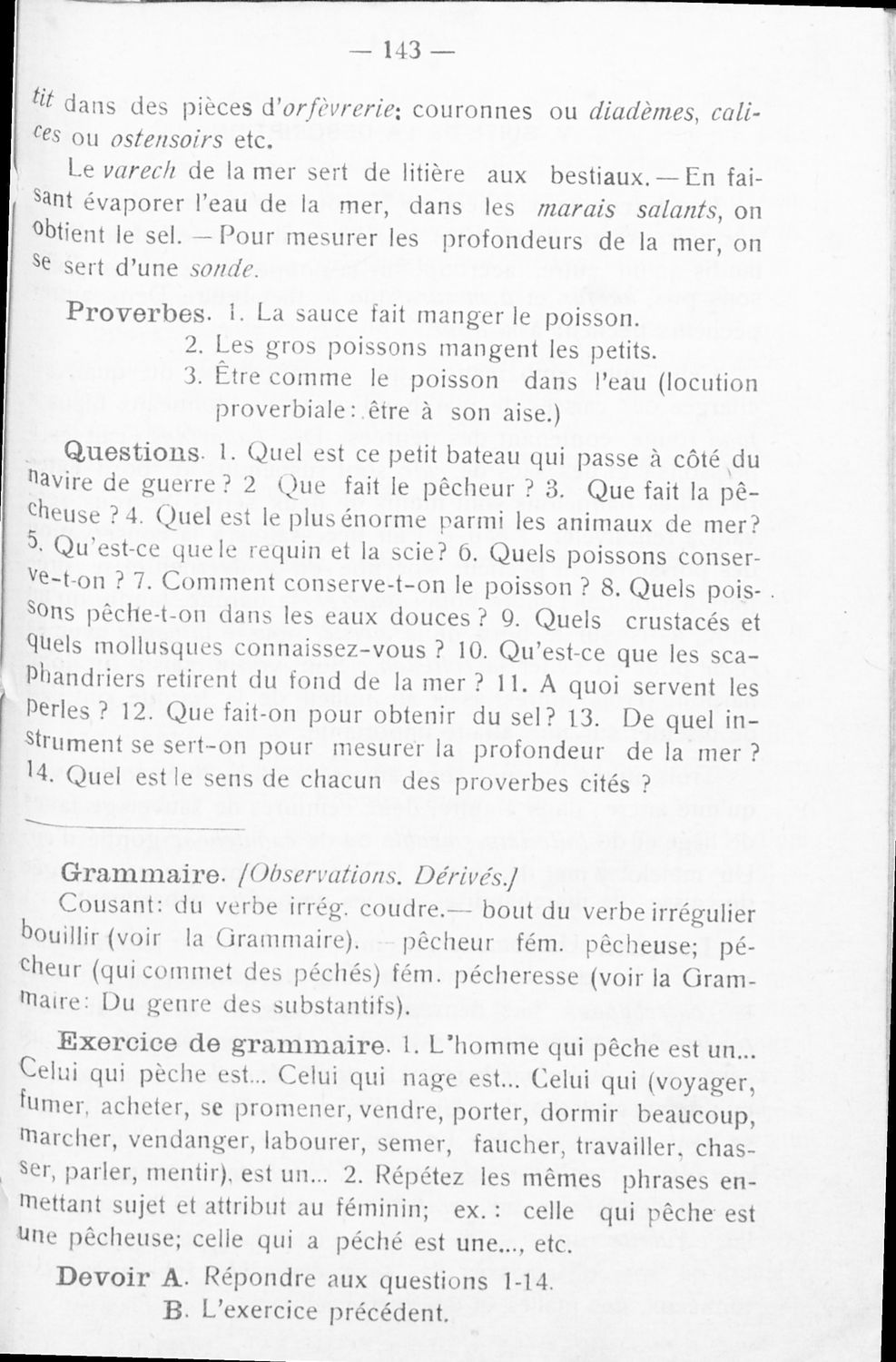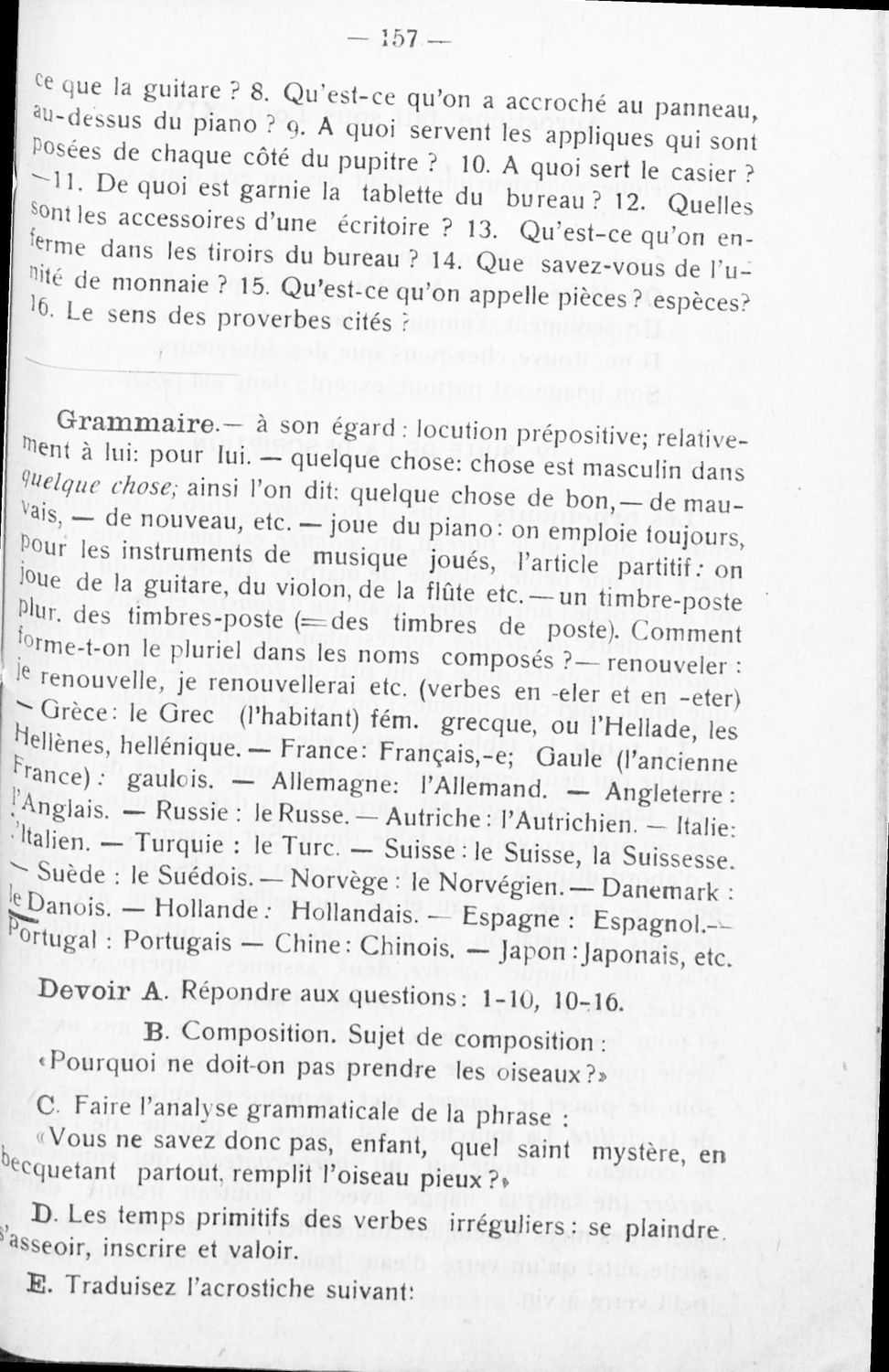 Σχολικό εγχειρίδιο Γαλλικών που περιλαμβάνει κείμενα, λεξιλόγιο και ασκήσεις. Ο συγγραφέας ήταν καθηγητής της Δημόσιας Εμπορικής Σχολής Αθηνών και του Αρσακείου.