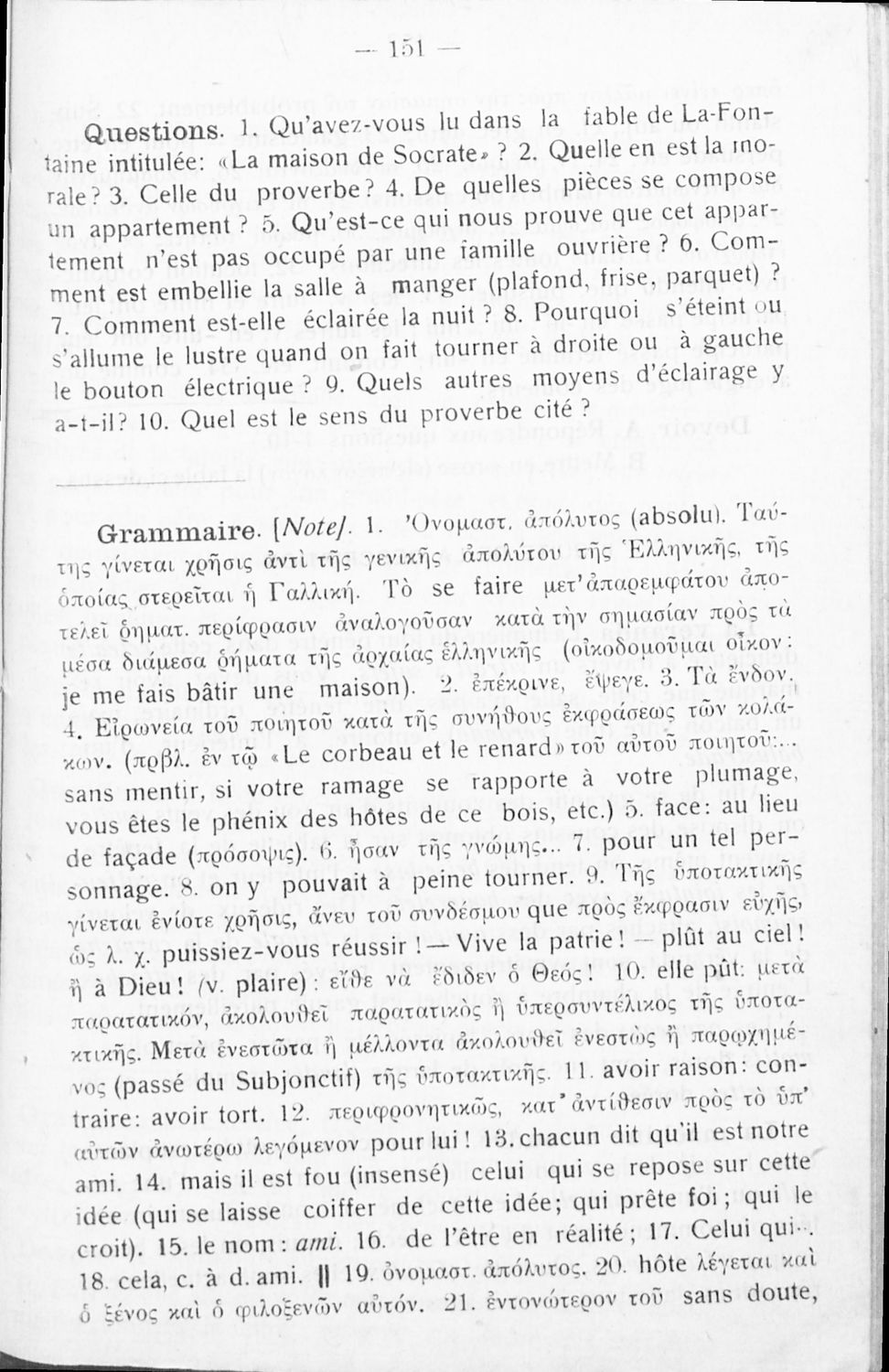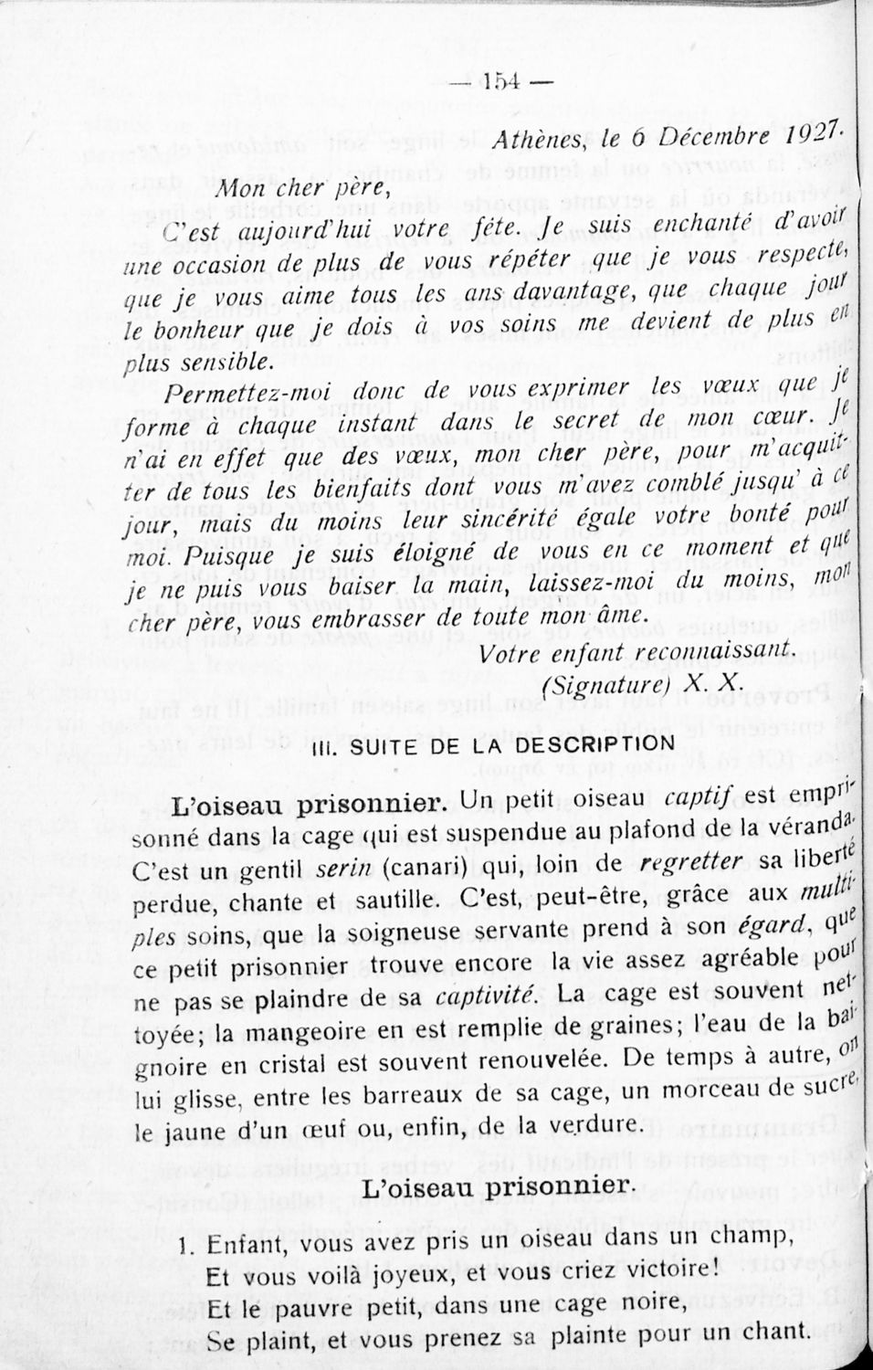 Σχολικό εγχειρίδιο Γαλλικών των Γυμνασίων, Αστικών Σχολείων θηλέων και Διδασκαλείων Δημοτικής Εκπαίδευσης. Κείμενα, ποιήματα, από εποχές και τον κοινωνικό και οικογενειακό βίο, τα οποία συνοδεύονται ασκήσεις ...