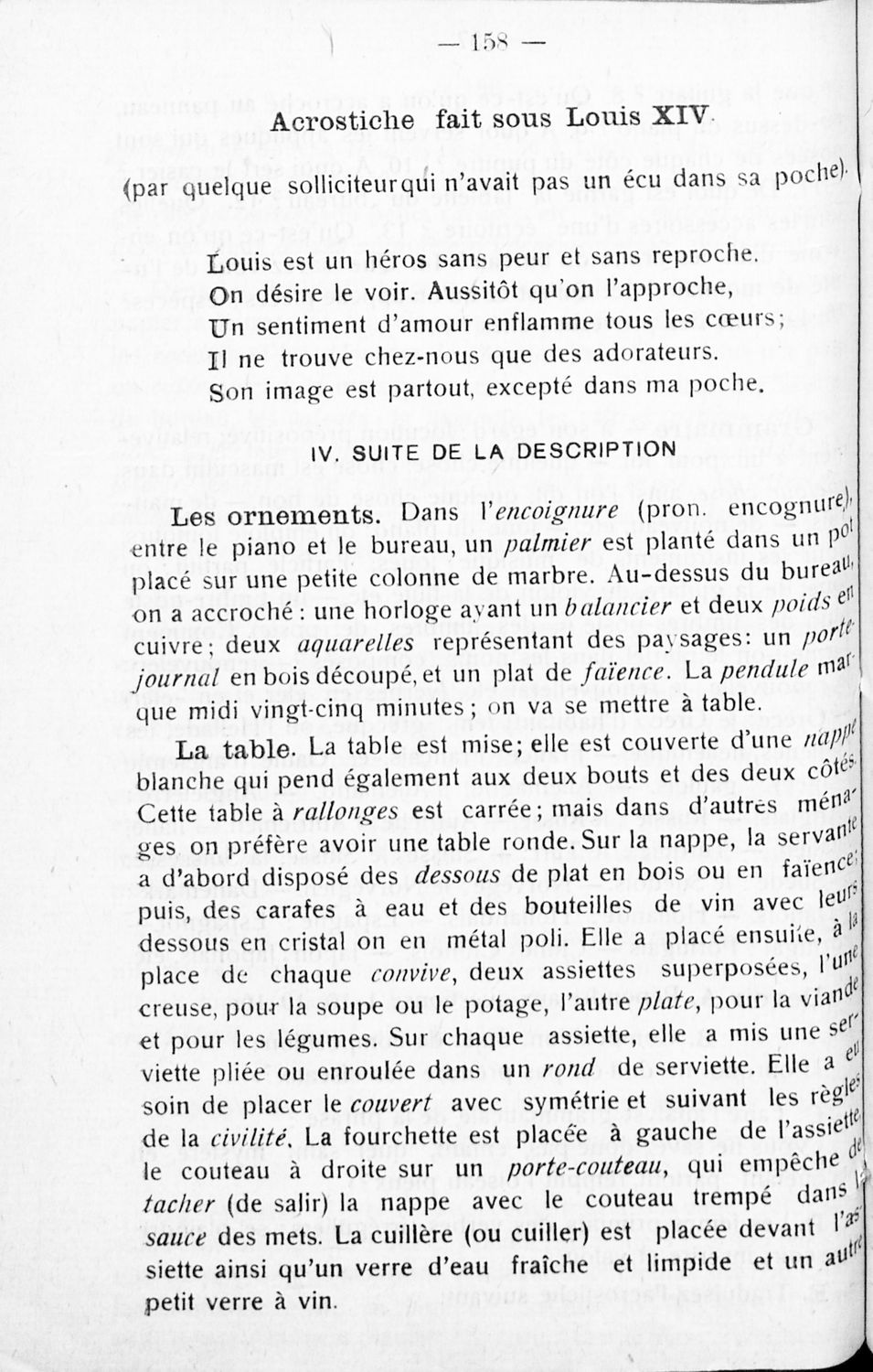 Σχολικό εγχειρίδιο Γαλλικών που περιλαμβάνει 54 κείμενα για τη διδασκαλία των γραμματικών και συντακτικών φαινομένων και της ορθογραφίας, λεξιλόγιο και παράρτημα με τους κανόνες συλλαβισμού.