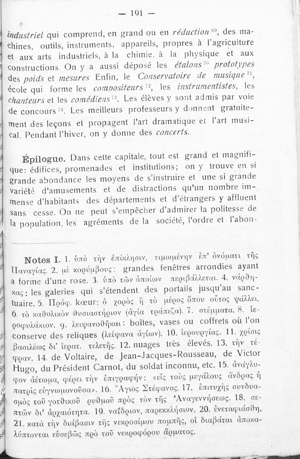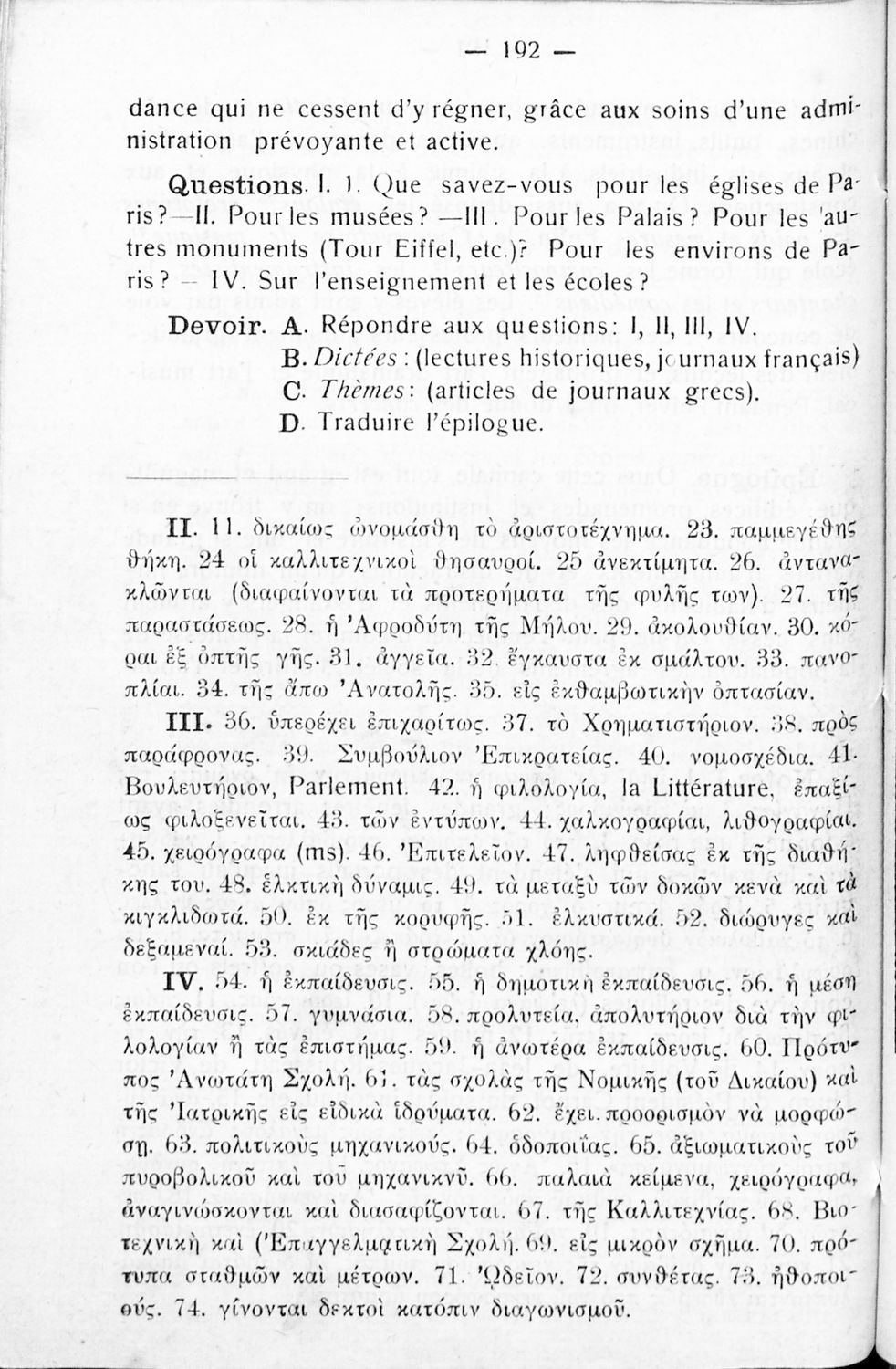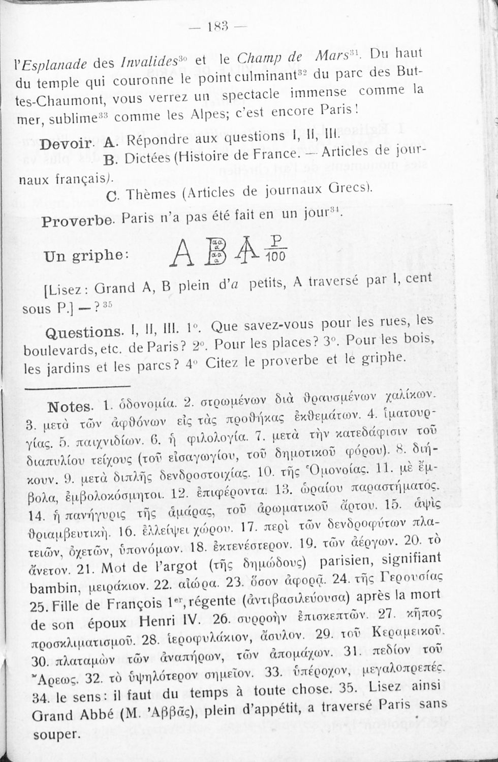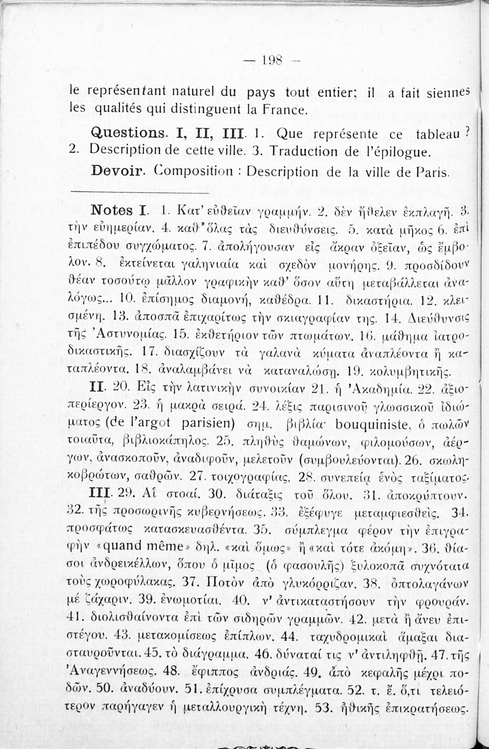 Σχολικό εγχειρίδιο Γαλλικών που περιλαμβάνει κείμενα, λεξιλόγιο και ασκήσεις. Ο συγγραφέας ήταν καθηγητής της Δημόσιας Εμπορικής Σχολής Αθηνών και του Αρσακείου.