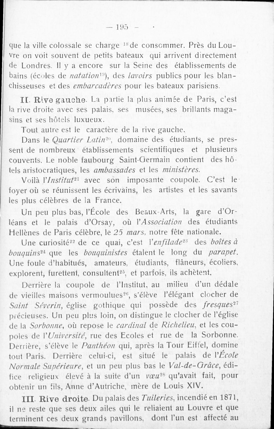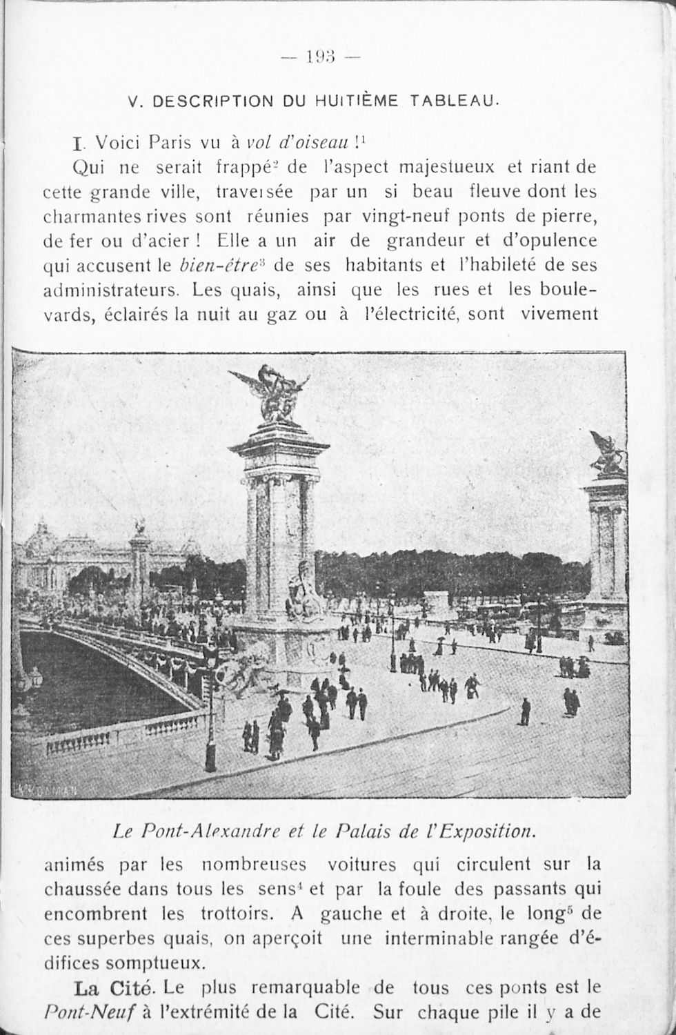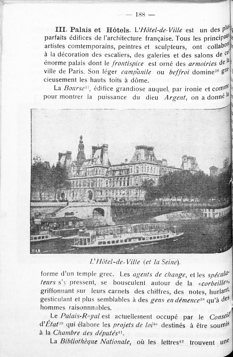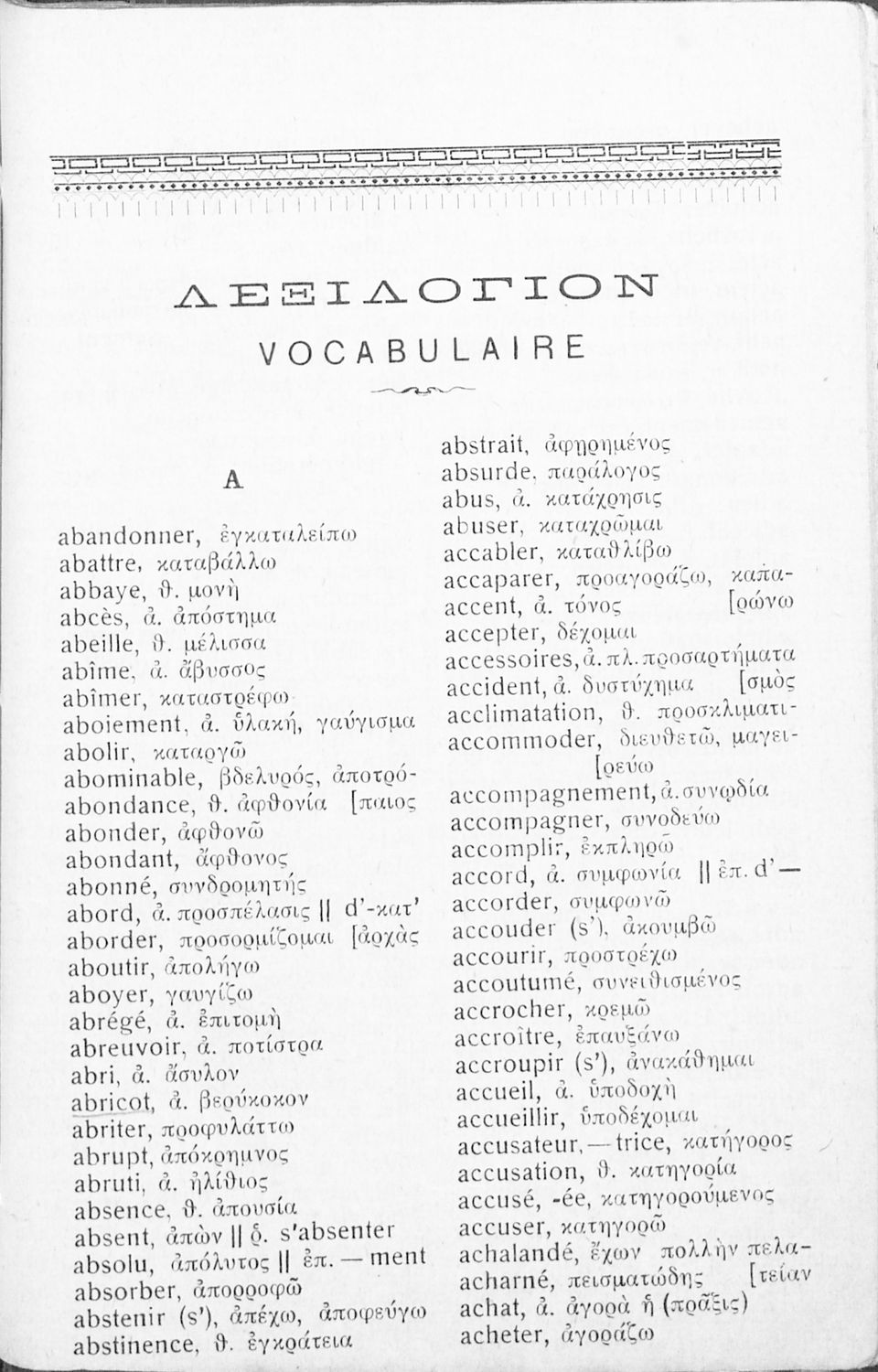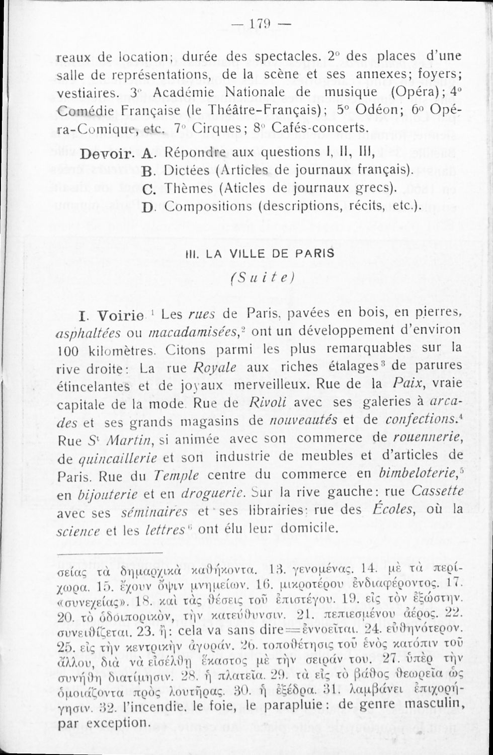 Σχολικό εγχειρίδιο Γαλλικών που περιλαμβάνει κείμενα, λεξιλόγιο και ασκήσεις. Ο συγγραφέας ήταν καθηγητής της Δημόσιας Εμπορικής Σχολής Αθηνών και του Αρσακείου.