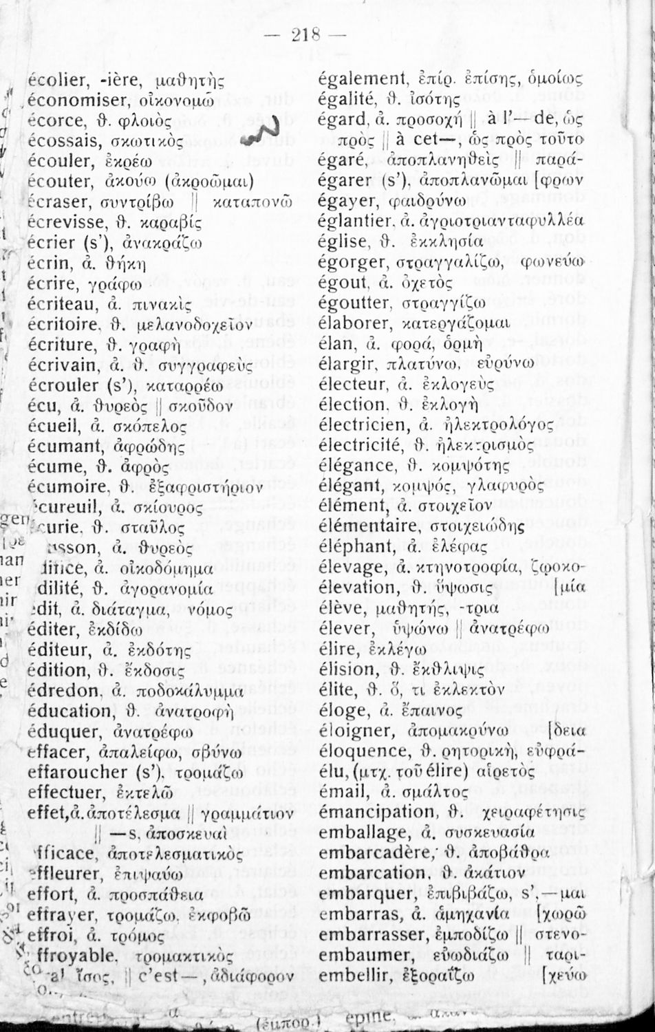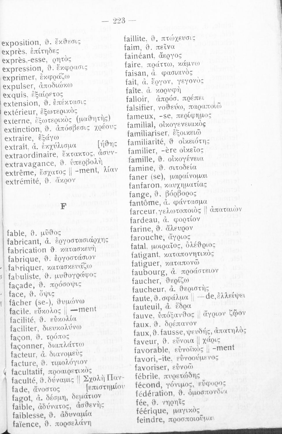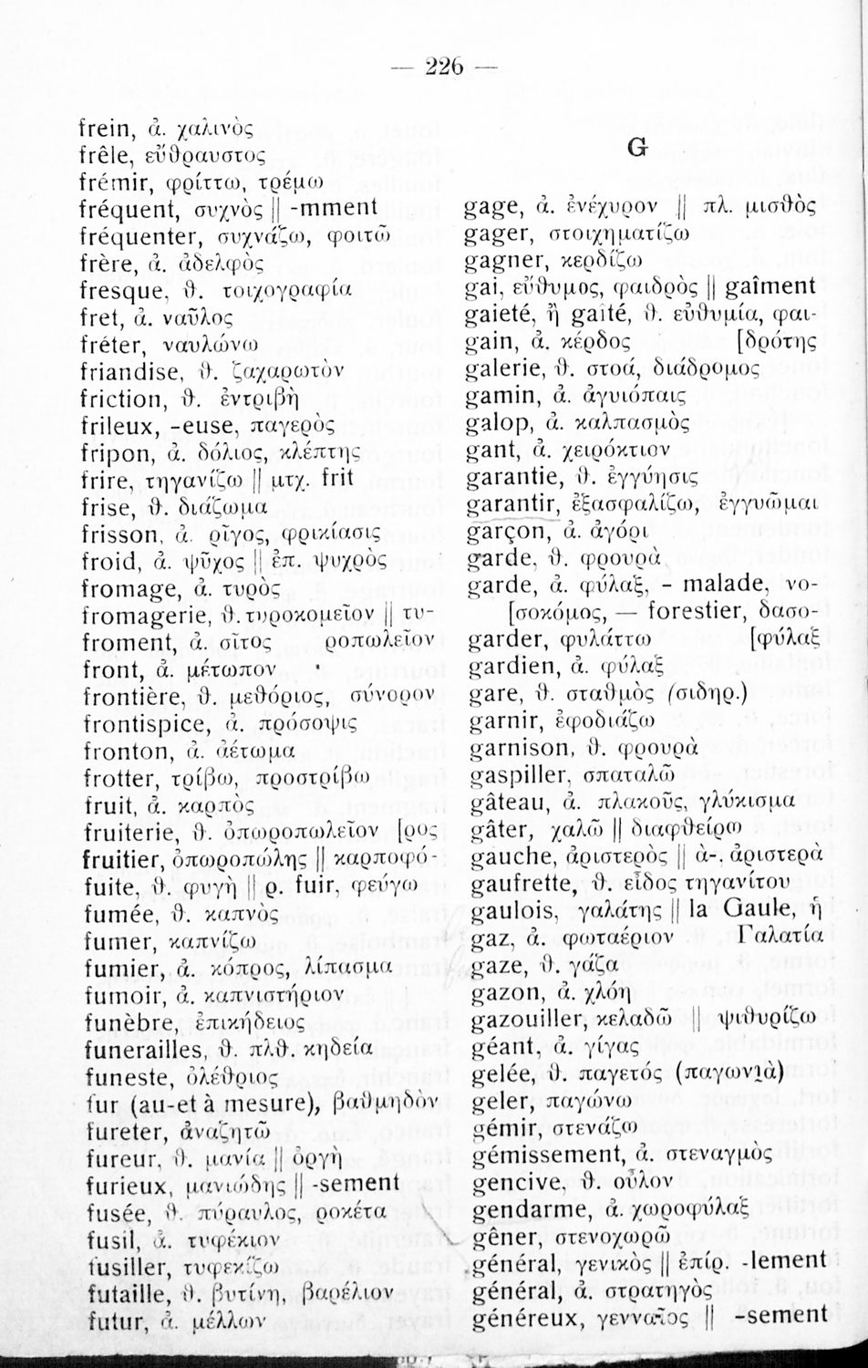 Σχολικό εγχειρίδιο Γαλλικών που περιλαμβάνει κείμενα, λεξιλόγιο και ασκήσεις. Ο συγγραφέας ήταν καθηγητής της Δημόσιας Εμπορικής Σχολής Αθηνών και του Αρσακείου.