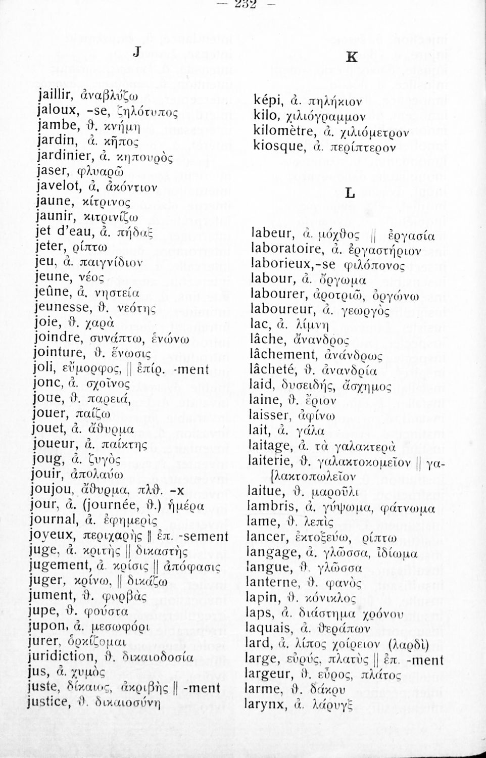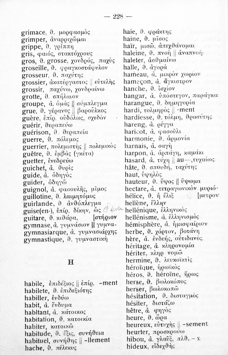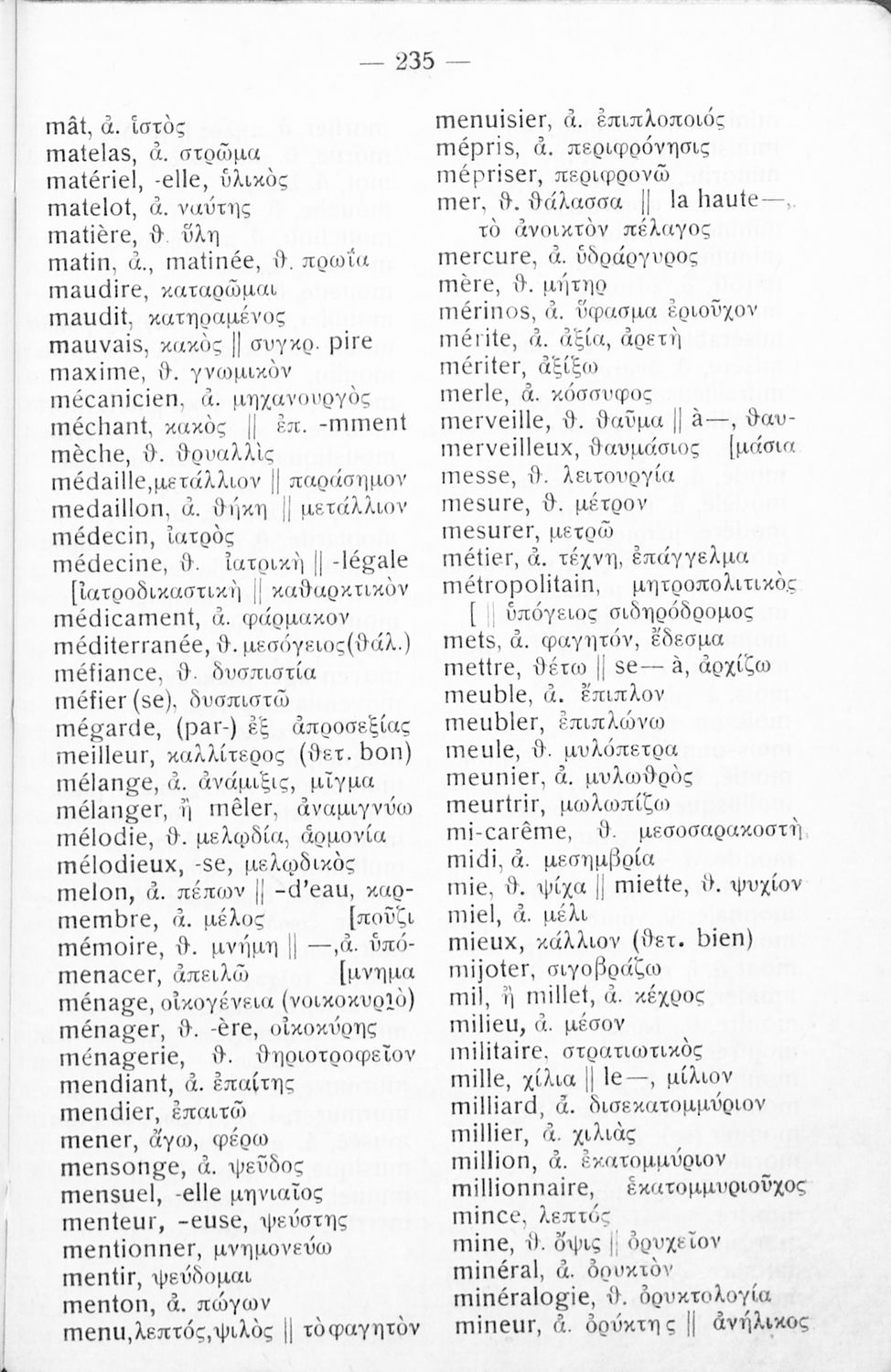 Σχολικό εγχειρίδιο Γαλλικών που περιλαμβάνει κείμενα, λεξιλόγιο και ασκήσεις. Ο συγγραφέας ήταν καθηγητής της Δημόσιας Εμπορικής Σχολής Αθηνών και του Αρσακείου.
