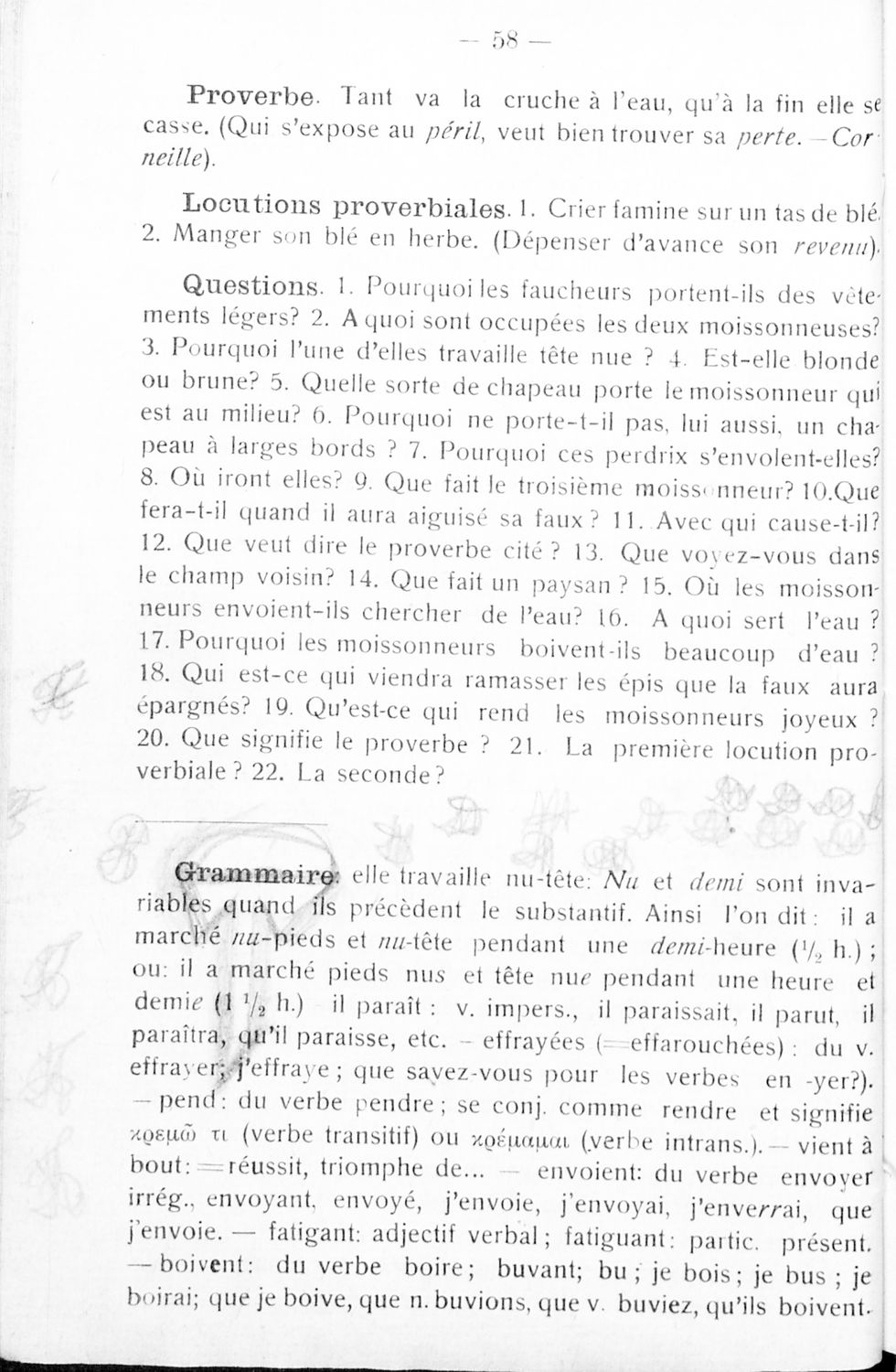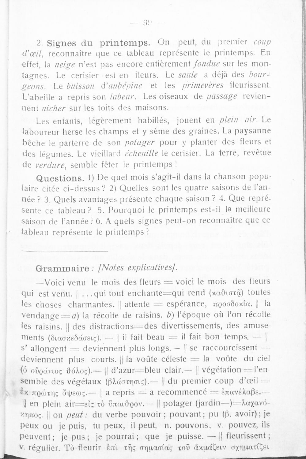 Σχολικό εγχειρίδιο Γαλλικών των Γυμνασίων, Αστικών Σχολείων θηλέων και Διδασκαλείων Δημοτικής Εκπαίδευσης. Κείμενα, ποιήματα, από εποχές και τον κοινωνικό και οικογενειακό βίο, τα οποία συνοδεύονται ασκήσεις ...
