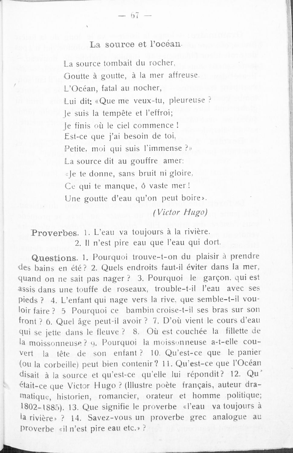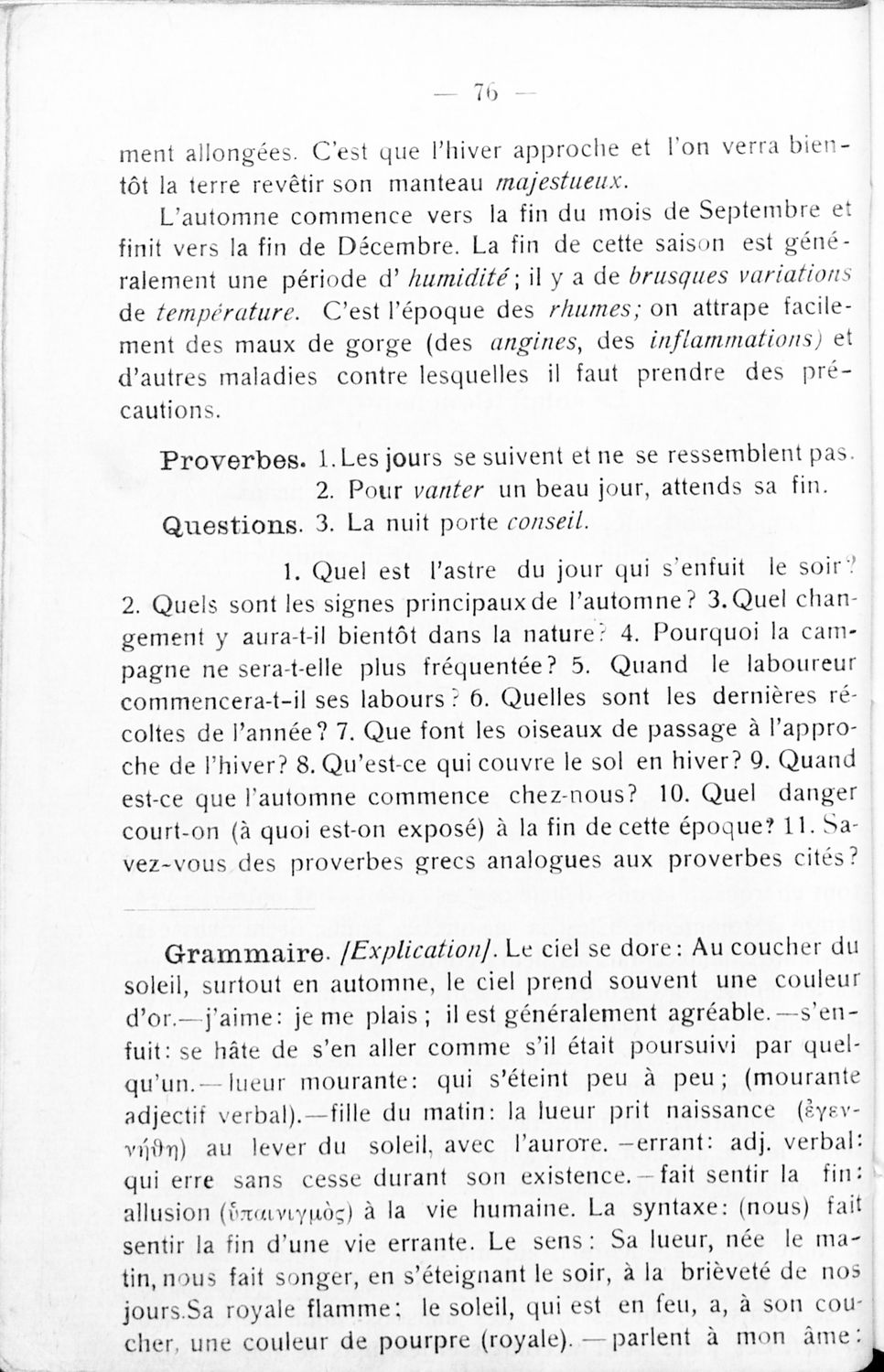 Σχολικό εγχειρίδιο Γαλλικών των Γυμνασίων, Αστικών Σχολείων θηλέων και Διδασκαλείων Δημοτικής Εκπαίδευσης. Κείμενα, ποιήματα, από εποχές και τον κοινωνικό και οικογενειακό βίο, τα οποία συνοδεύονται ασκήσεις ...