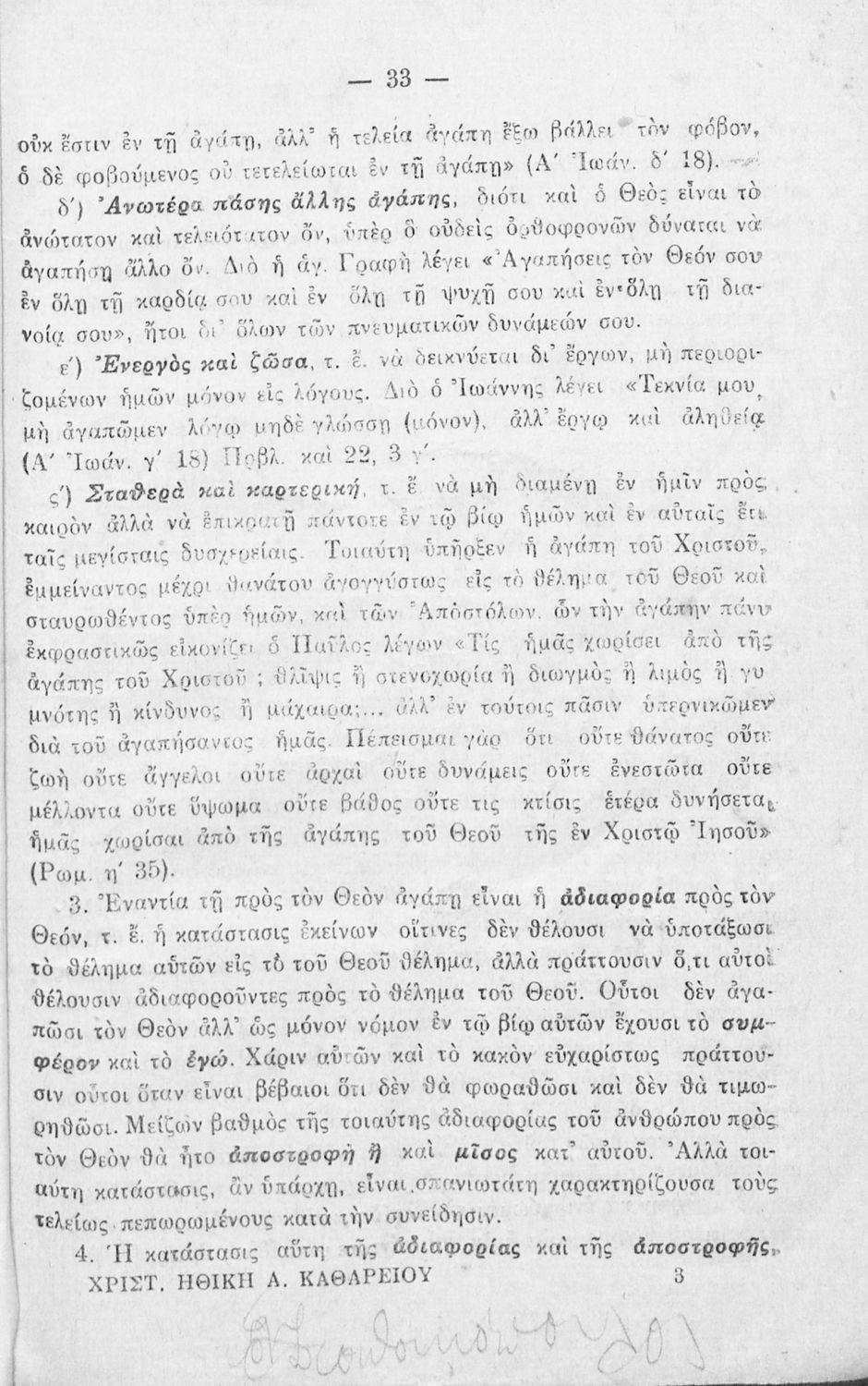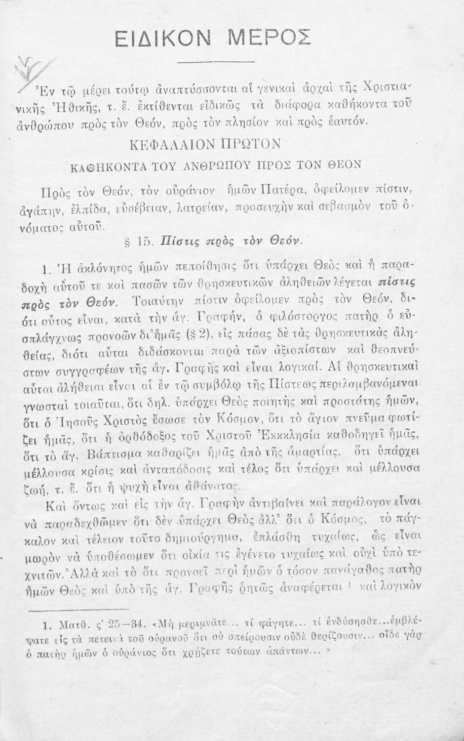 Σχολικό εγχειρίδιο Θρησκευτικών για τα Γυμνάσια, τα Διδασκαλεία και τις Εμπορικές Σχολές που εστιάζει στη χριστιανική ηθική και αναλύει τα καθήκοντα του ανθρώπου προς τον Θεό, τους άλλους ανθρώπους και τον εαυτό του.