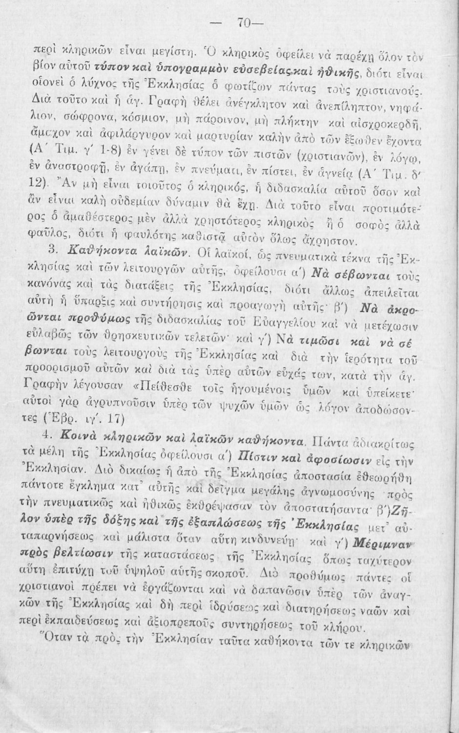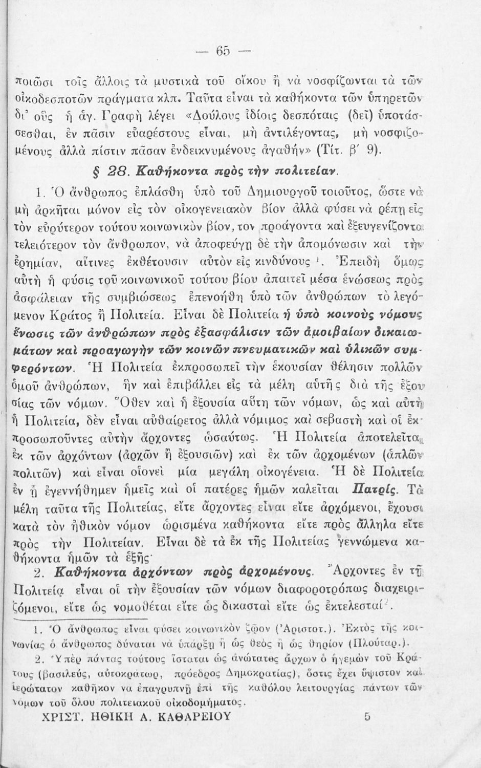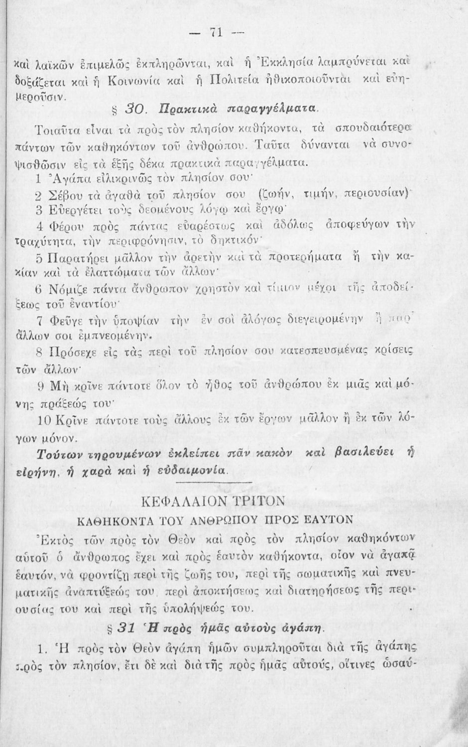 Σχολικό εγχειρίδιο Θρησκευτικών για τα Γυμνάσια, τα Διδασκαλεία και τις Εμπορικές Σχολές που εστιάζει στη χριστιανική ηθική και αναλύει τα καθήκοντα του ανθρώπου προς τον Θεό, τους άλλους ανθρώπους και τον εαυτό του.
