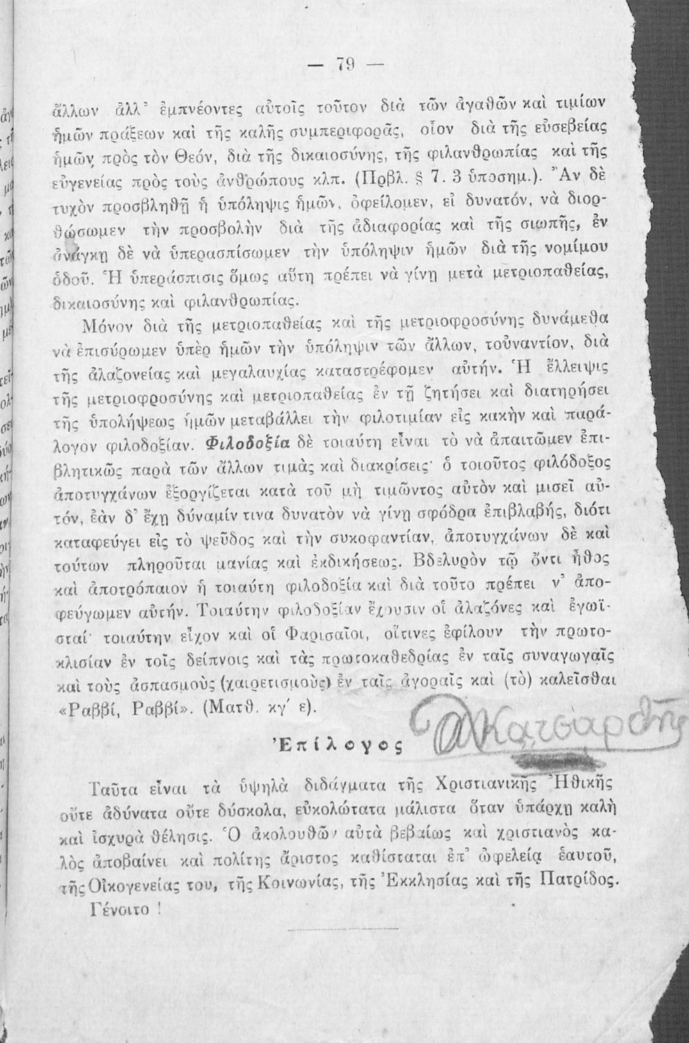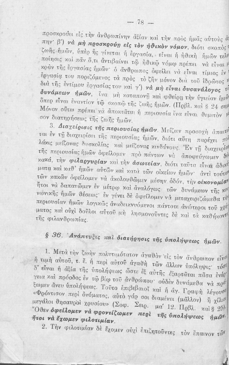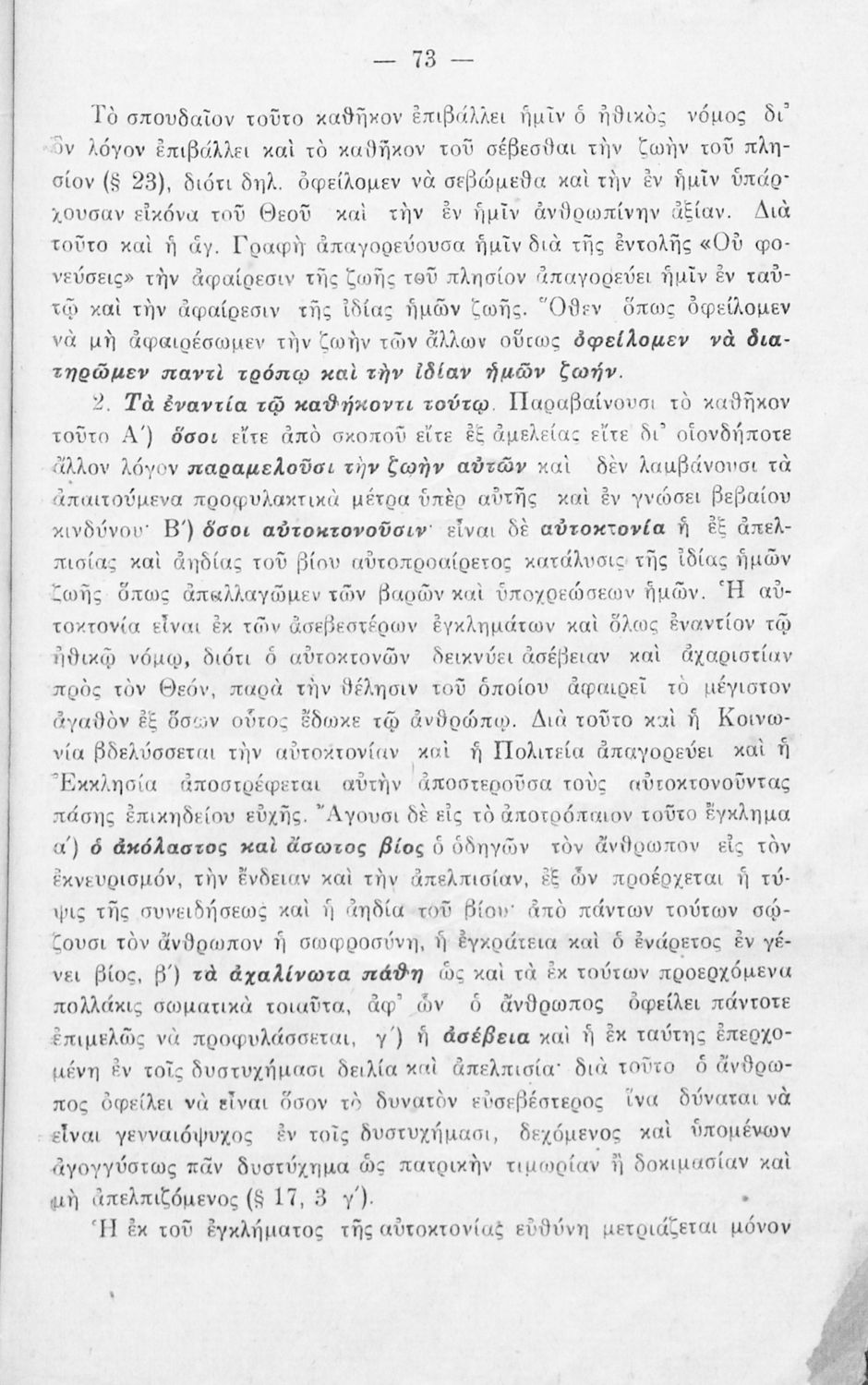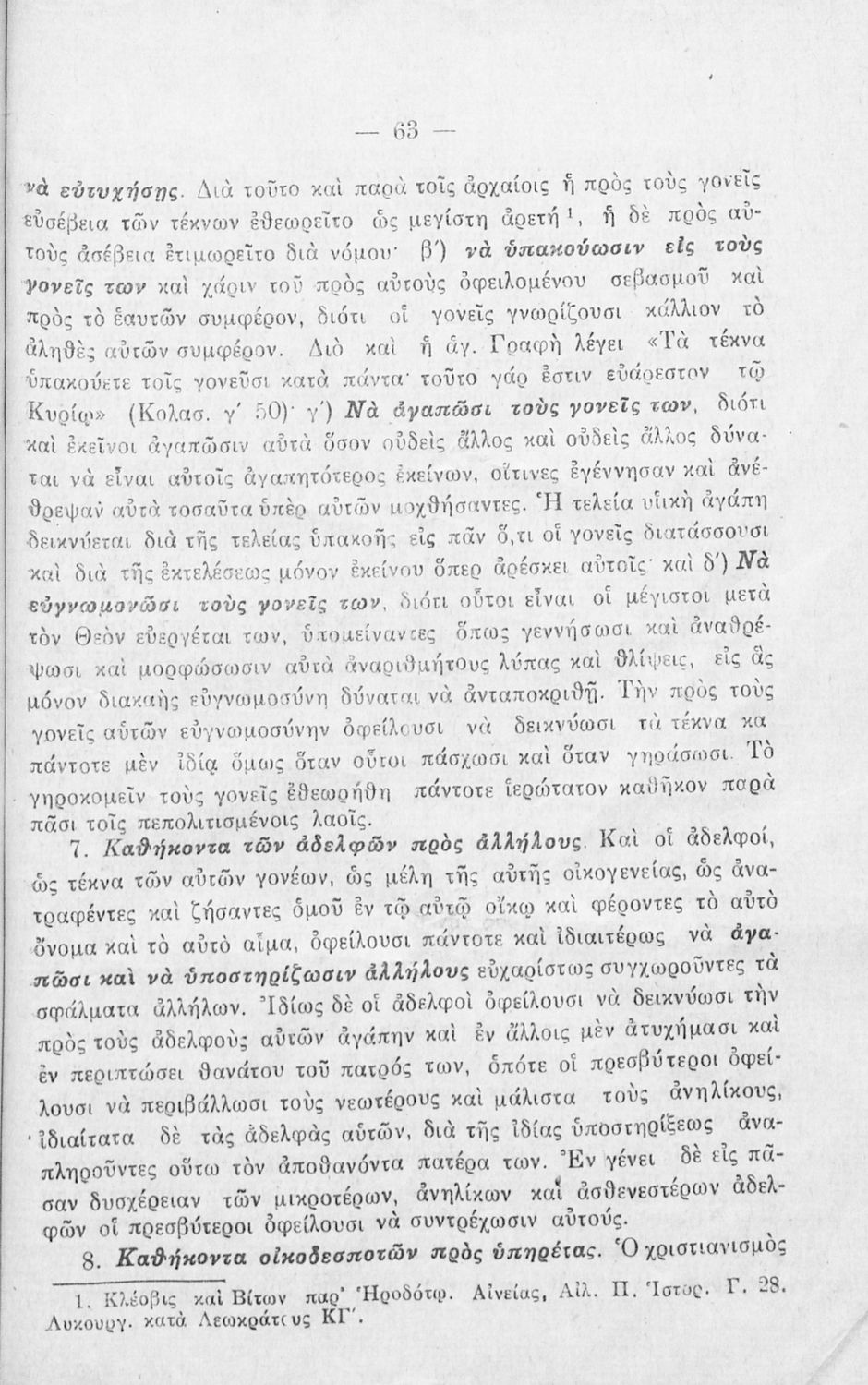 Σχολικό εγχειρίδιο Θρησκευτικών για τα Γυμνάσια, τα Διδασκαλεία και τις Εμπορικές Σχολές που εστιάζει στη χριστιανική ηθική και αναλύει τα καθήκοντα του ανθρώπου προς τον Θεό, τους άλλους ανθρώπους και τον εαυτό του.
