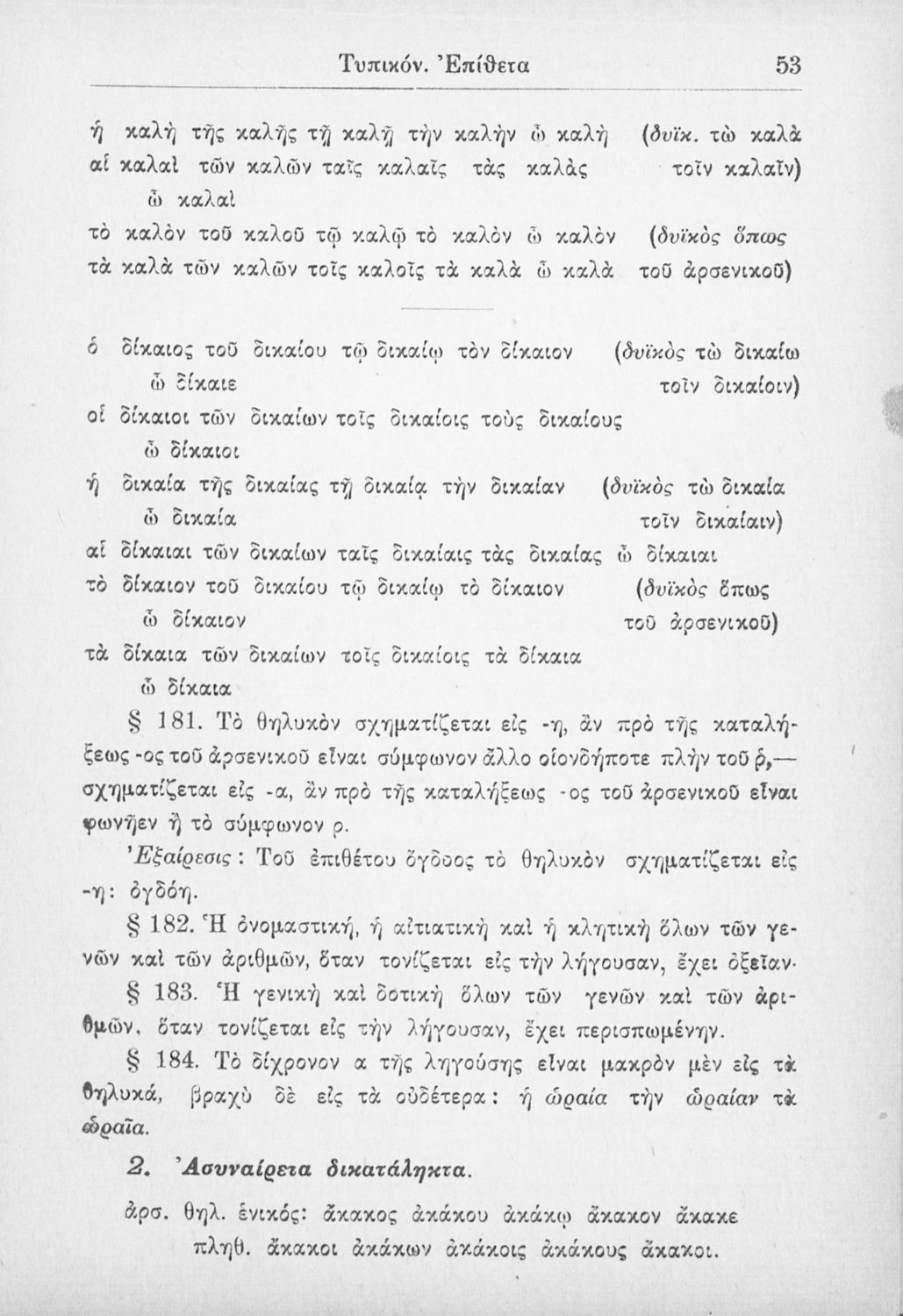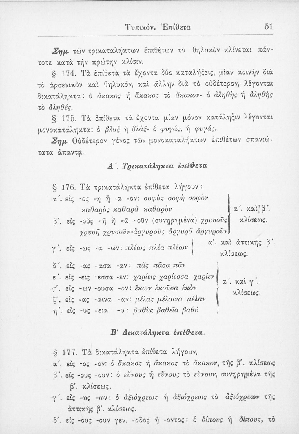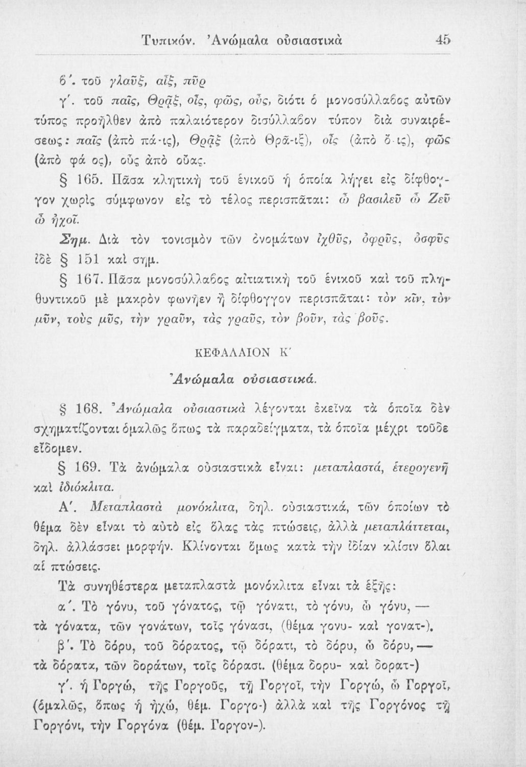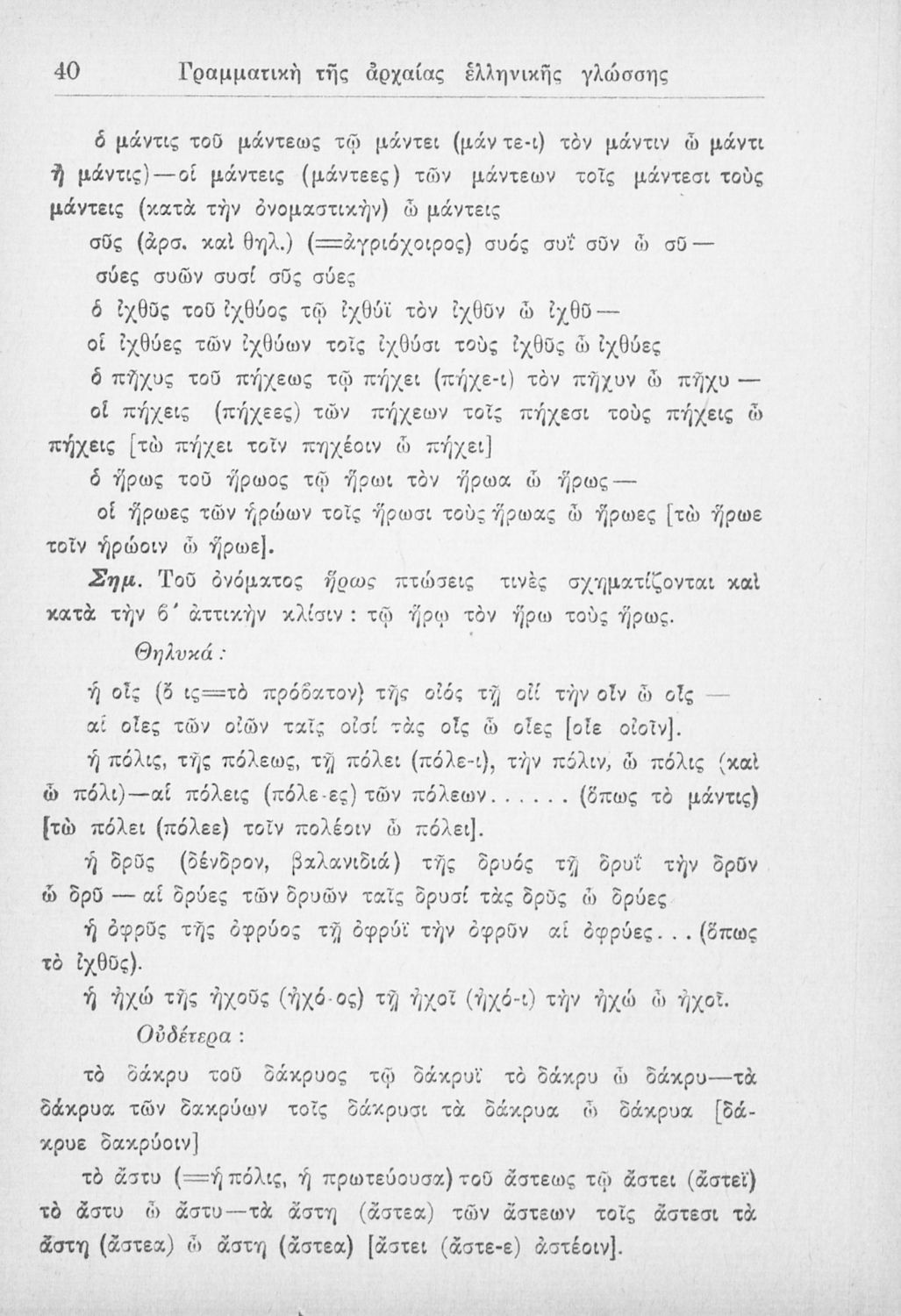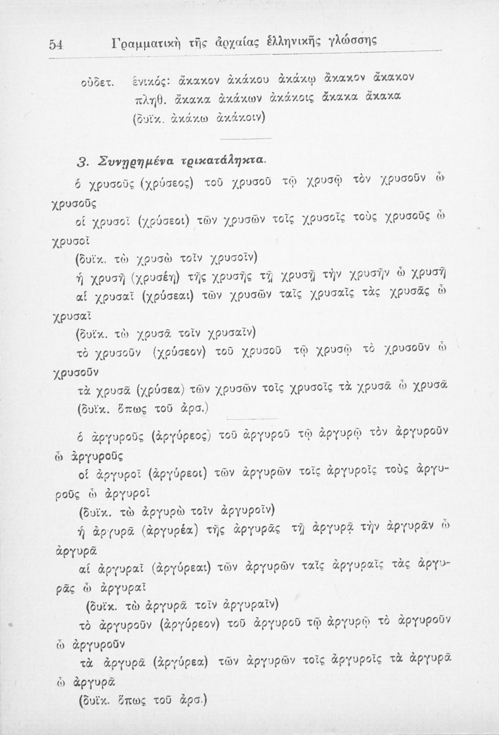 Σχολικό εγχειρίδιο Αρχαίων Ελληνικών Γυμνασίου που περιλαμβάνει τους κανόνες γραμματικής και είναι χωρισμένη στο φθογγολογικό, το τυπολογικό και ετυμολογικό μέρος.