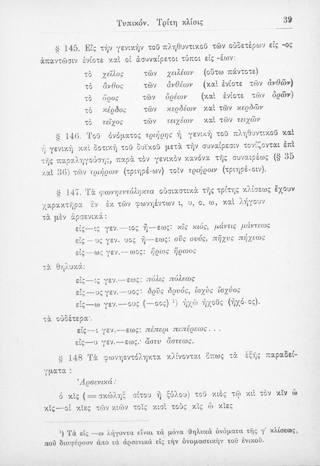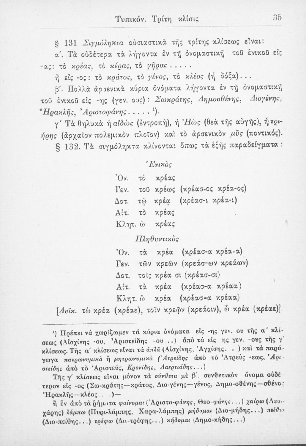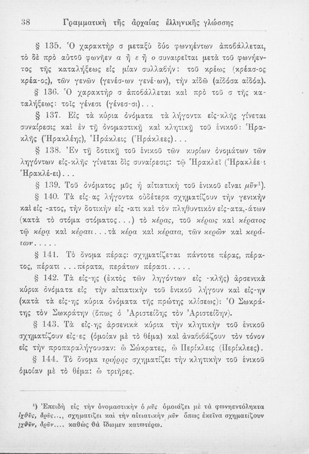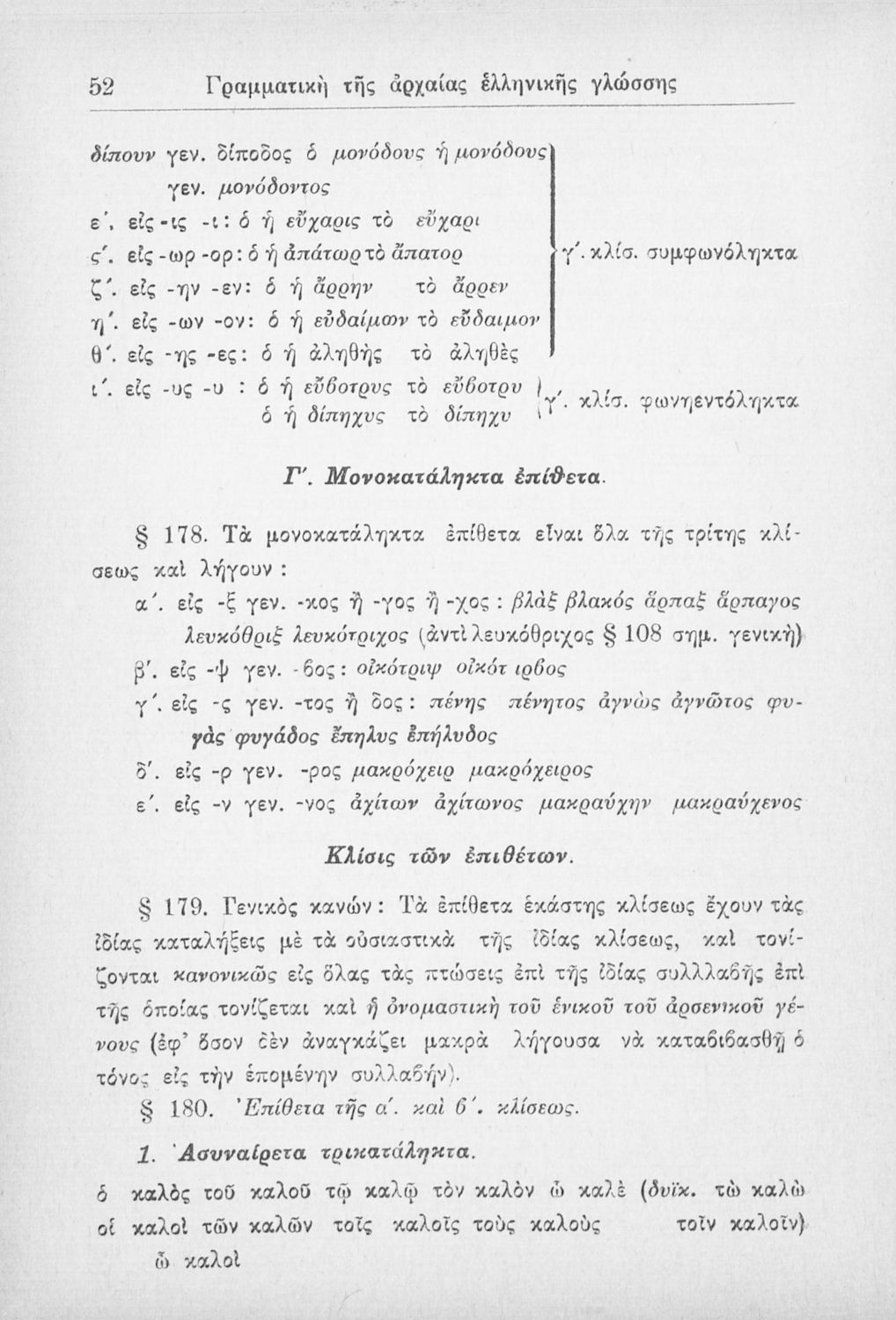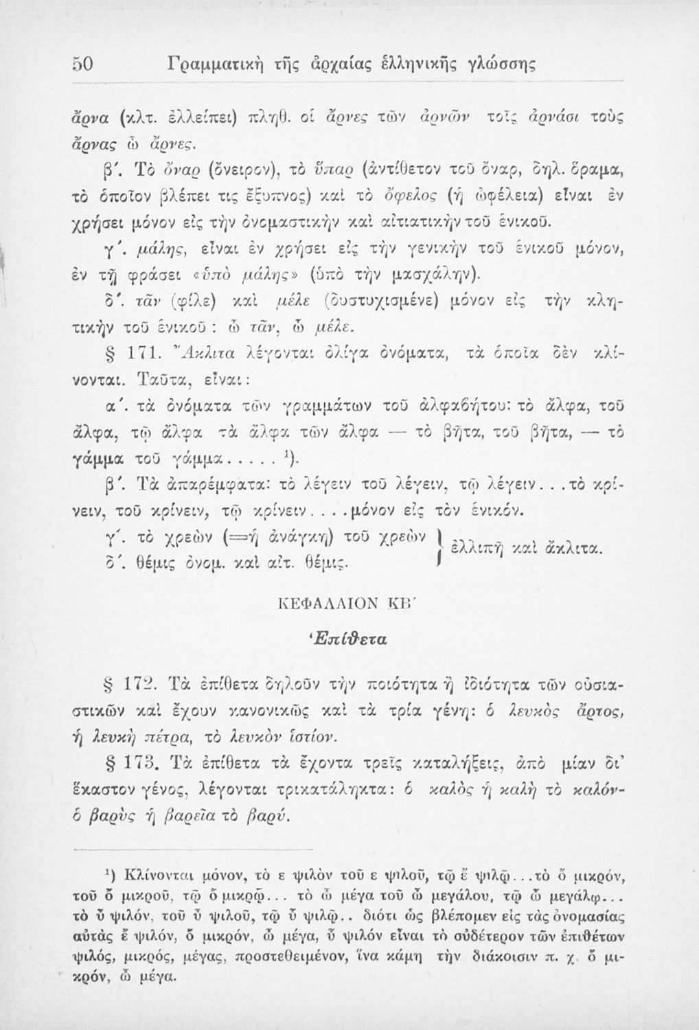 Σχολικό εγχειρίδιο Αρχαίων Ελληνικών Γυμνασίου που περιλαμβάνει τους κανόνες γραμματικής και είναι χωρισμένη στο φθογγολογικό, το τυπολογικό και ετυμολογικό μέρος.