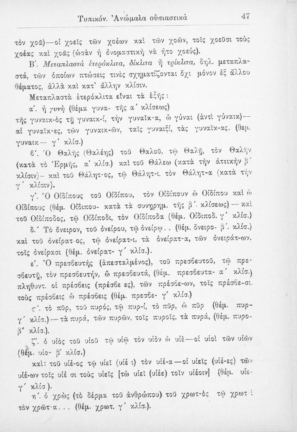 Σχετιζόμενοι όροι:  κλίση, ρήματα, φθόγγοι, μετοχές