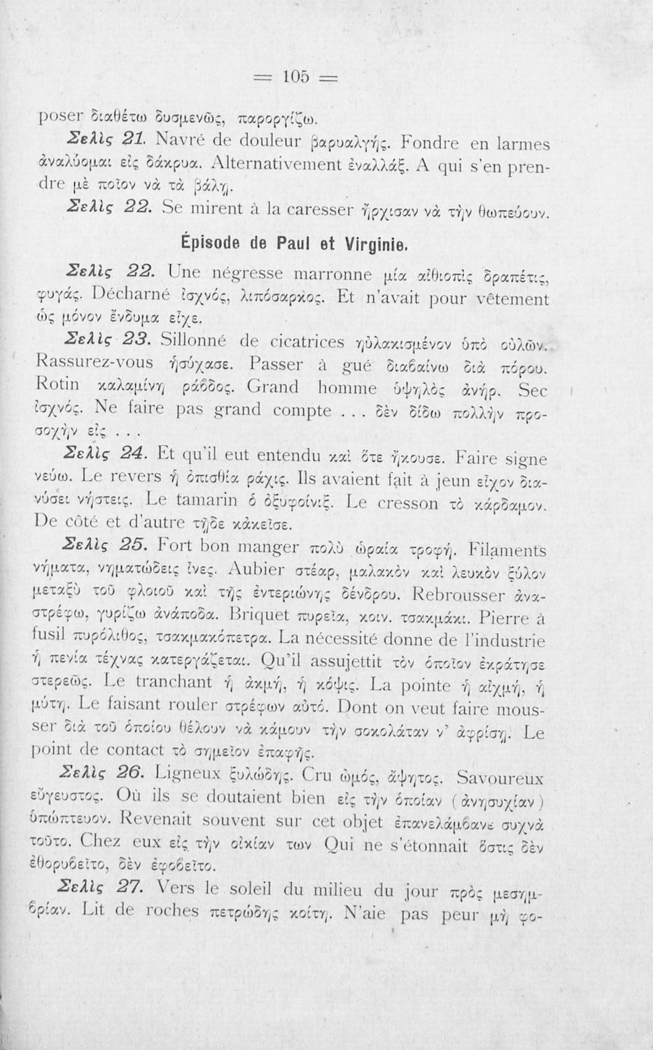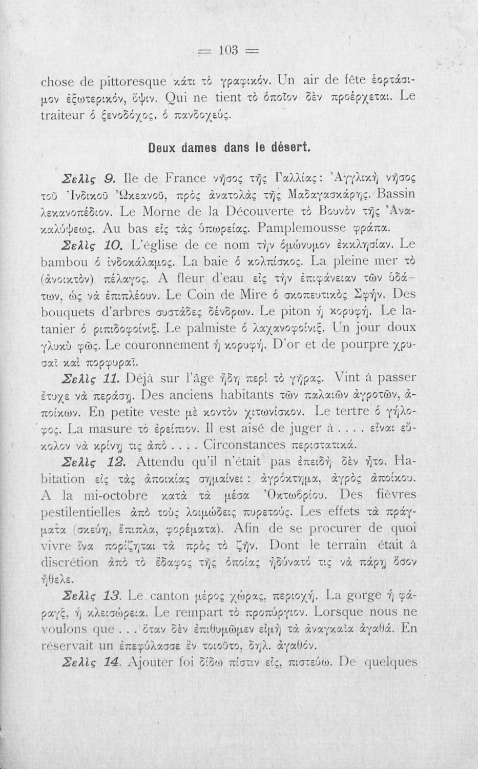 Σχολικό εγχειρίδιο Γαλλικών για τις Γ΄ Γυμνάσιου, Β΄ Διδασκαλείου Θηλέων και Α' Διδασκαλείου Αρρένων που περιέχει αποσπάσματα έργων Γάλλων συγγραφέων, και γλωσσικά και ερμηνευτικά σχόλια.