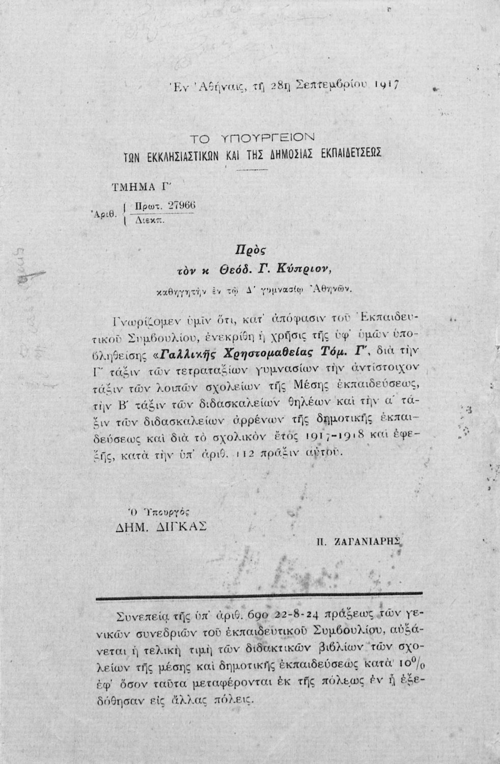 Υπουργική απόφαση / Σύμβαση: 27966/28-9-1917