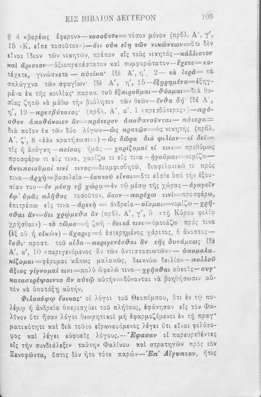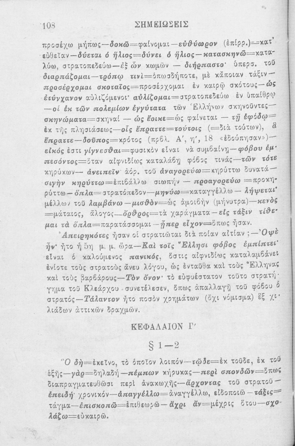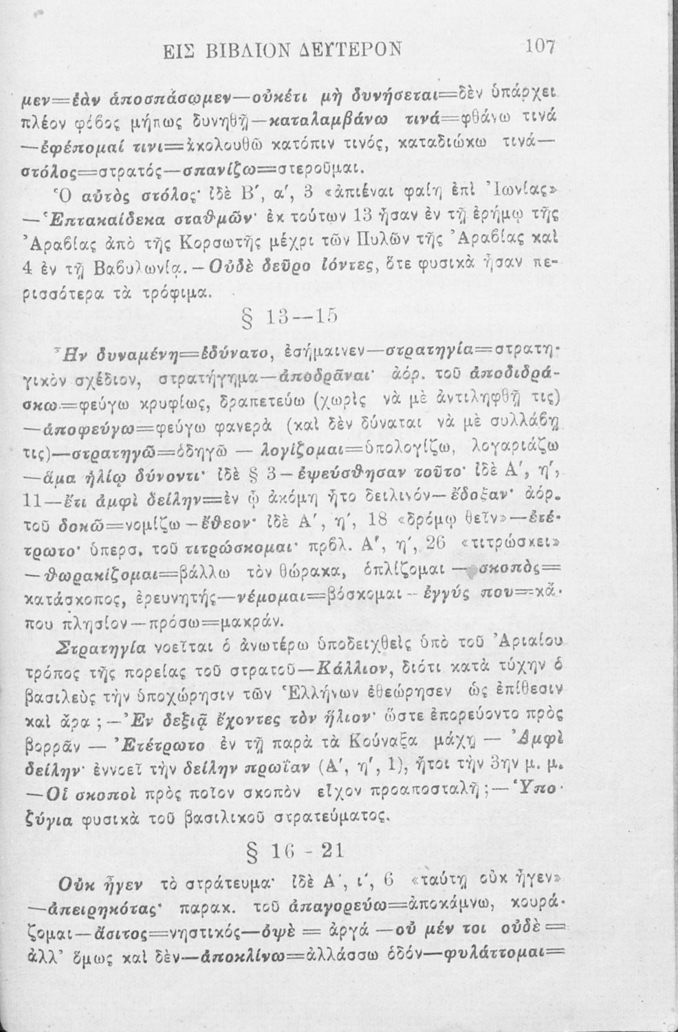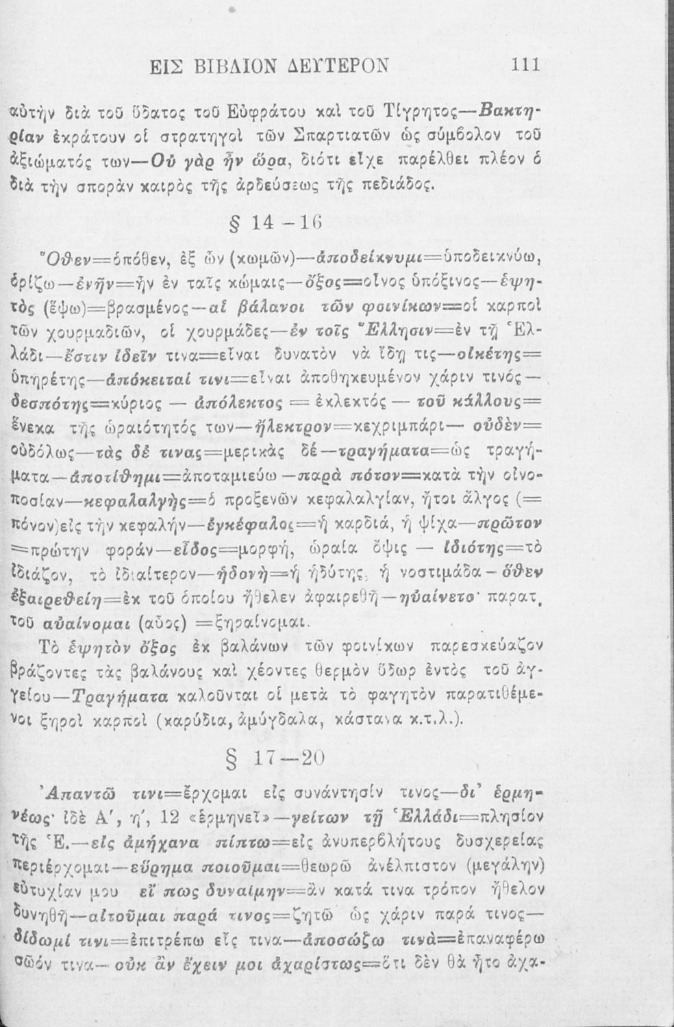 Βαθμίδα εκπαίδευσης: Δευτεροβάθμια Μάθημα: Αρχαία Ελληνικά Γλώσσα: Καθαρεύουσα Παρουσίαση περιεχομένου: Σχολικό εγχειρίδιο Αρχαίων Ελληνικών που περιλαμβάνει αποσπάσματα από το έργο του Ξενοφώντα Κύρου Ανάβασις, εισαγωγικά σχόλια για τη ζωή και το έργο του, ερμηνευτικές και γραμματικές παρατηρήσεις, λεξικολογικά σχόλια και πίνακα κυρίων ονομάτων. |