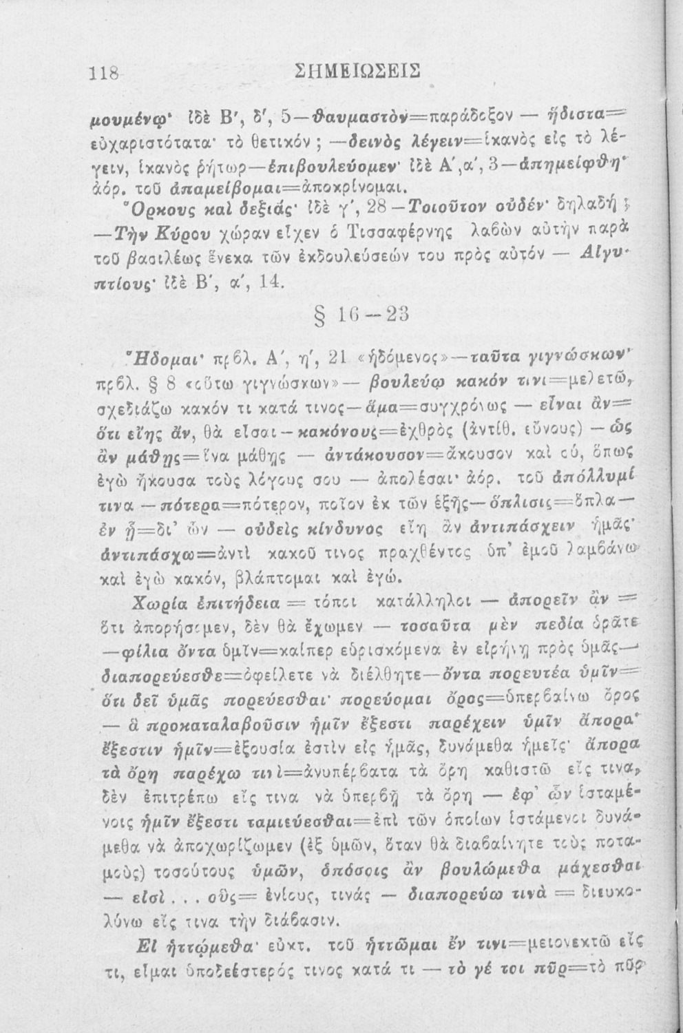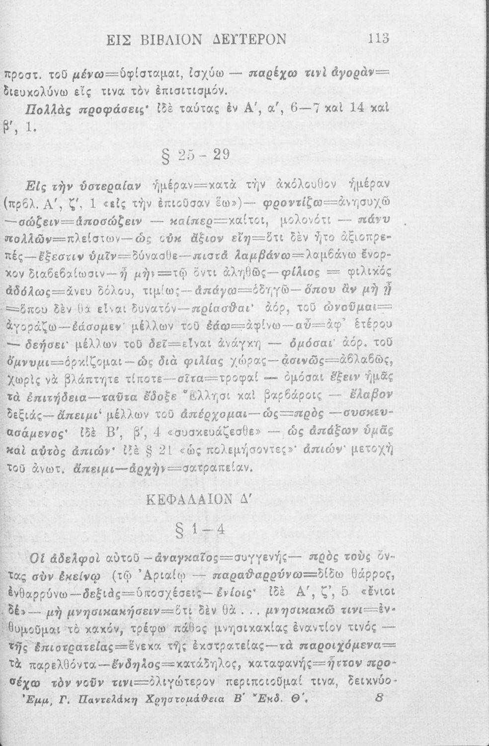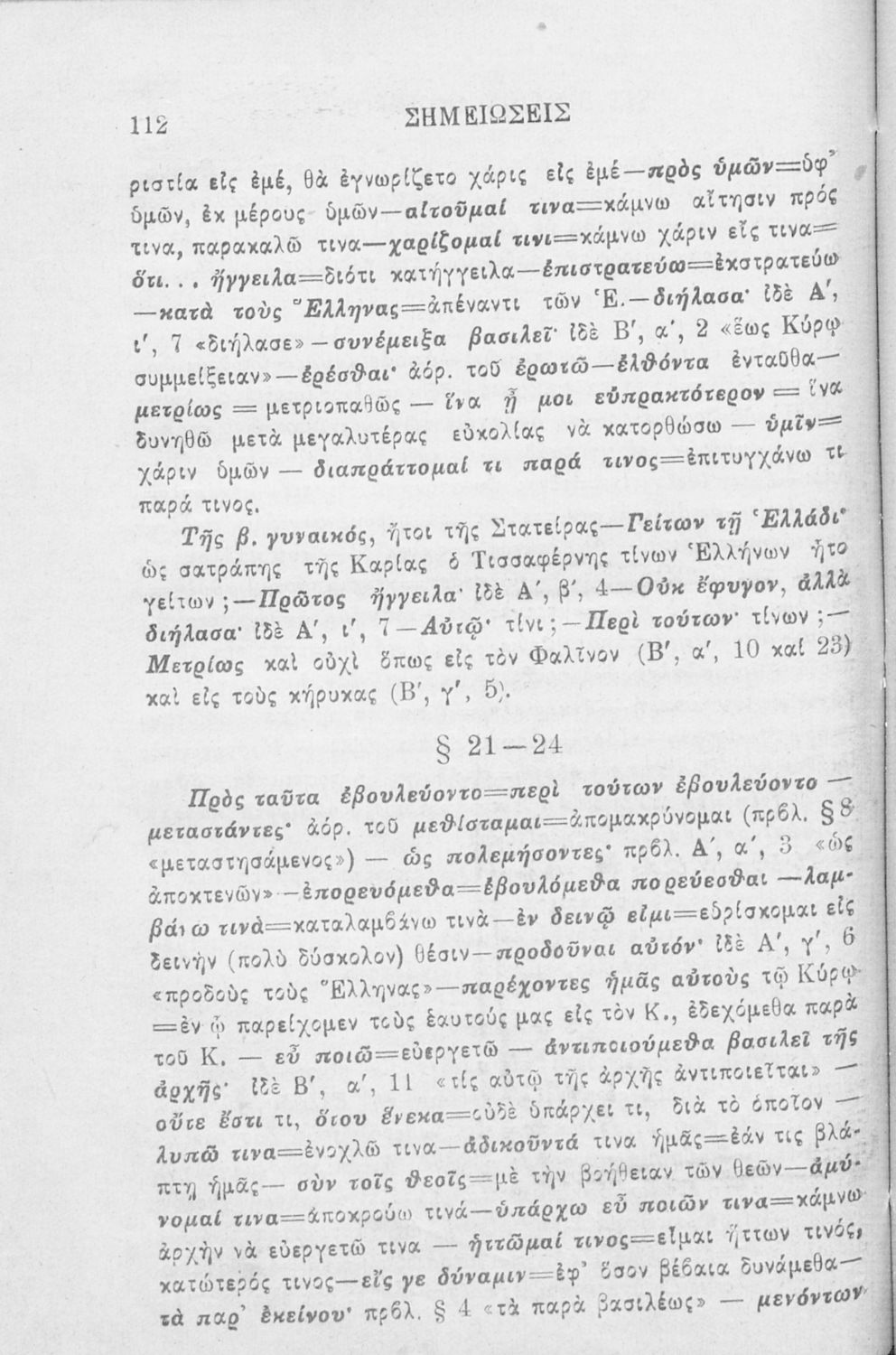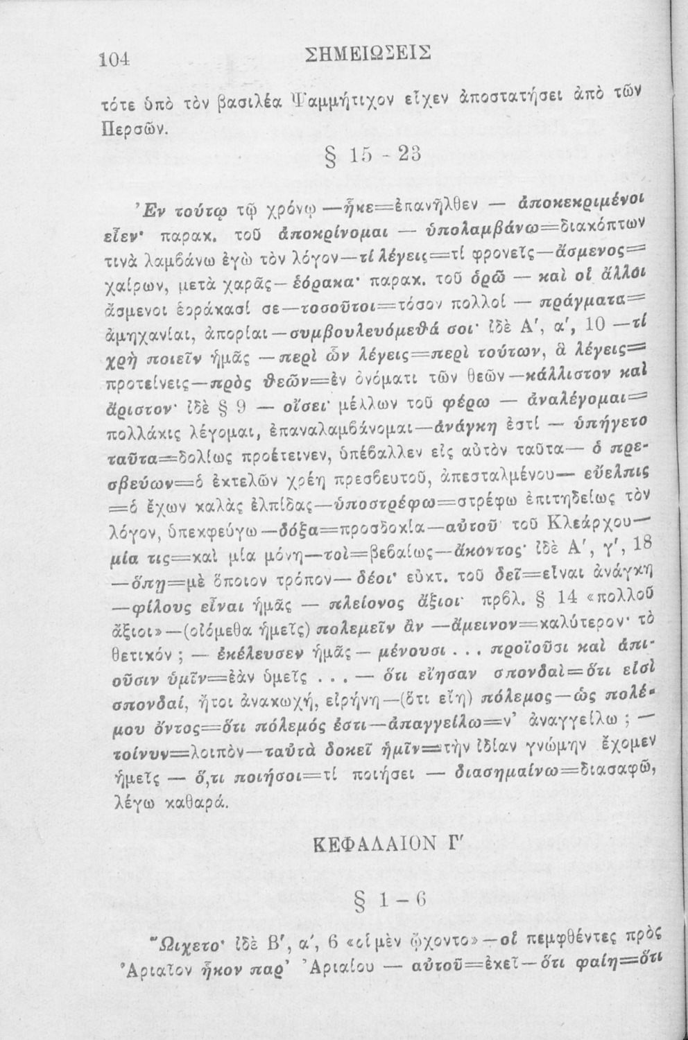 Βαθμίδα εκπαίδευσης: Δευτεροβάθμια Μάθημα: Αρχαία Ελληνικά Γλώσσα: Καθαρεύουσα Παρουσίαση περιεχομένου: Σχολικό εγχειρίδιο Αρχαίων Ελληνικών που περιλαμβάνει αποσπάσματα από το έργο του Ξενοφώντα Κύρου Ανάβασις, εισαγωγικά σχόλια για τη ζωή και το έργο του, ερμηνευτικές και γραμματικές παρατηρήσεις, λεξικολογικά σχόλια και πίνακα κυρίων ονομάτων. |
