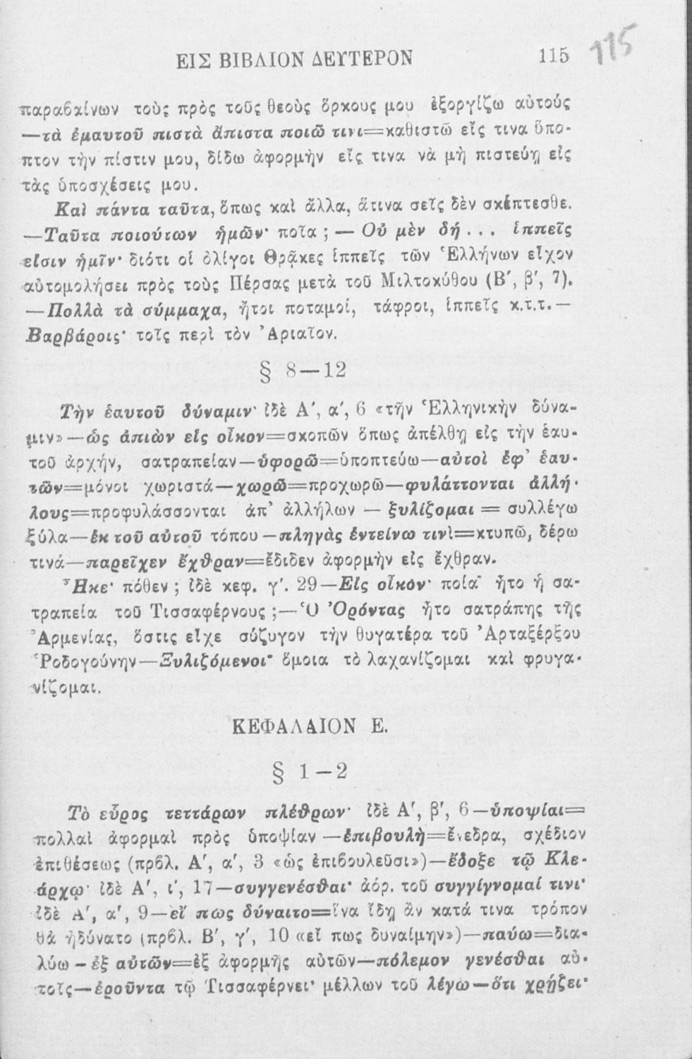520 ## _aΣχολικό εγχειρίδιο Αρχαίων Ελληνικών που περιλαμβάνει αποσπάσματα από το έργο του Ξενοφώντα Κύρου Ανάβασις, εισαγωγικά σχόλια για τη ζωή και το έργο του, ερμηνευτικές και γραμματικές παρατηρήσεις, λεξικολογικά σχόλια και πίνακα κυρίων ονομάτων.