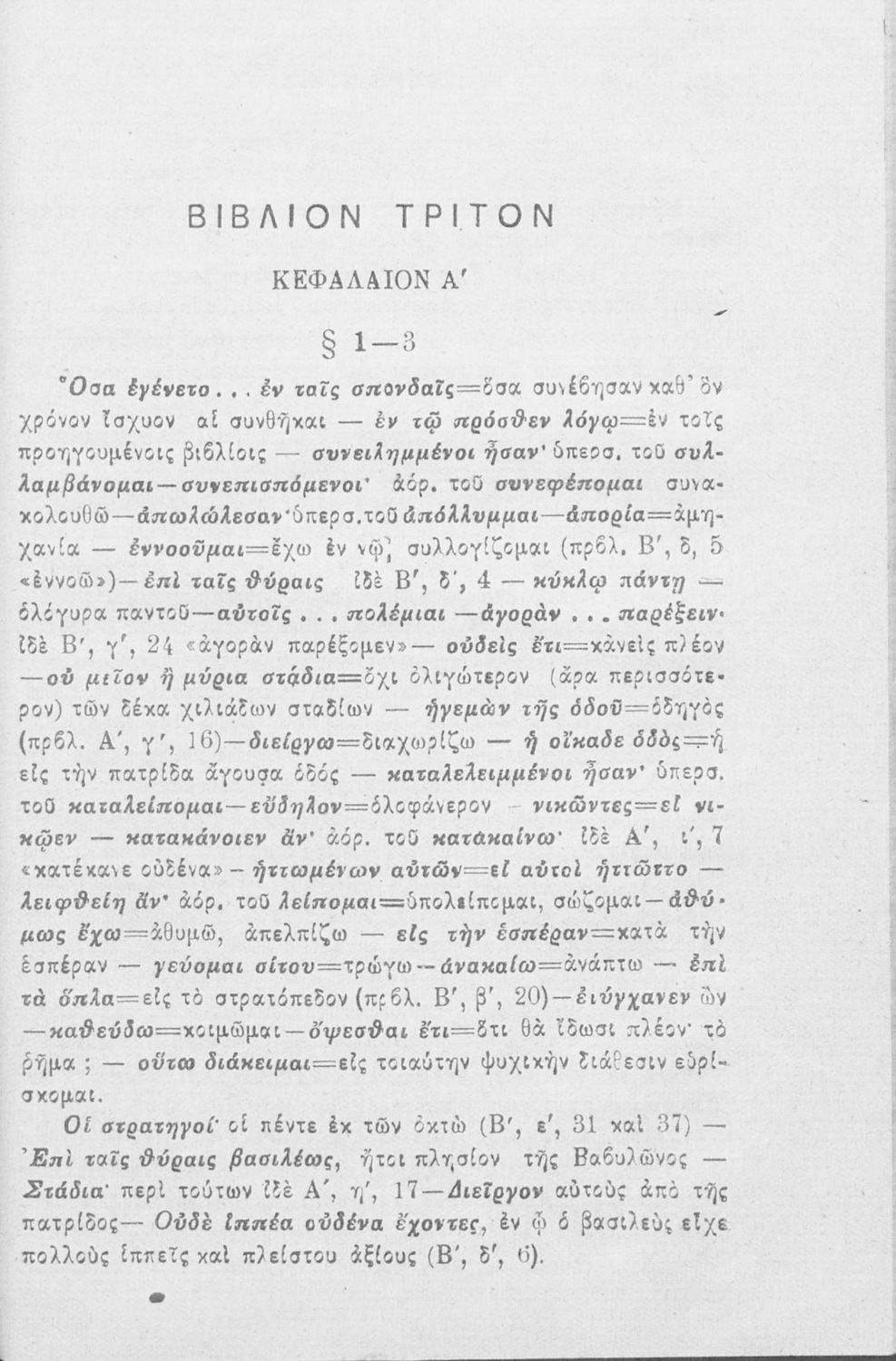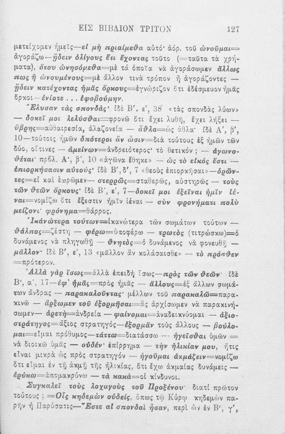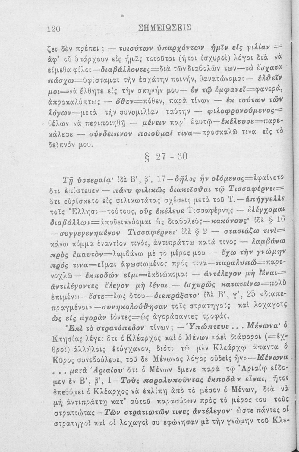 Βαθμίδα εκπαίδευσης: Δευτεροβάθμια Μάθημα: Αρχαία Ελληνικά Γλώσσα: Καθαρεύουσα Παρουσίαση περιεχομένου: Σχολικό εγχειρίδιο Αρχαίων Ελληνικών που περιλαμβάνει αποσπάσματα από το έργο του Ξενοφώντα Κύρου Ανάβασις, εισαγωγικά σχόλια για τη ζωή και το έργο του, ερμηνευτικές και γραμματικές παρατηρήσεις, λεξικολογικά σχόλια και πίνακα κυρίων ονομάτων. |