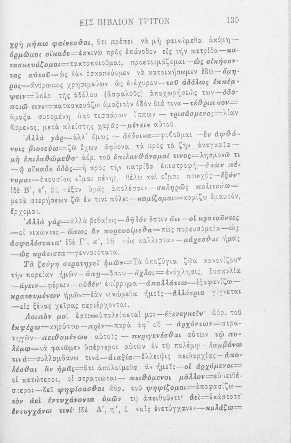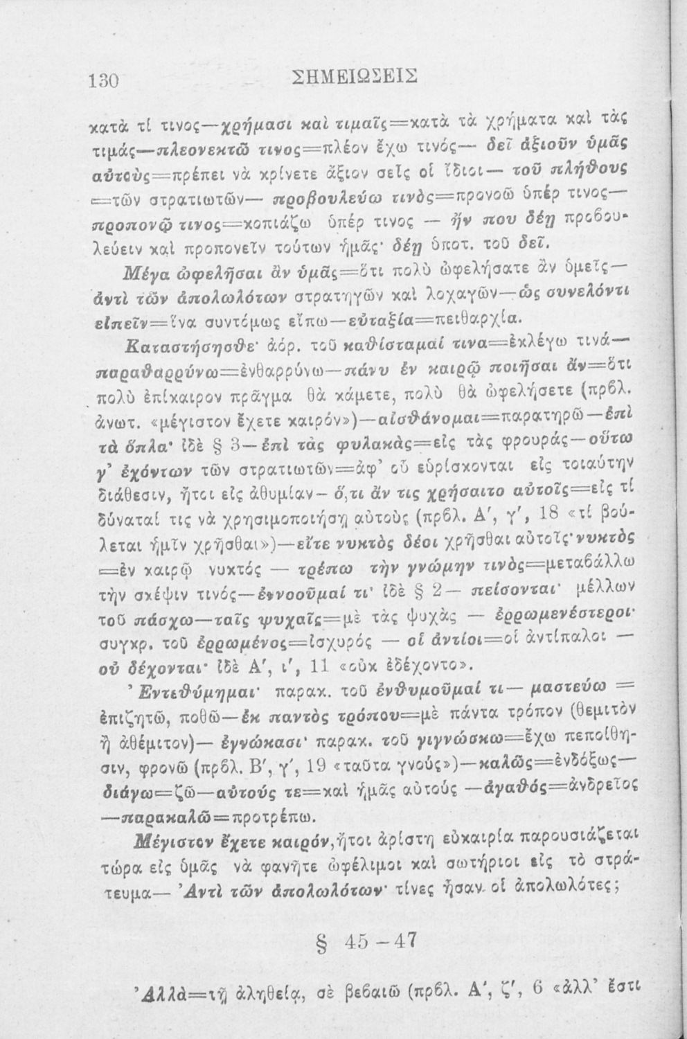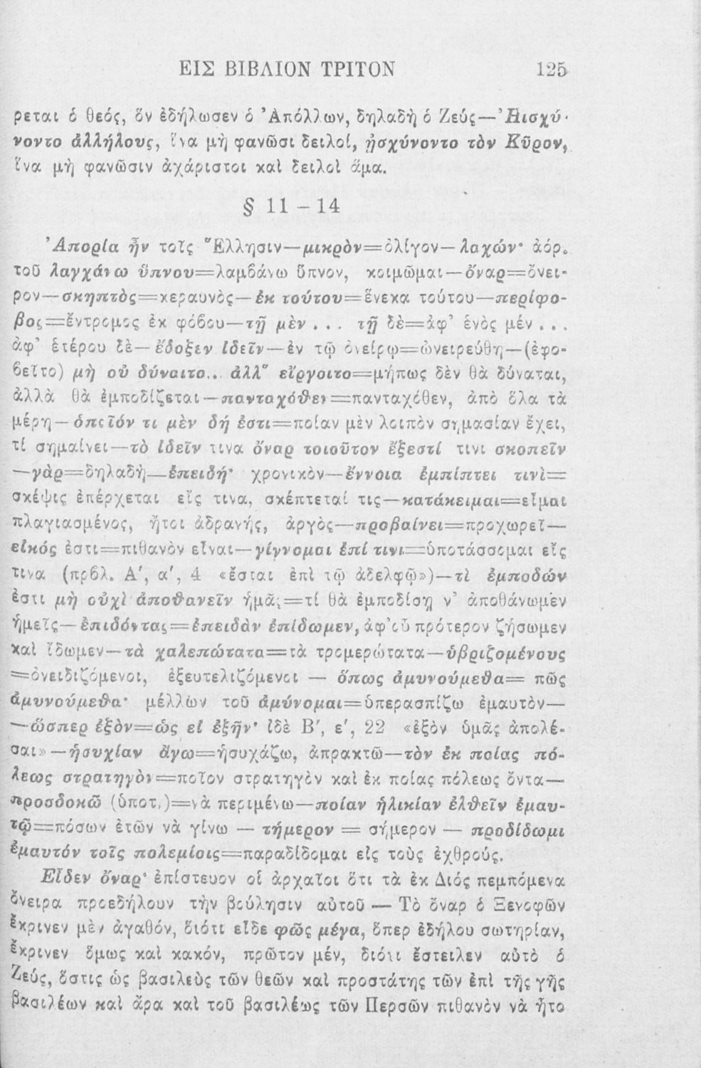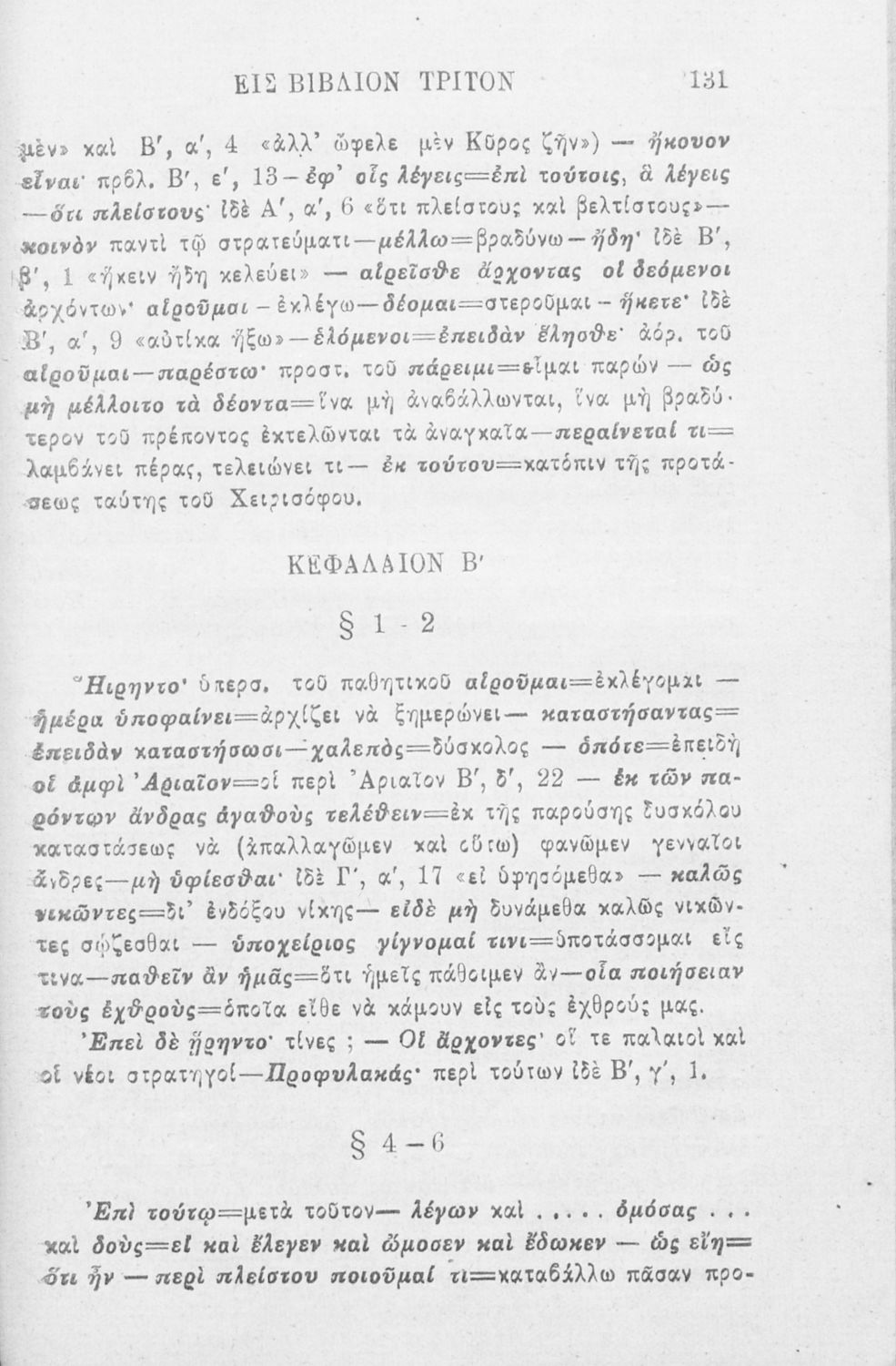Βαθμίδα εκπαίδευσης: Δευτεροβάθμια Μάθημα: Αρχαία Ελληνικά Γλώσσα: Καθαρεύουσα Παρουσίαση περιεχομένου: Σχολικό εγχειρίδιο Αρχαίων Ελληνικών που περιλαμβάνει αποσπάσματα από το έργο του Ξενοφώντα Κύρου Ανάβασις, εισαγωγικά σχόλια για τη ζωή και το έργο του, ερμηνευτικές και γραμματικές παρατηρήσεις, λεξικολογικά σχόλια και πίνακα κυρίων ονομάτων. |