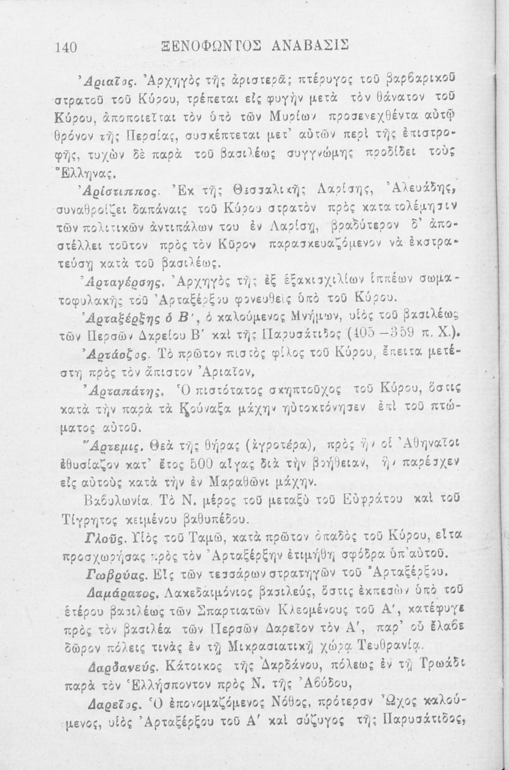 Σχολικό εγχειρίδιο Αρχαίων Ελληνικών που περιλαμβάνει αποσπάσματα από το έργο του Ξενοφώντα Κύρου Ανάβασις, εισαγωγικά σχόλια για τη ζωή και το έργο του, ερμηνευτικές και γραμματικές παρατηρήσεις, λεξικολογικά σχόλια και πίνακα κυρίων ονομάτων.